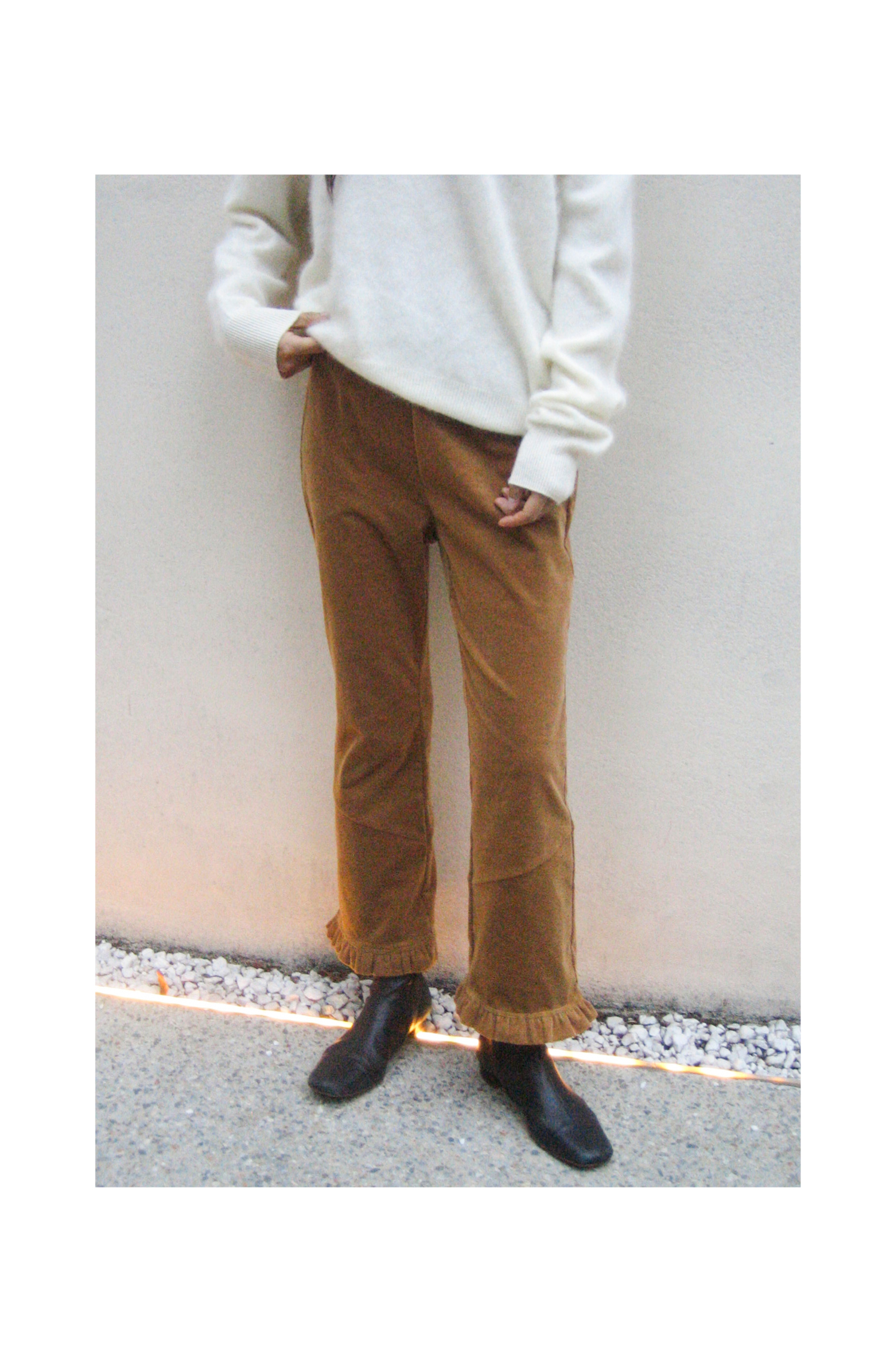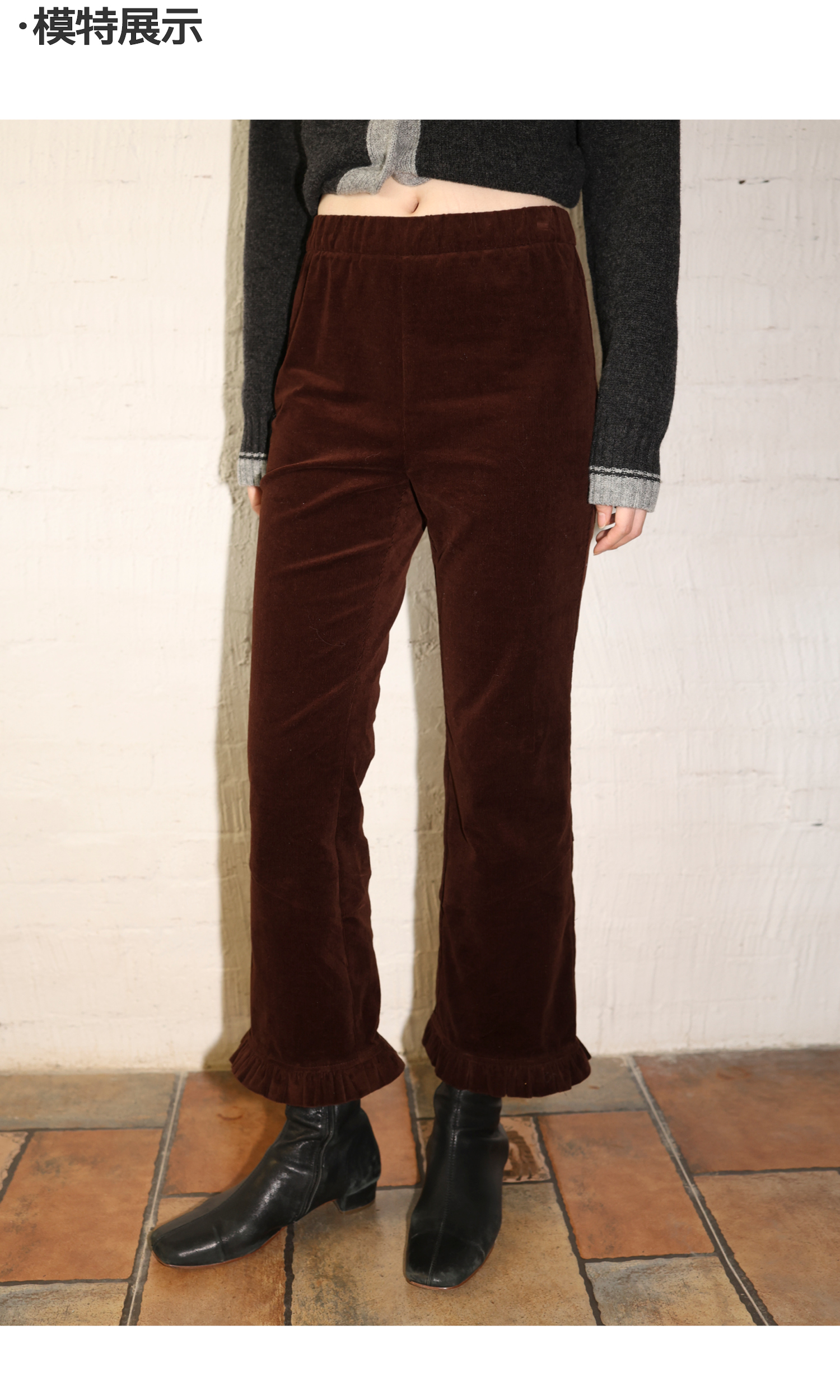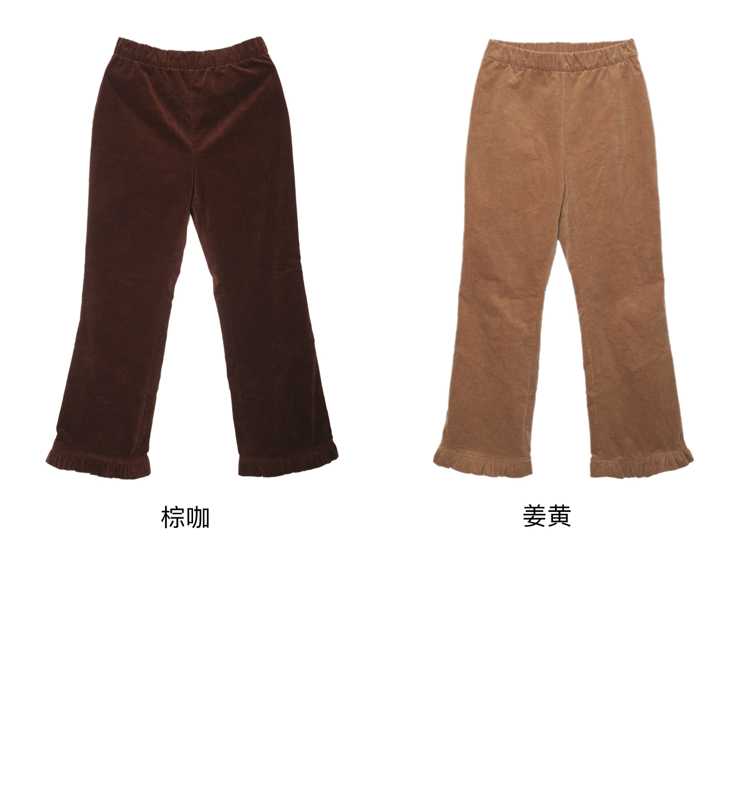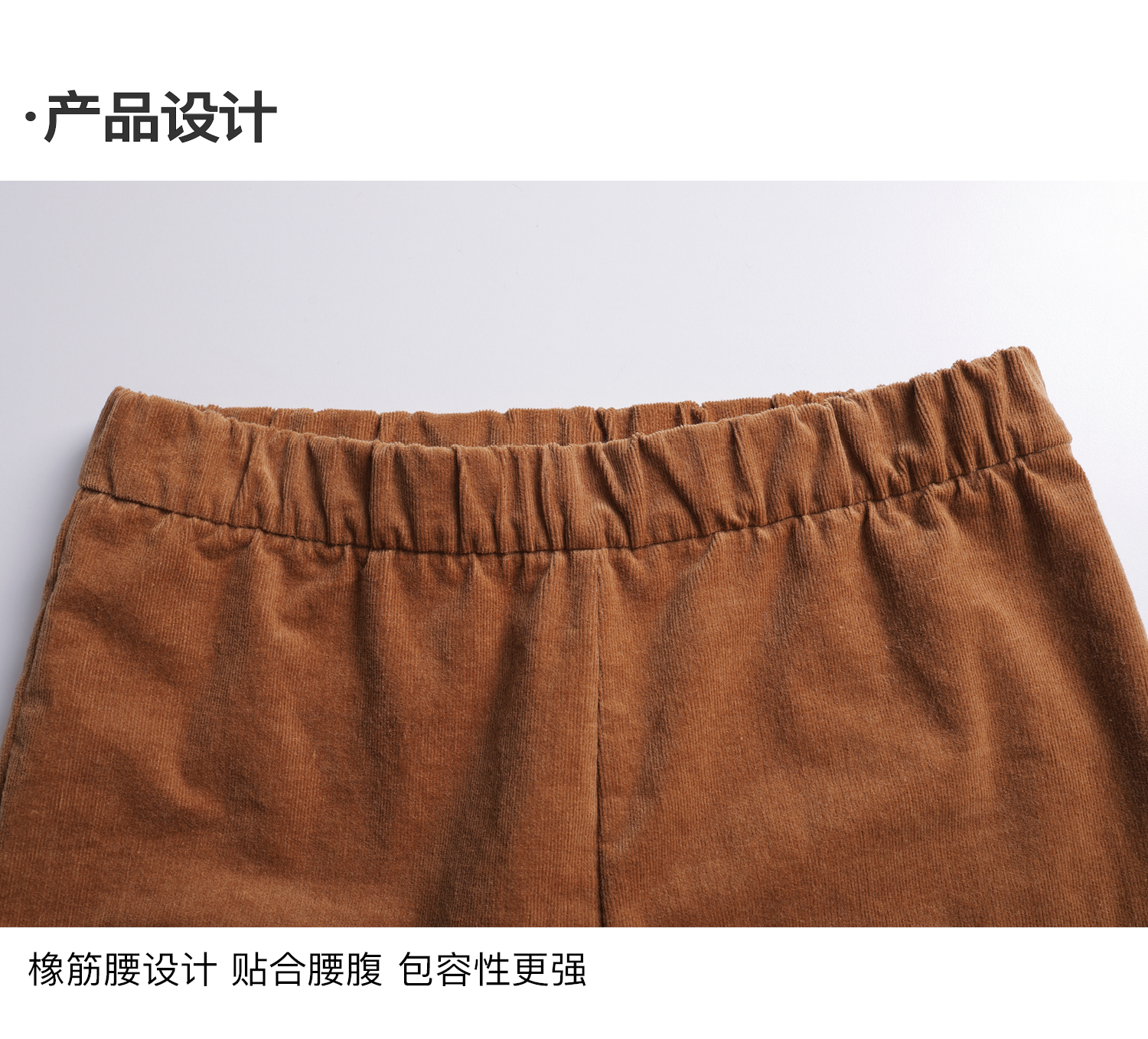 素舶 棉质灯芯绒英伦风木耳花边橡筋腰保暖秋冬9分裤休闲直筒裤