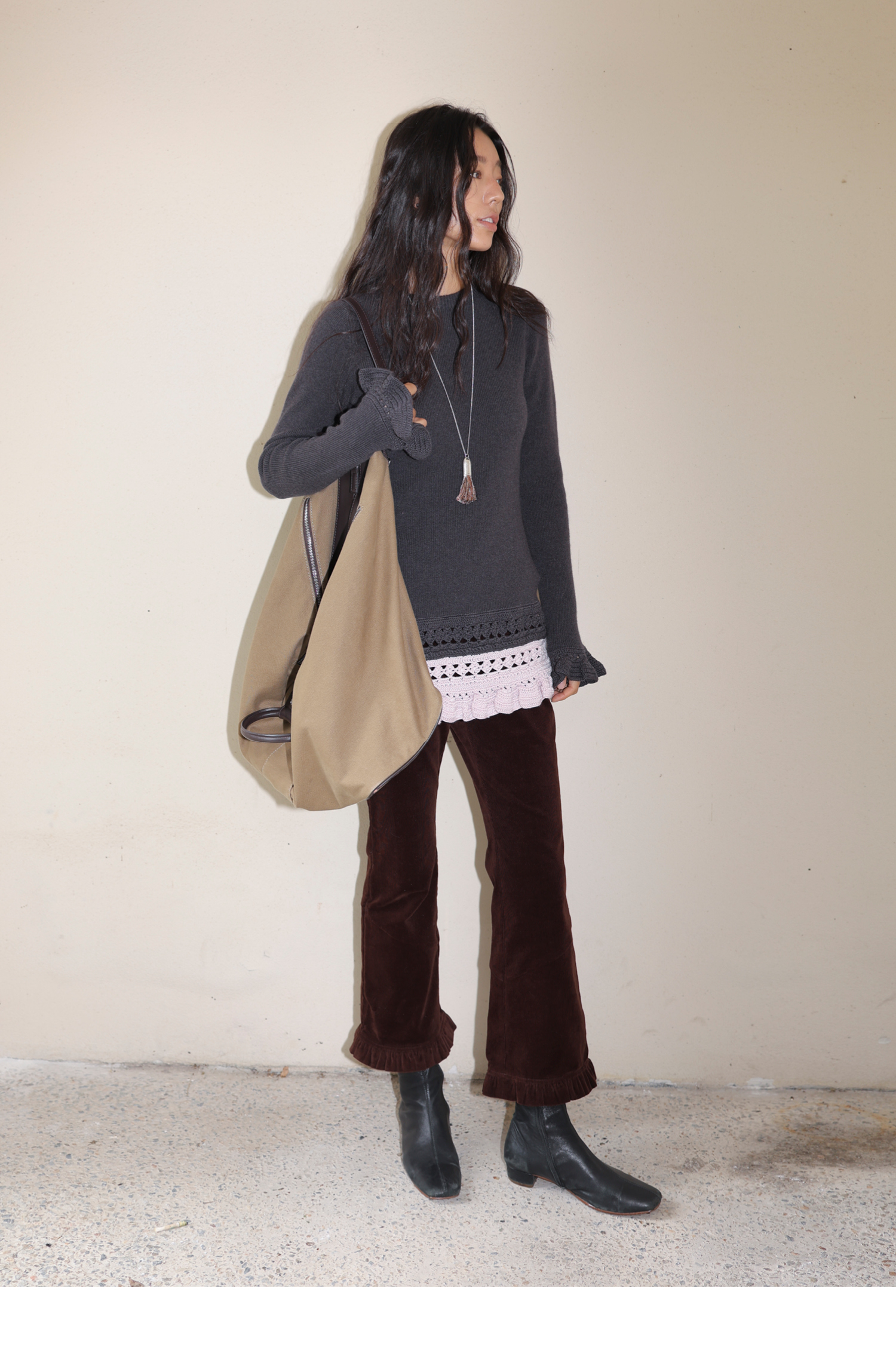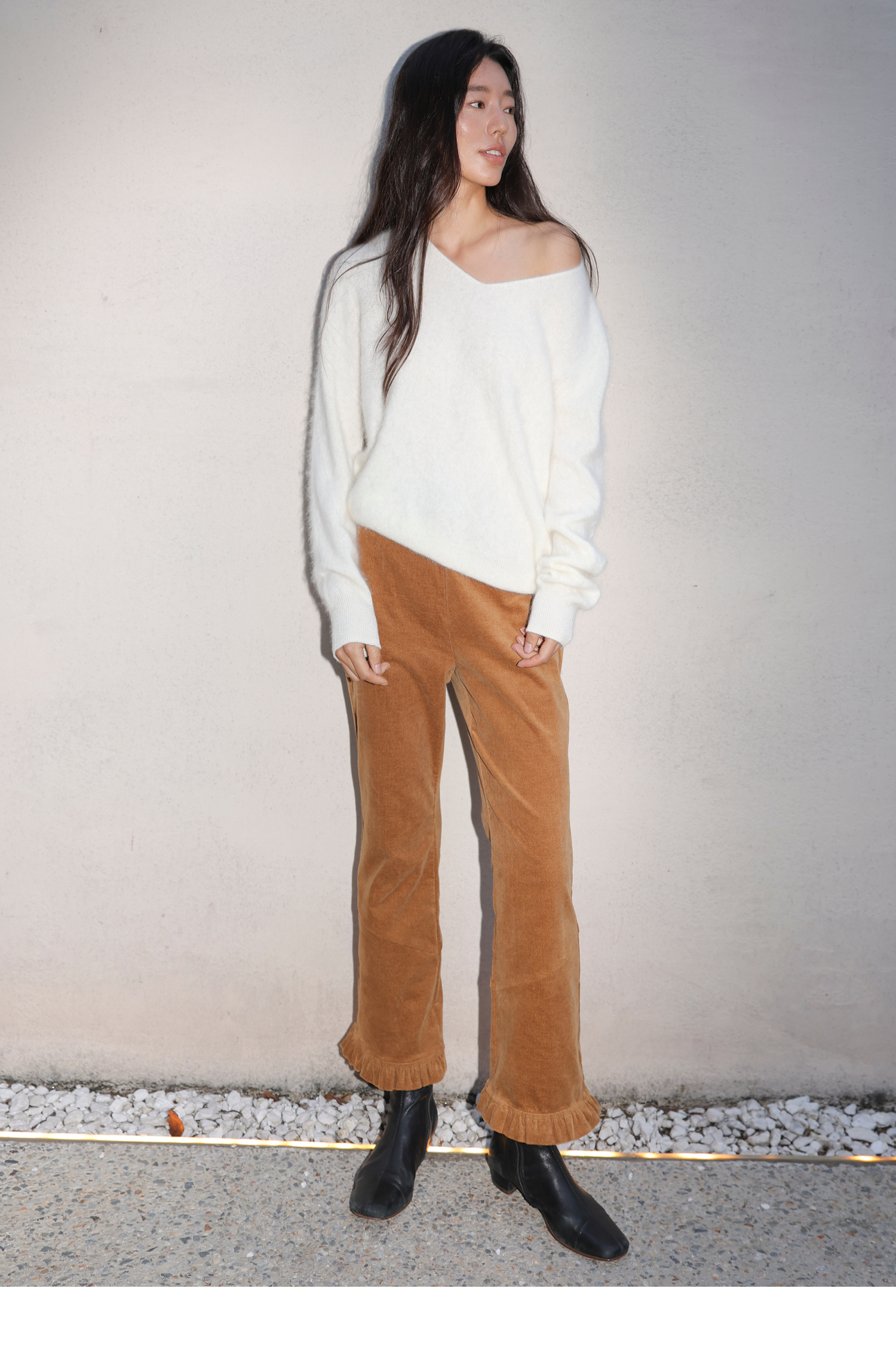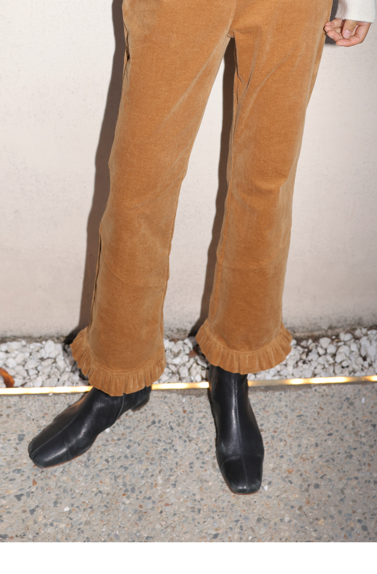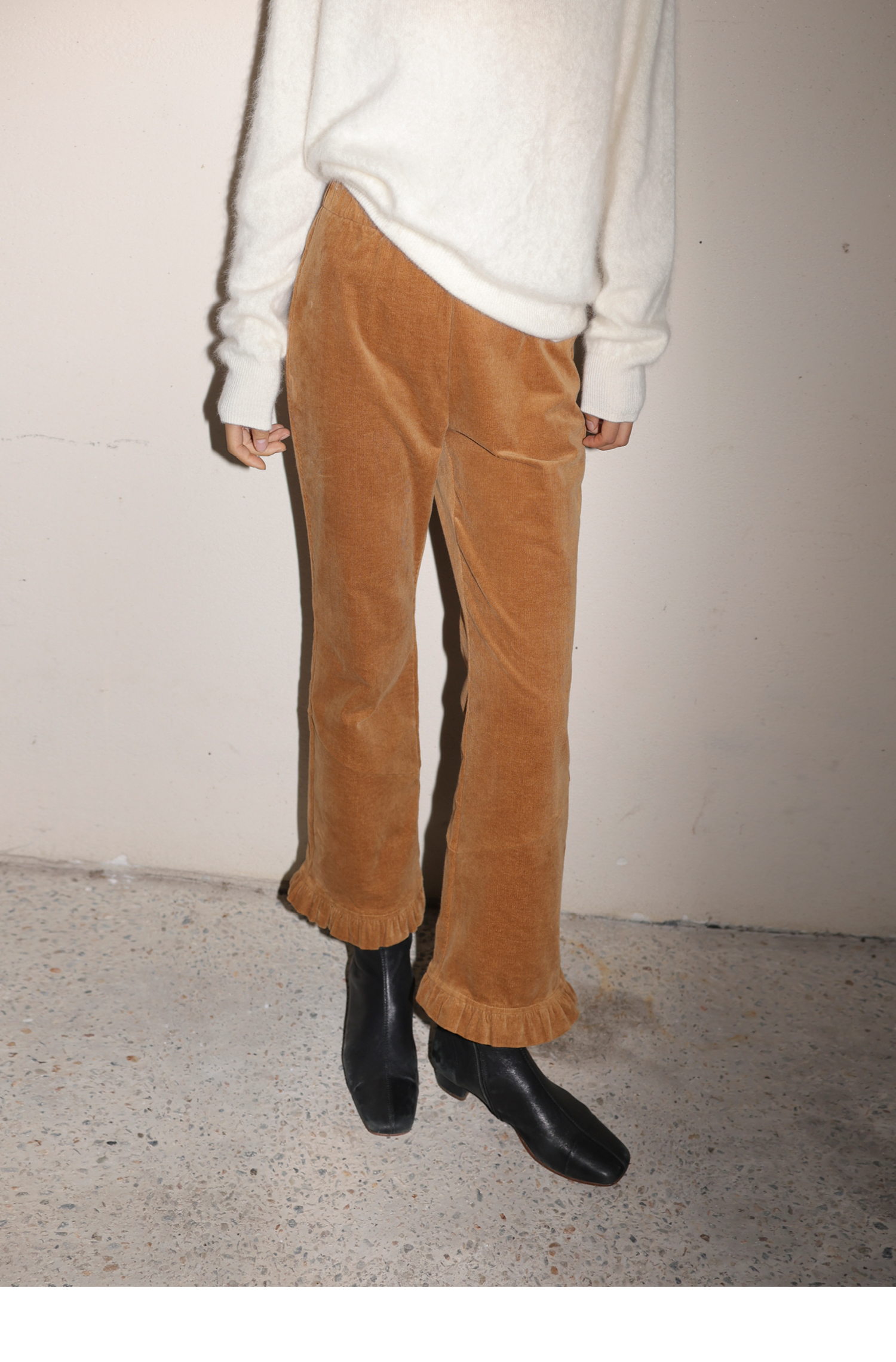 素舶 棉质灯芯绒英伦风木耳花边橡筋腰保暖秋冬9分裤休闲直筒裤