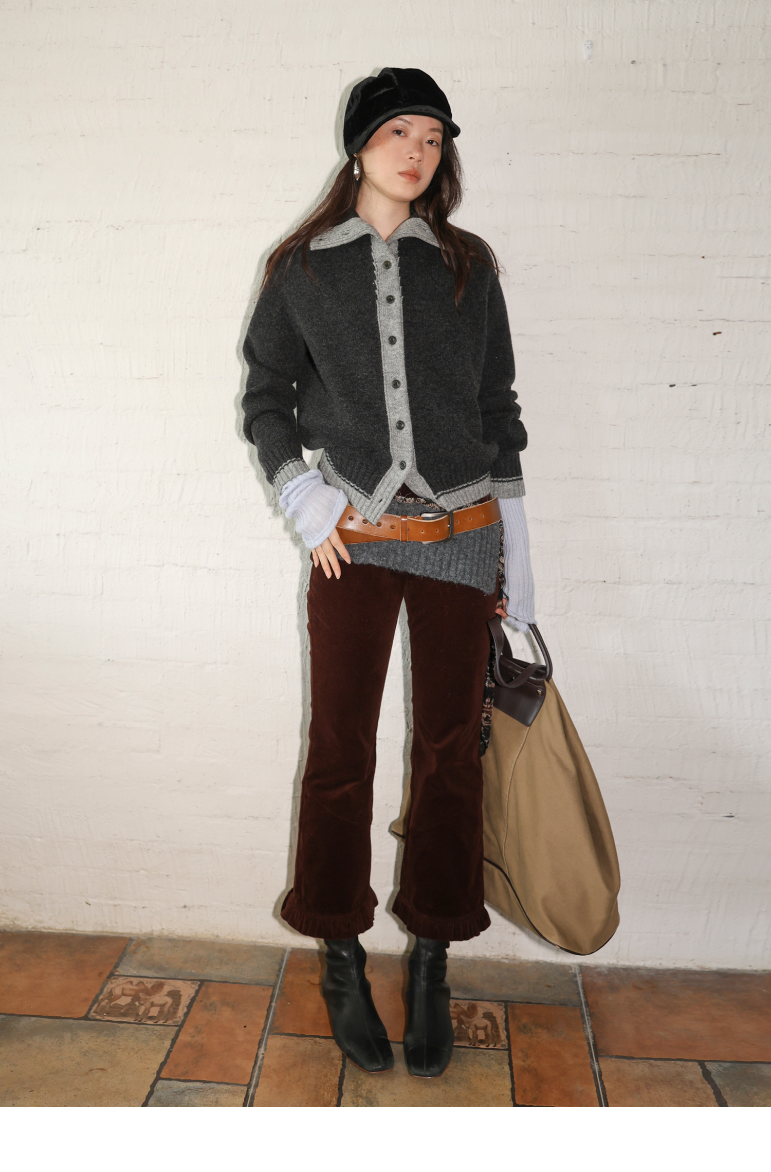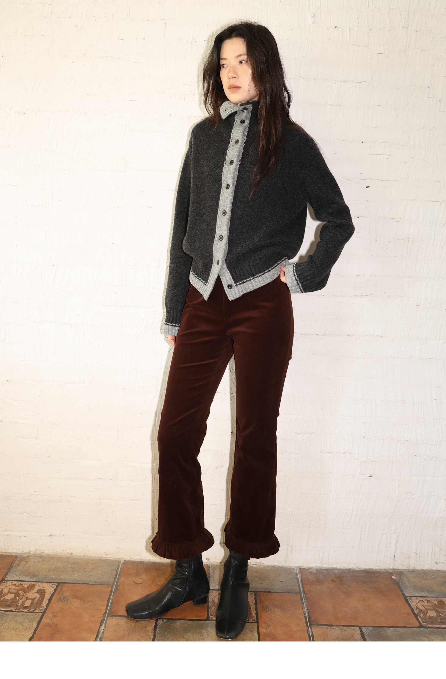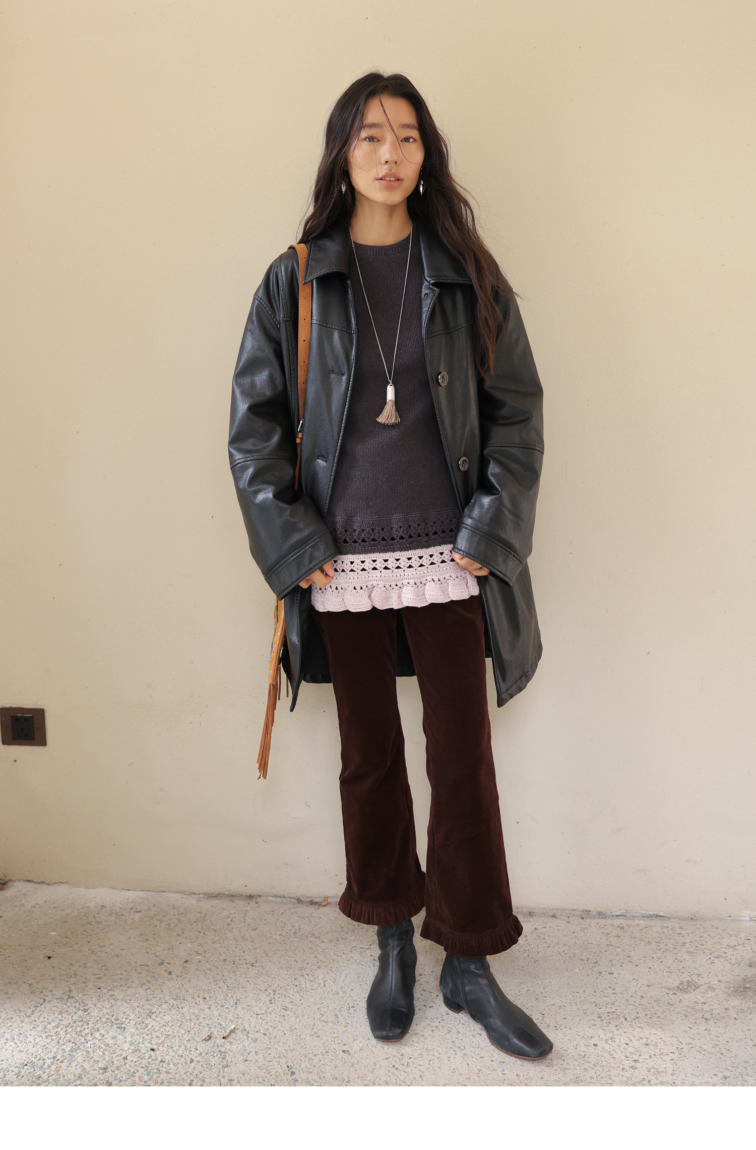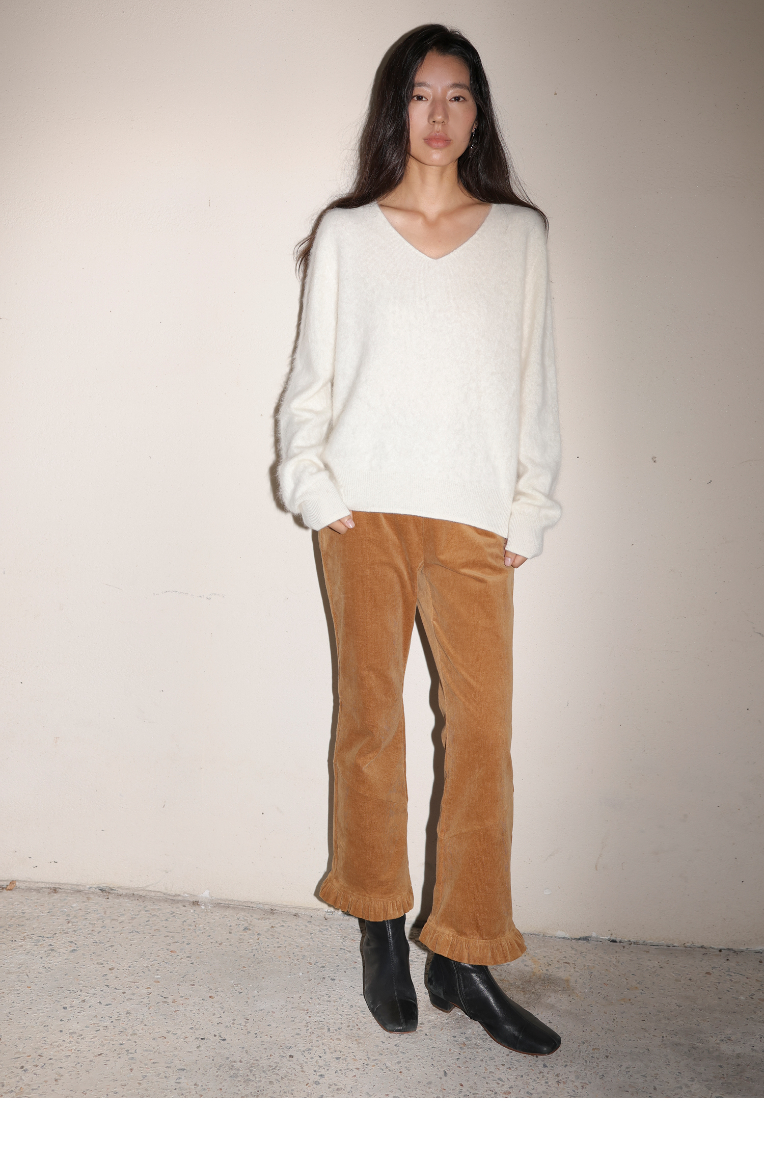 素舶 棉质灯芯绒英伦风木耳花边橡筋腰保暖秋冬9分裤休闲直筒裤