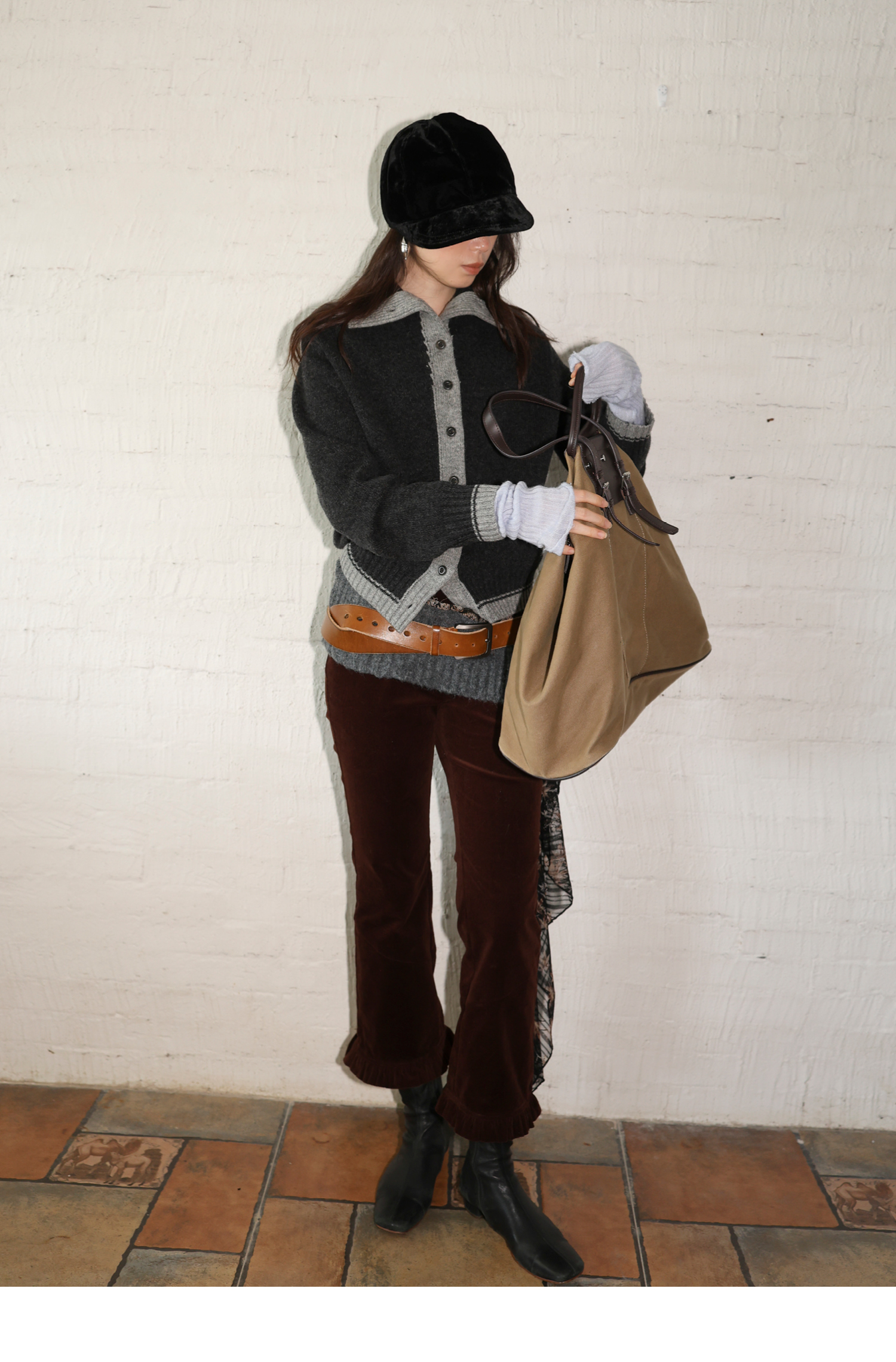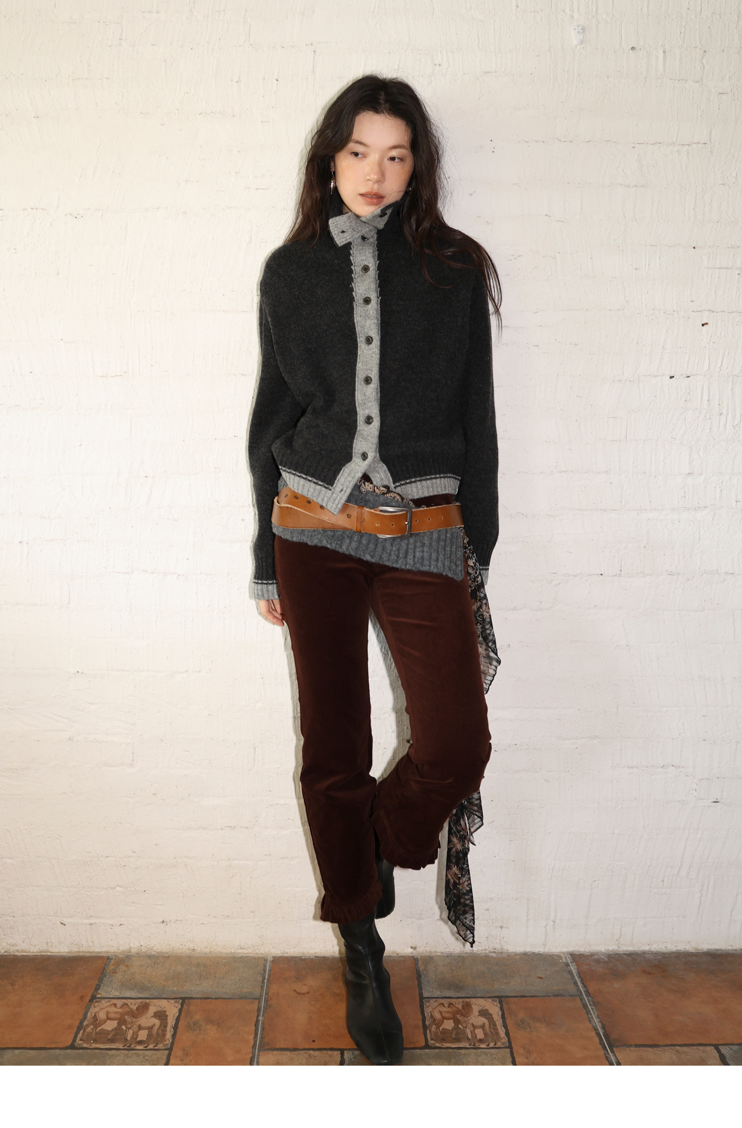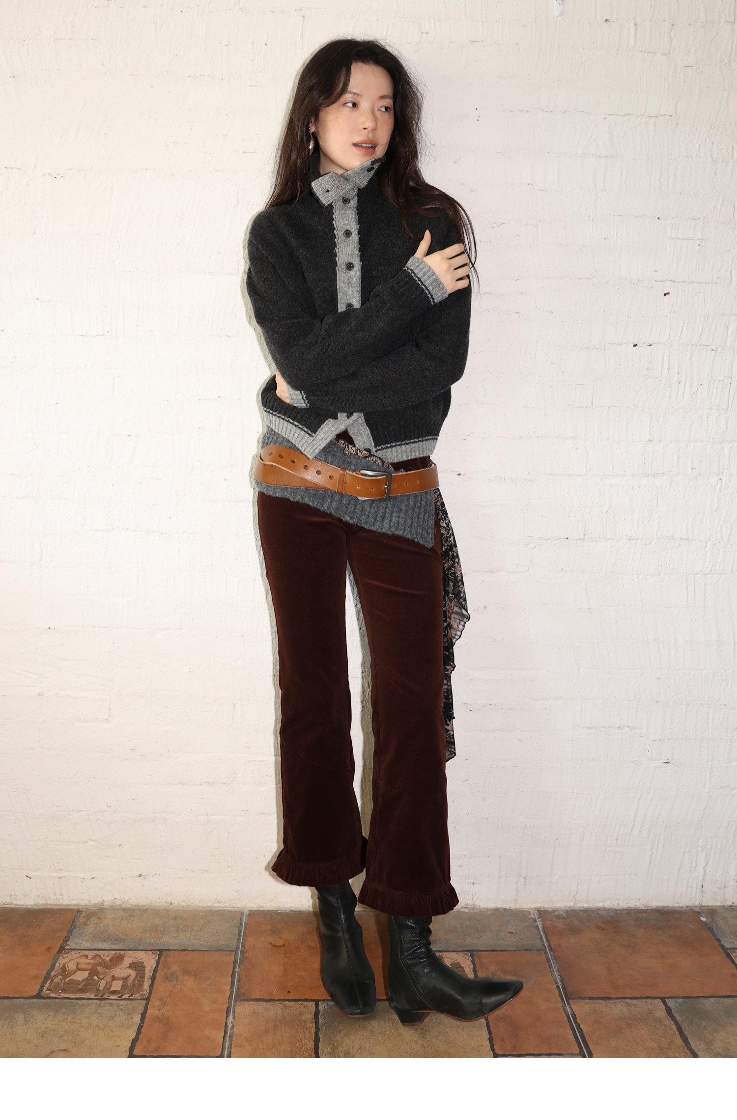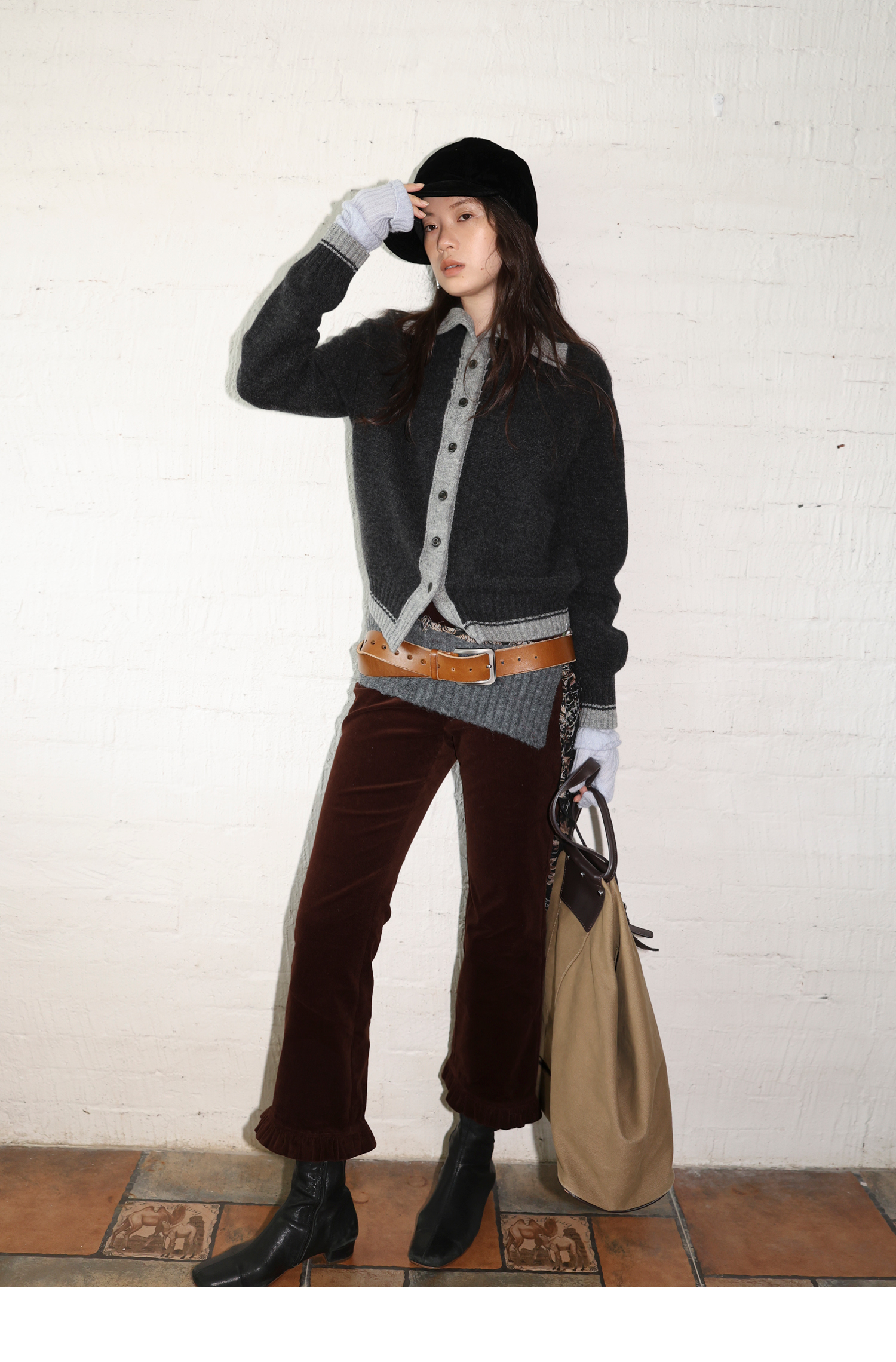 素舶 棉质灯芯绒英伦风木耳花边橡筋腰保暖秋冬9分裤休闲直筒裤