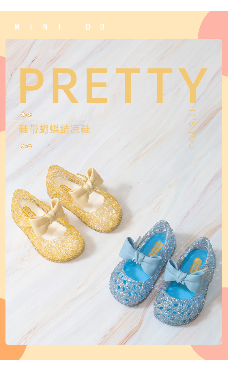 2023夏季新款MINIDD女童凉鞋蝴蝶结公主鞋宝宝舒适透气软底果冻鞋