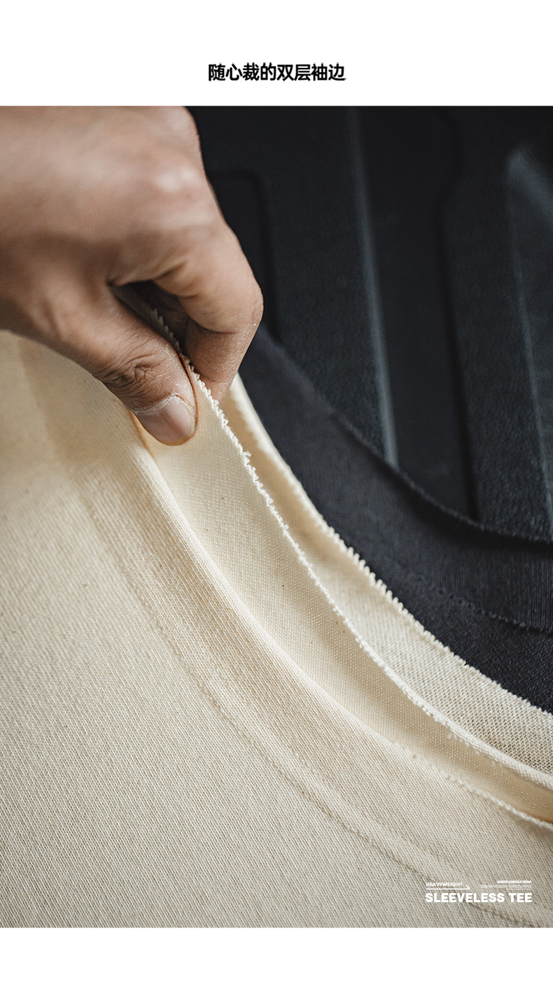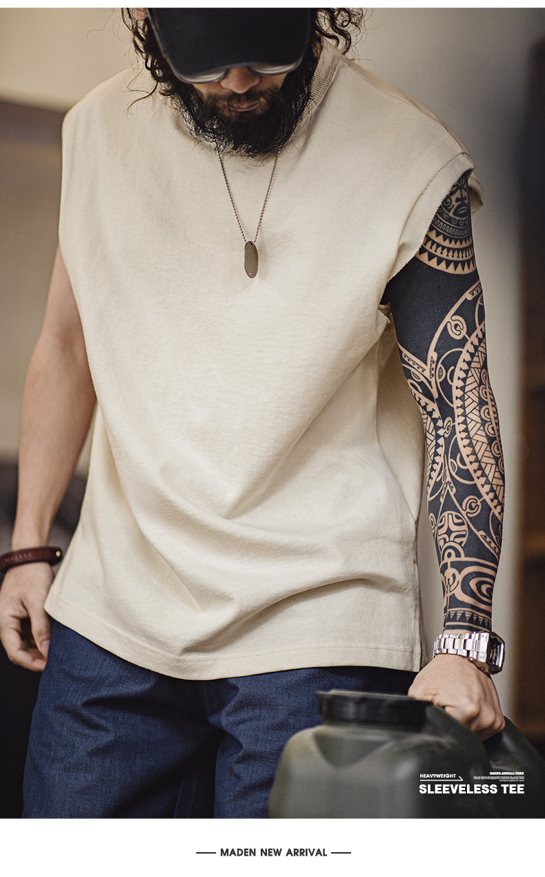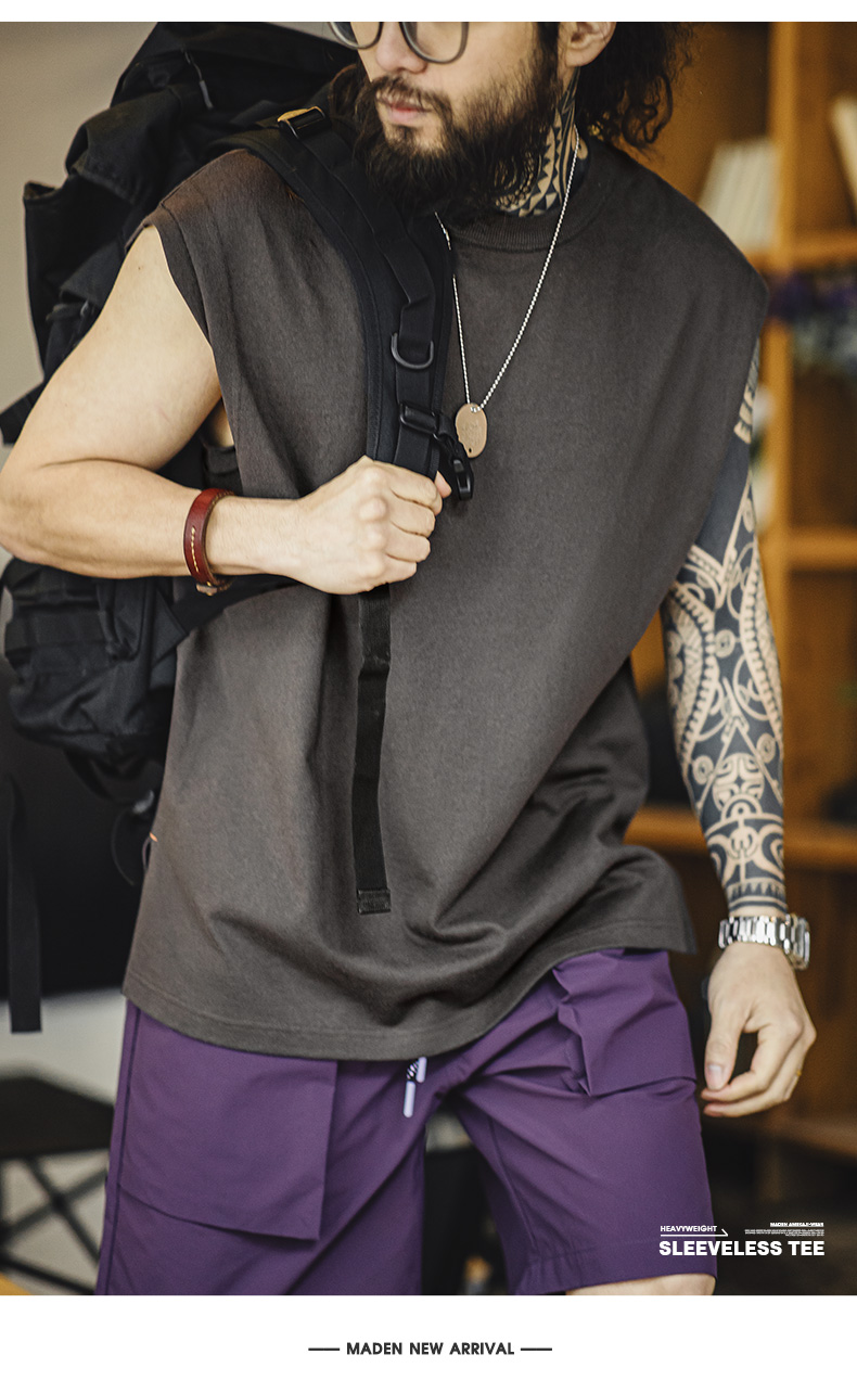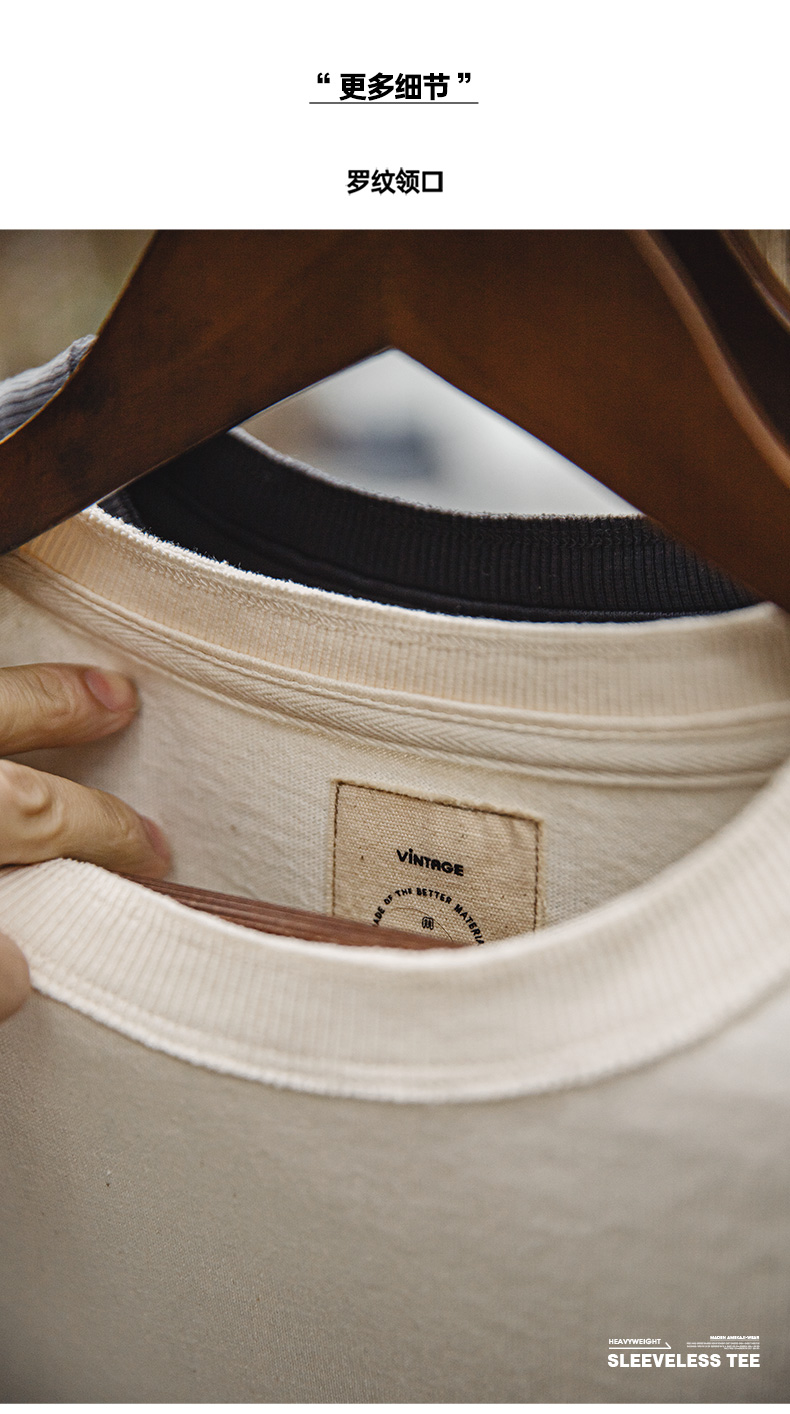马登工装 美式棉籽壳重磅针织宽肩背心运动纯棉无袖坎肩T恤男夏季