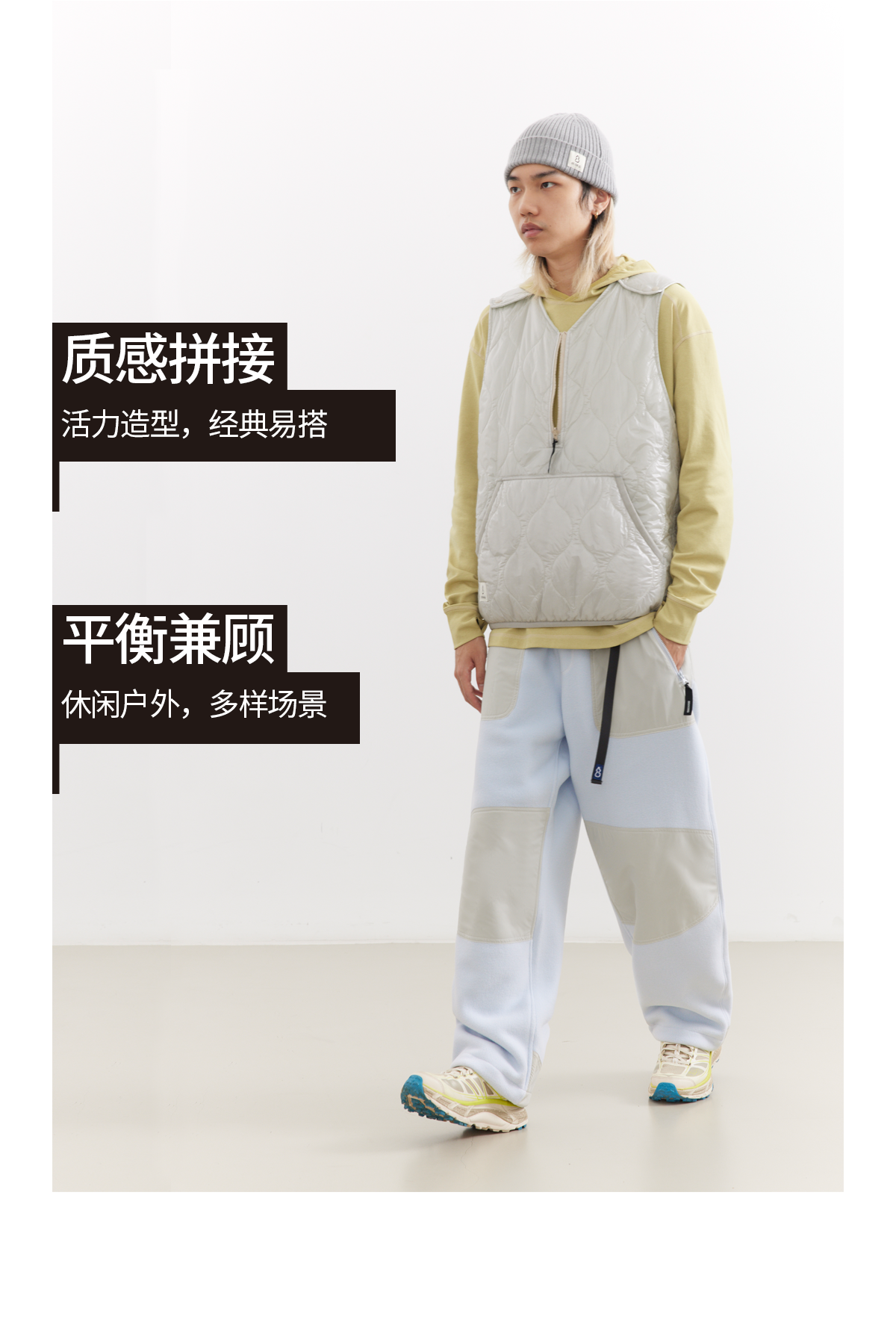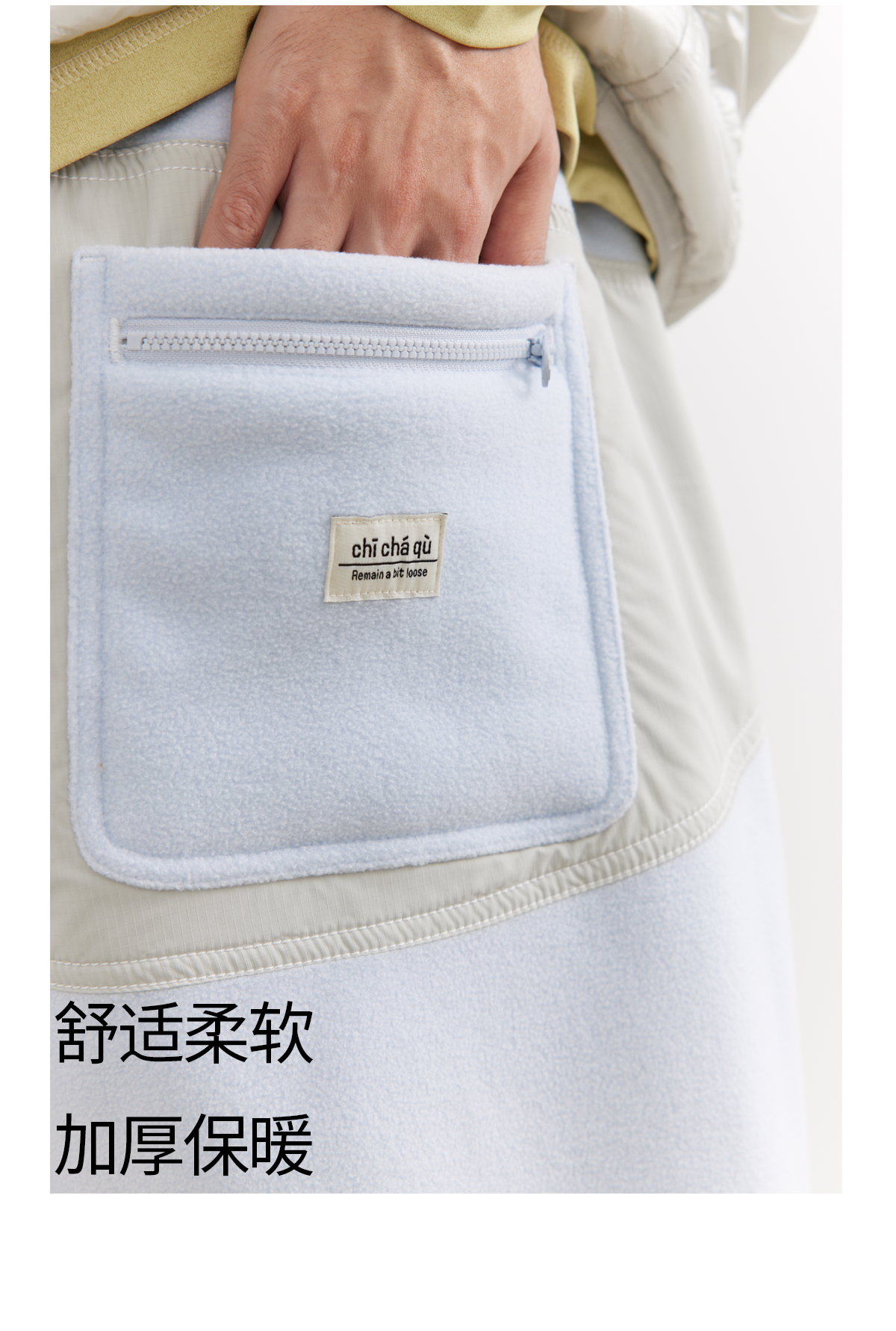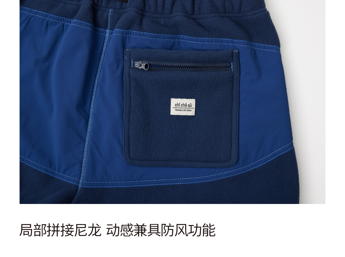 吃茶去chichaqu25秋冬山系拼接抓绒摇粒绒保暖宽松户外卫裤束脚