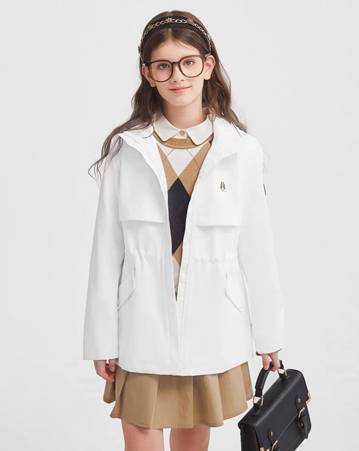 ✅英伦学院风设计,可抽绳防风。