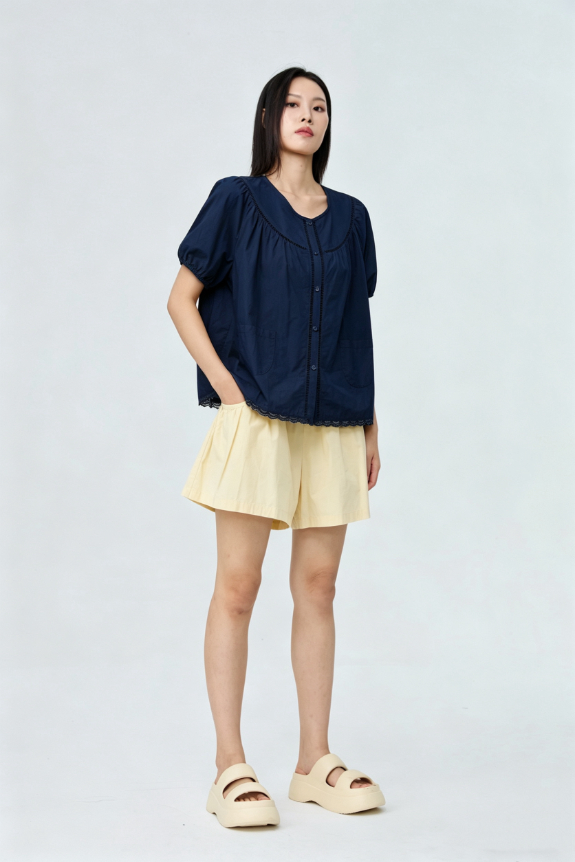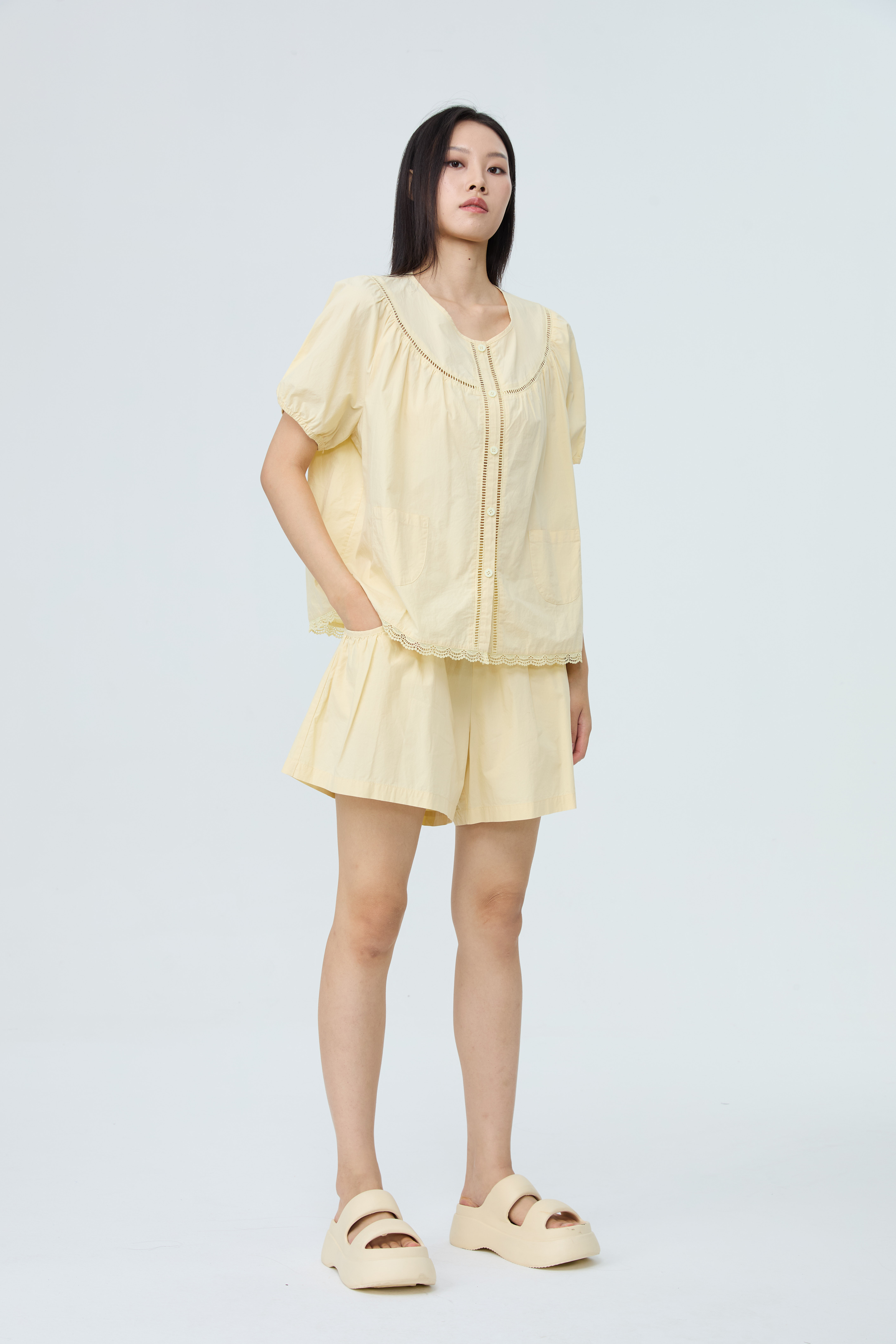 水淼2026夏新款花边纯棉减龄小衫口袋短袖2450
