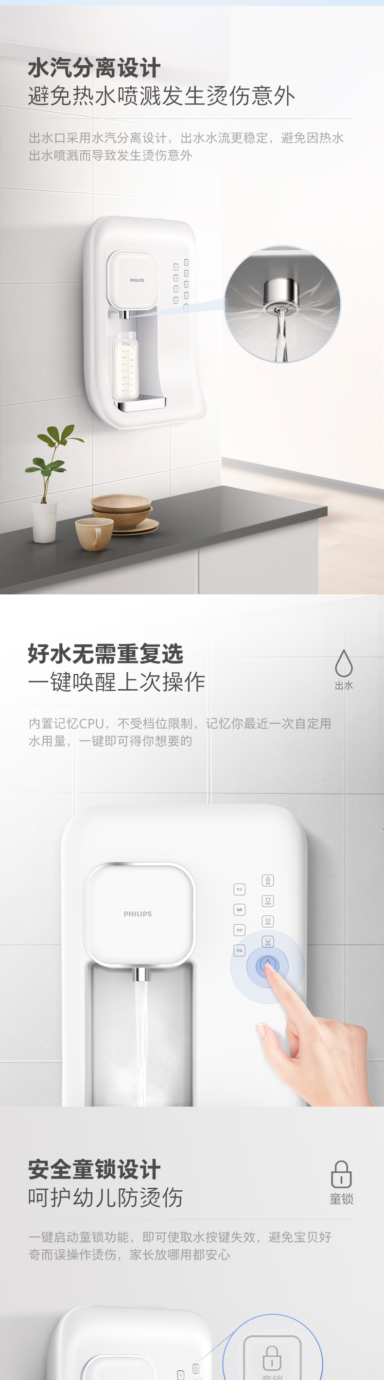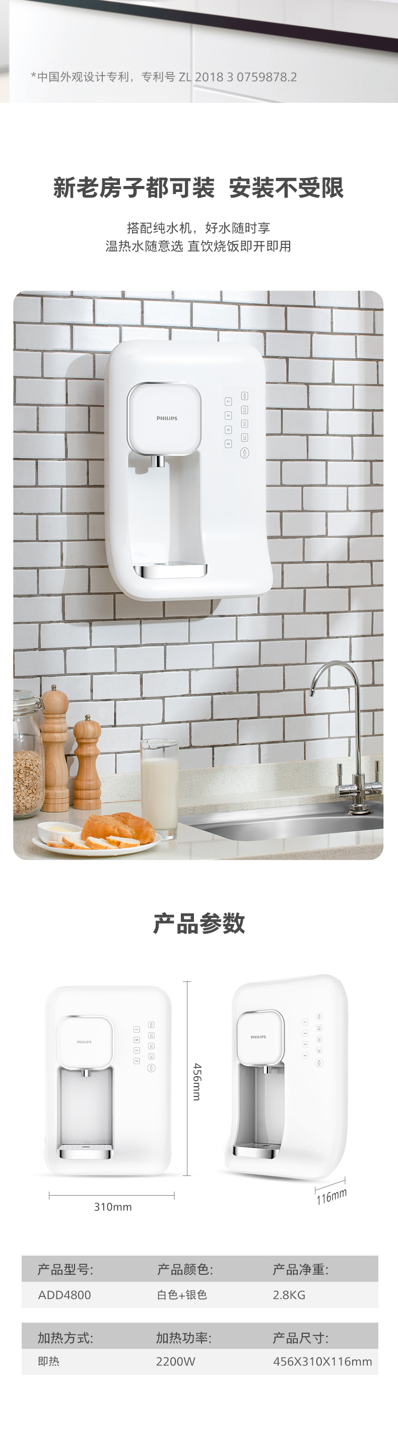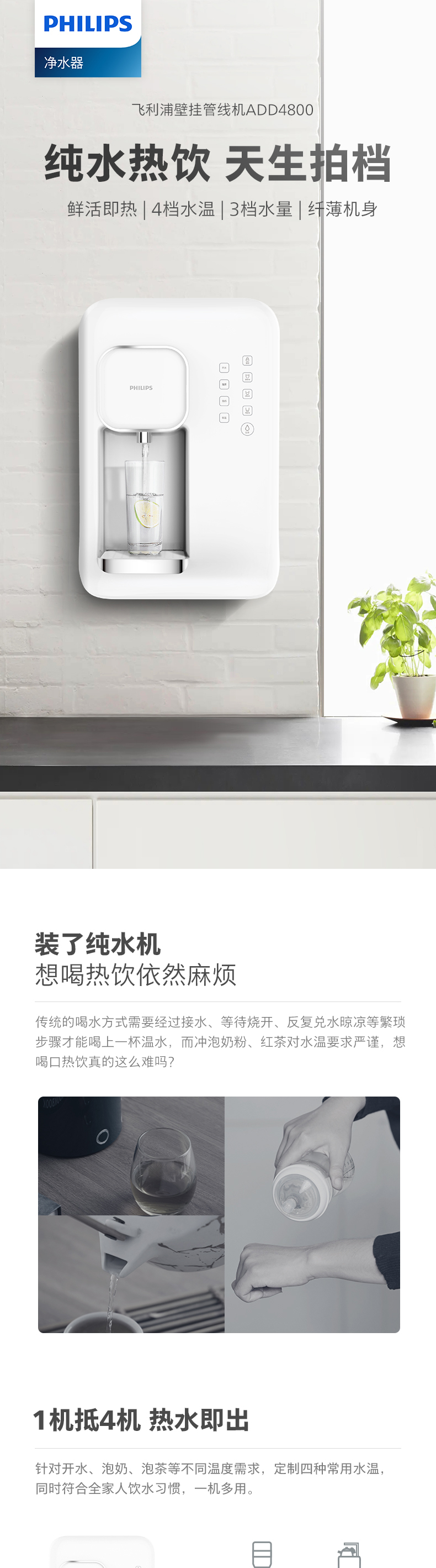飞利浦(PHILIPS)家用即热饮水吧 壁挂式管线机 ADD4800