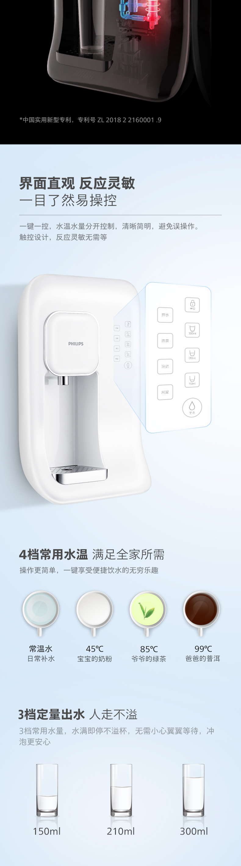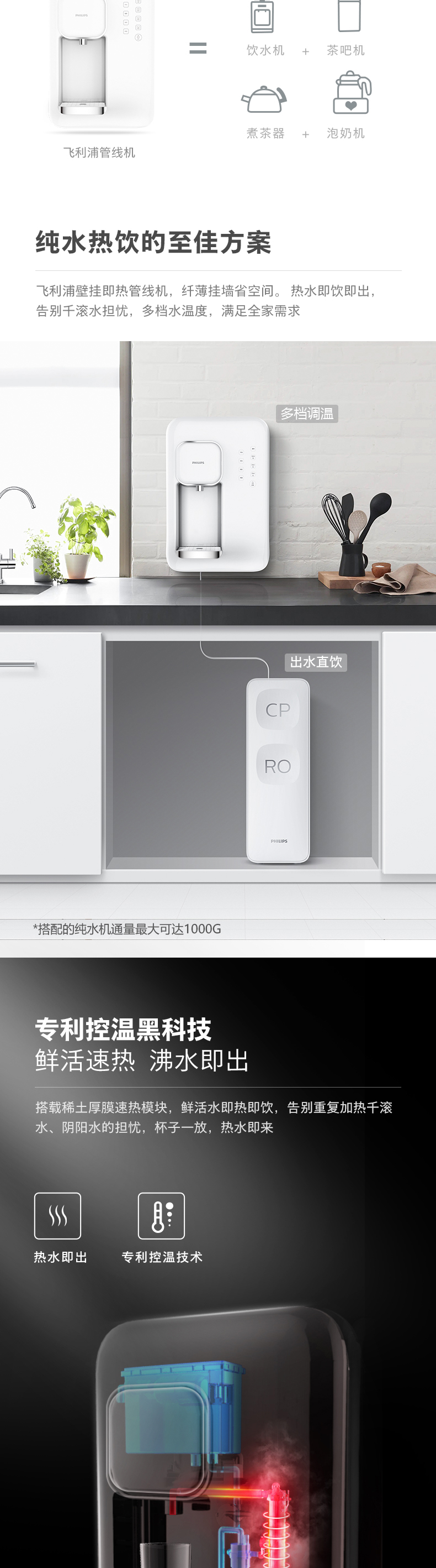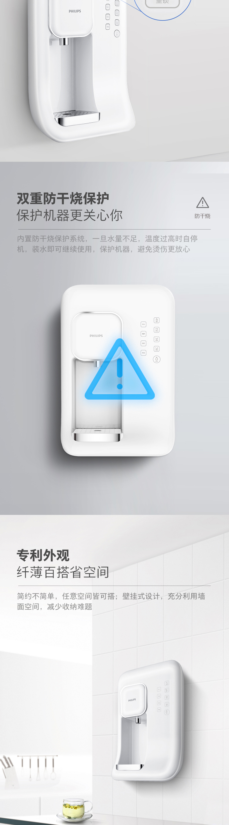 飞利浦(PHILIPS)家用即热饮水吧 壁挂式管线机 ADD4800