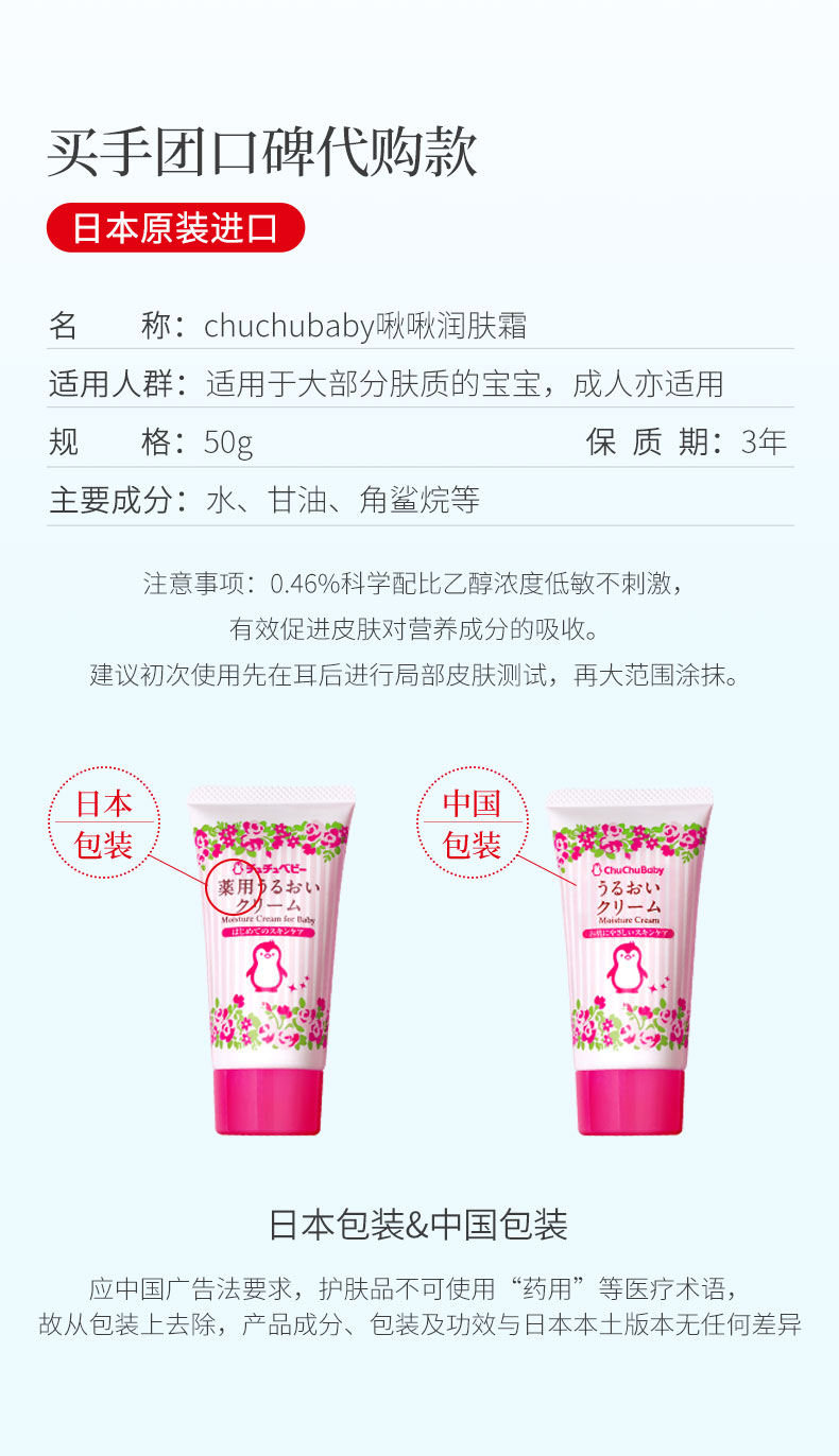 日本啾啾chuchu儿童宝宝婴儿滋润面霜50g 润肤保湿补水防皲裂
