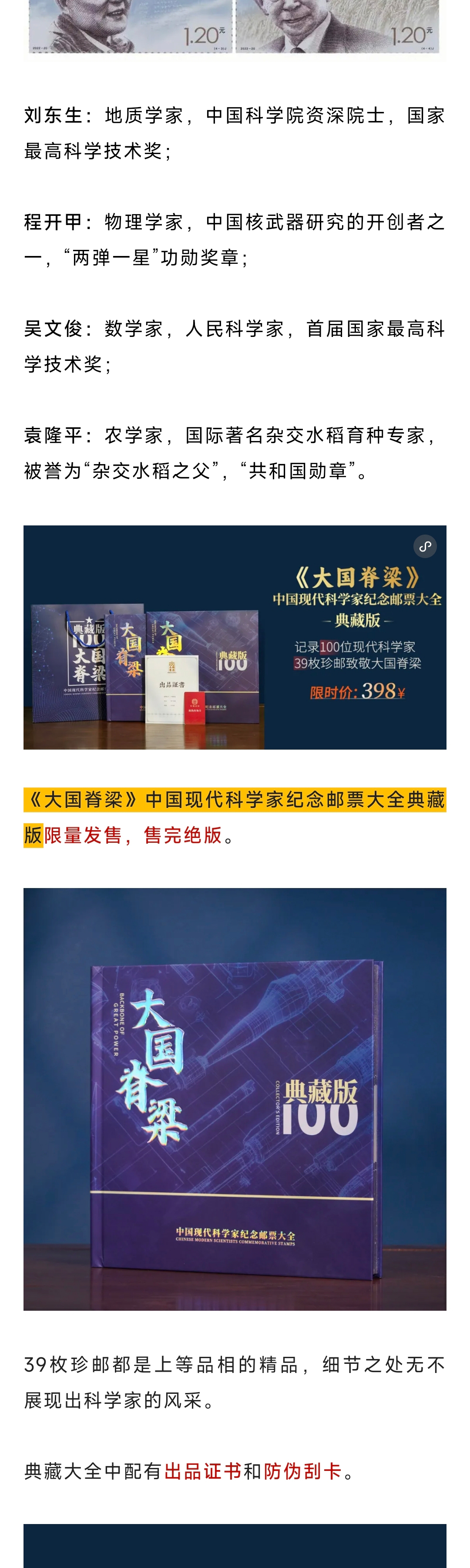 《大国脊梁 》中国现代科学家邮票珍藏大全