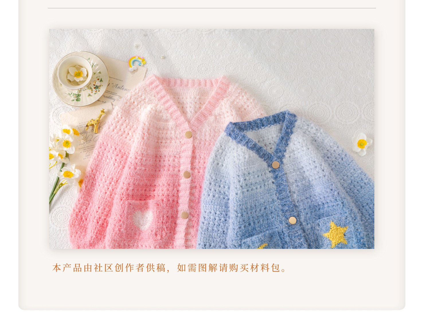 苏苏姐家星月爱心开衫手工diy编织钩针毛线团自制开衫材料包