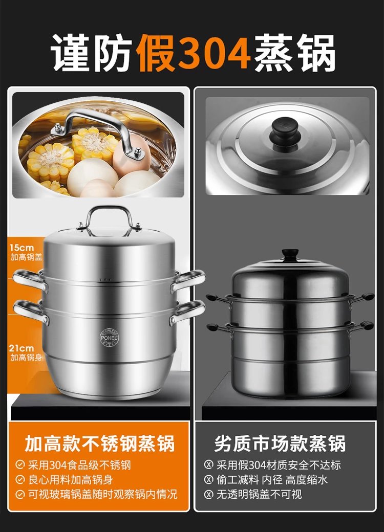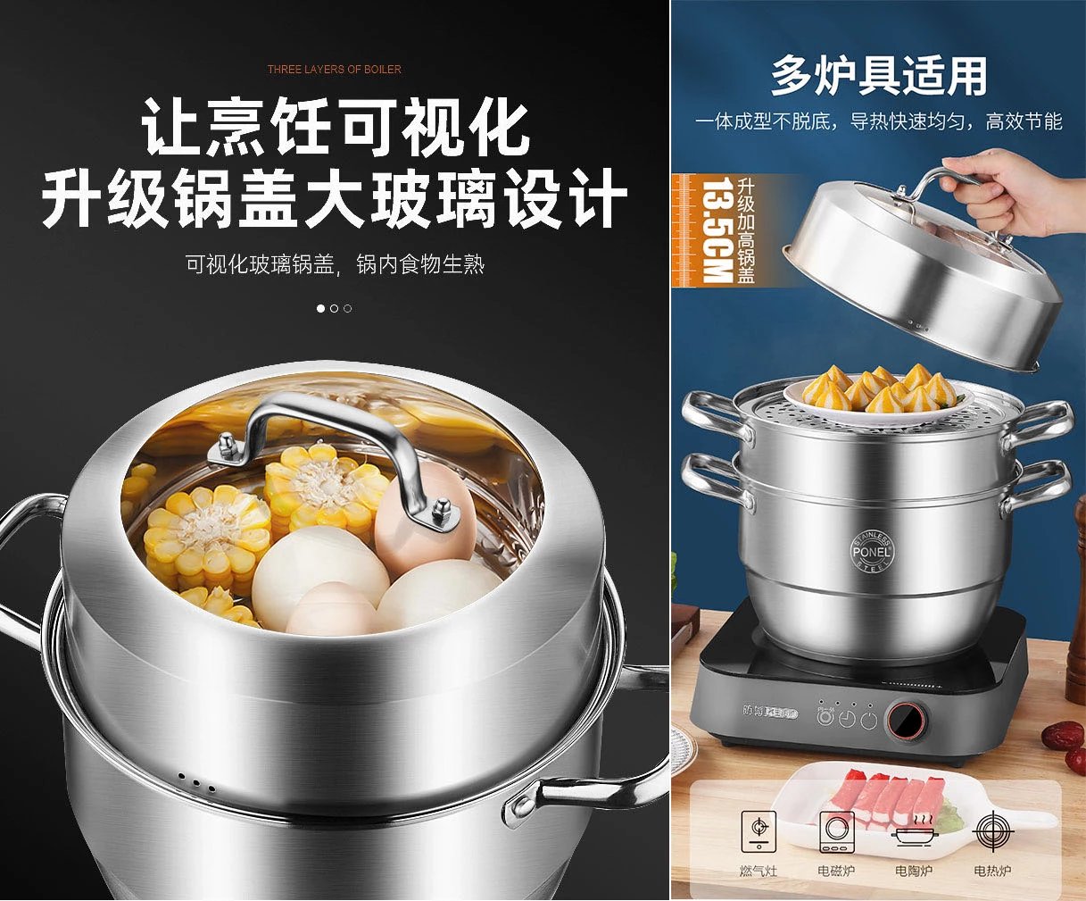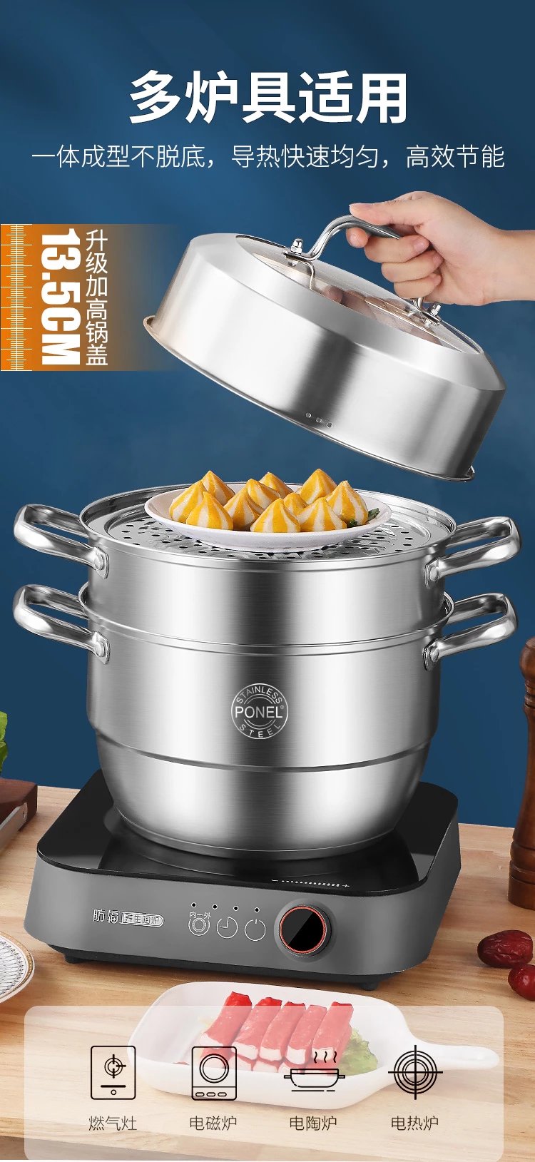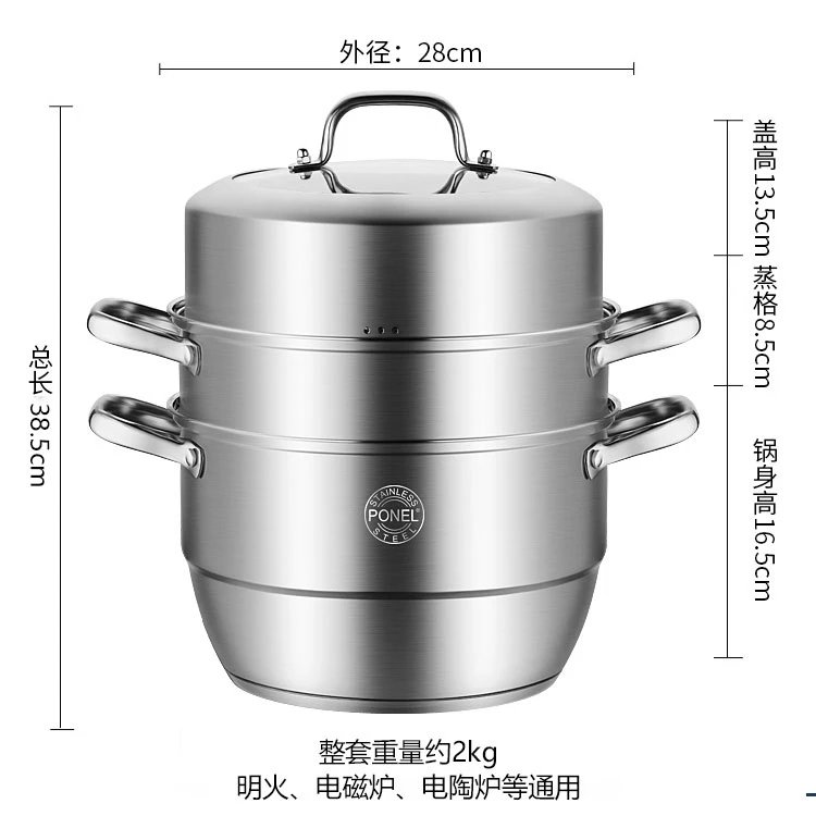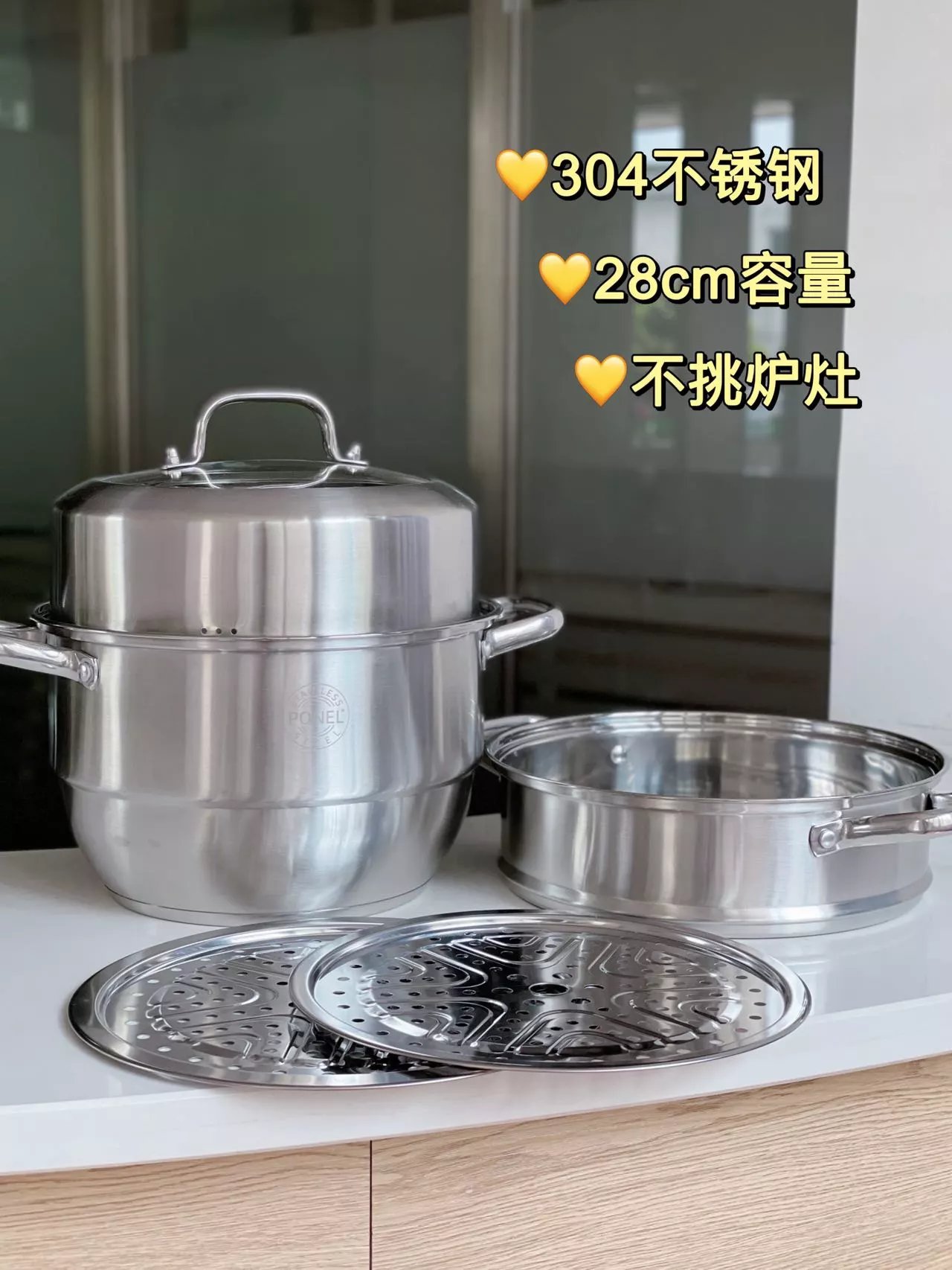 品名:PONEL派能304不锈钢三层蒸锅28cm