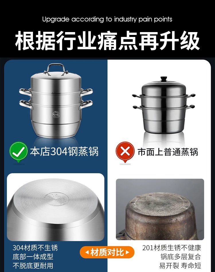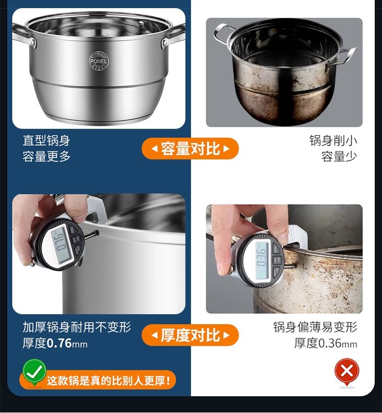 2⃣加高加厚设计,容量更多;加厚实心全钢手柄,耐高温不烫手