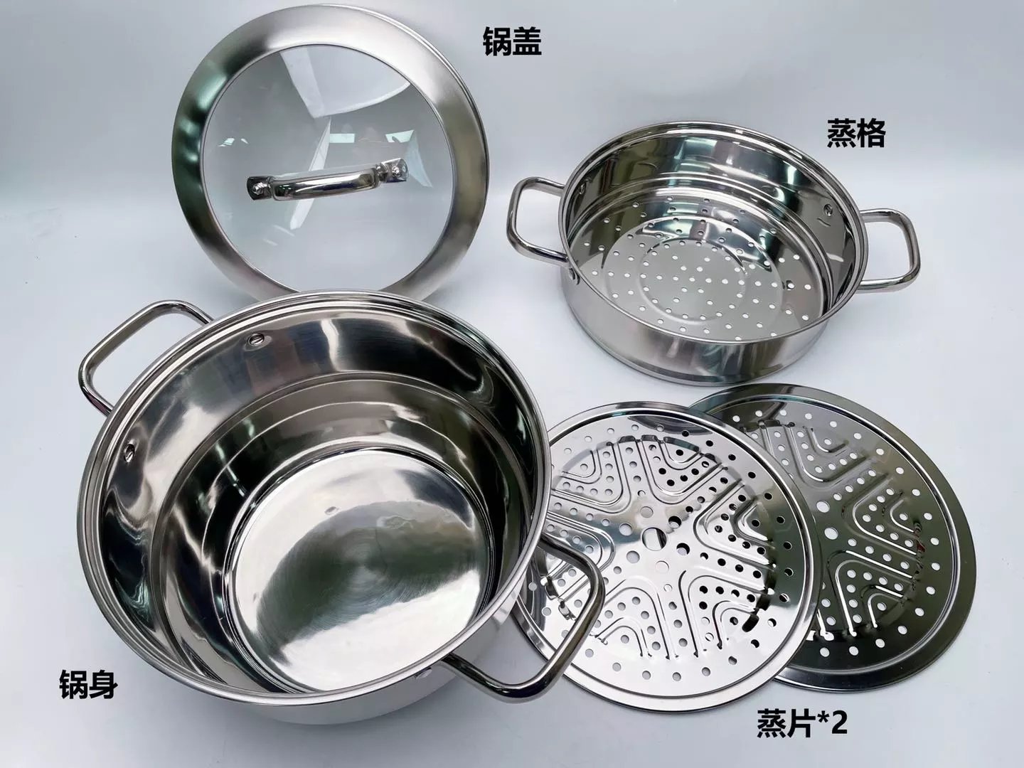规格:锅盖1个、锅身1个、蒸格1个、蒸片2个