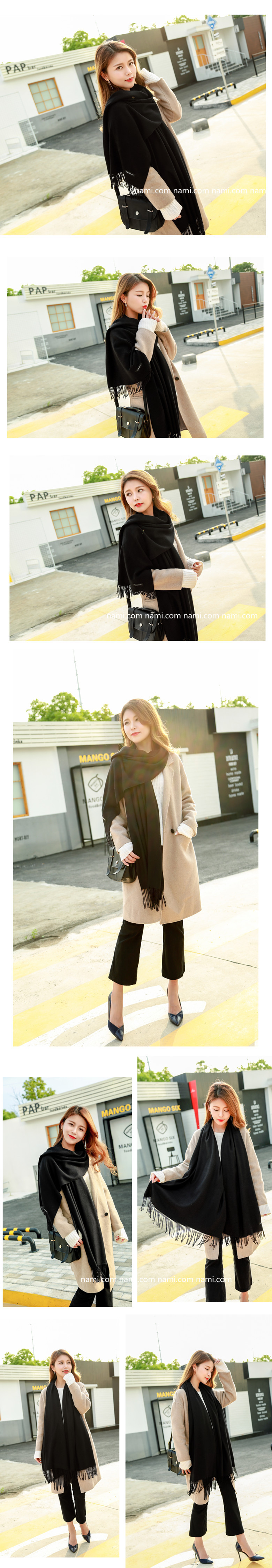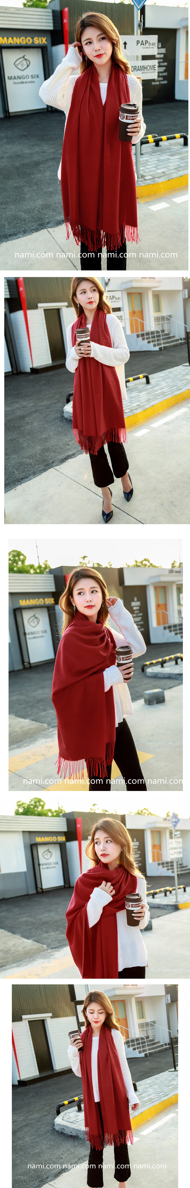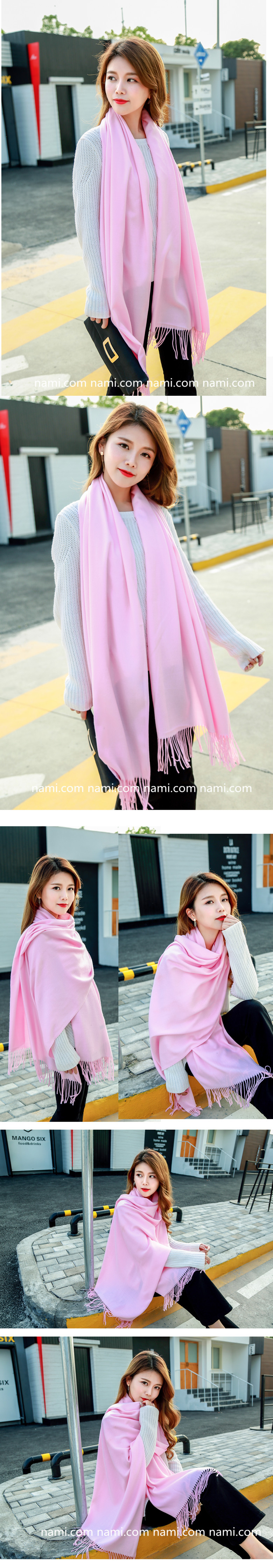 【围巾女】韩版秋冬流苏仿羊绒围巾长款女士保暖纯色流苏围巾百变披肩