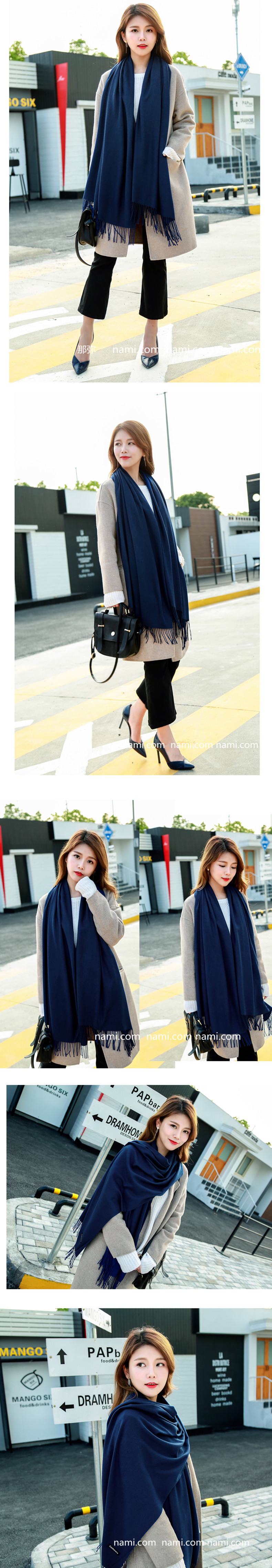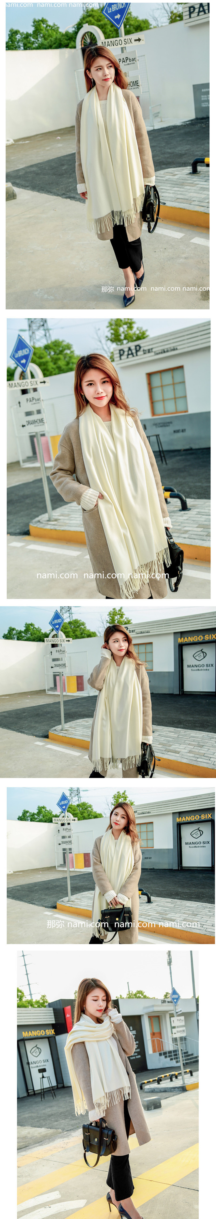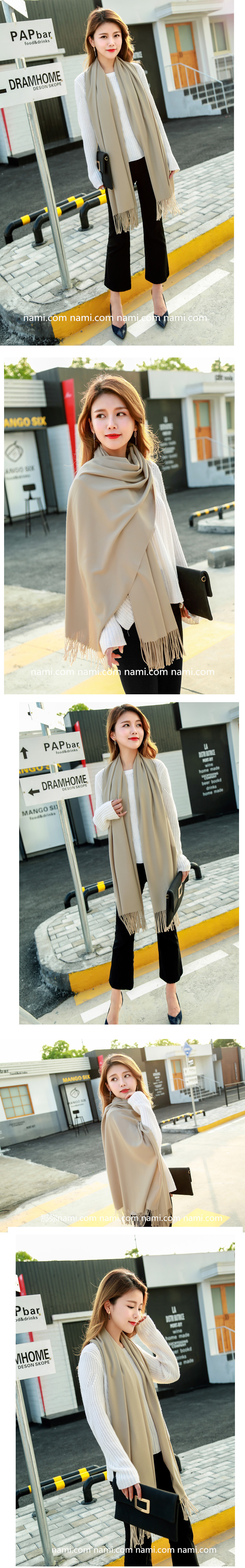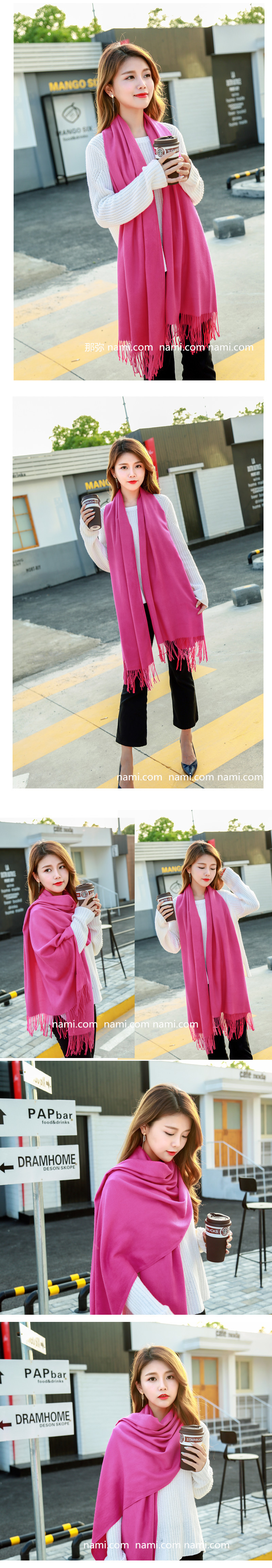 【围巾女】韩版秋冬流苏仿羊绒围巾长款女士保暖纯色流苏围巾百变披肩