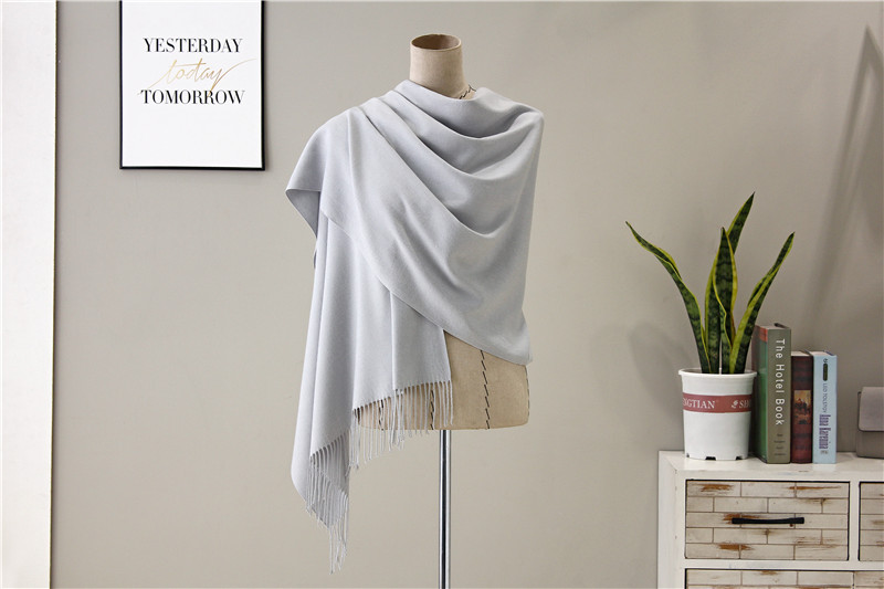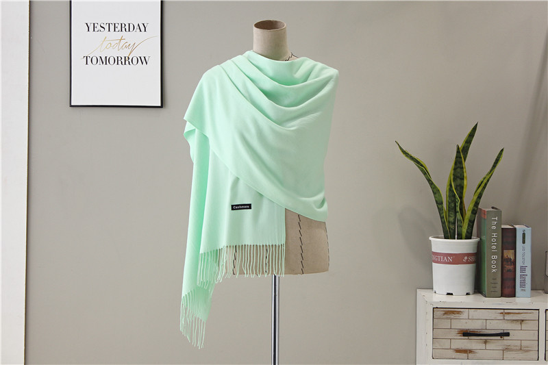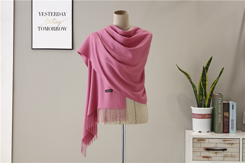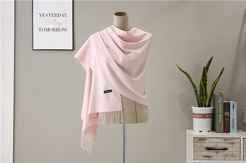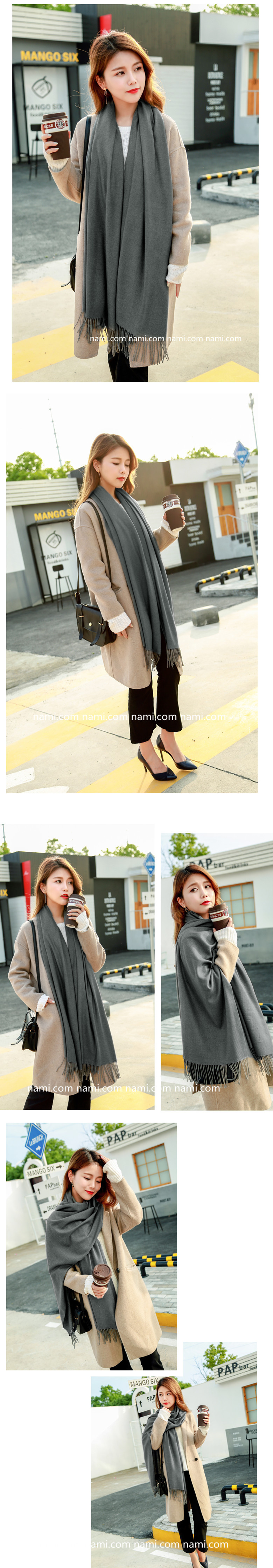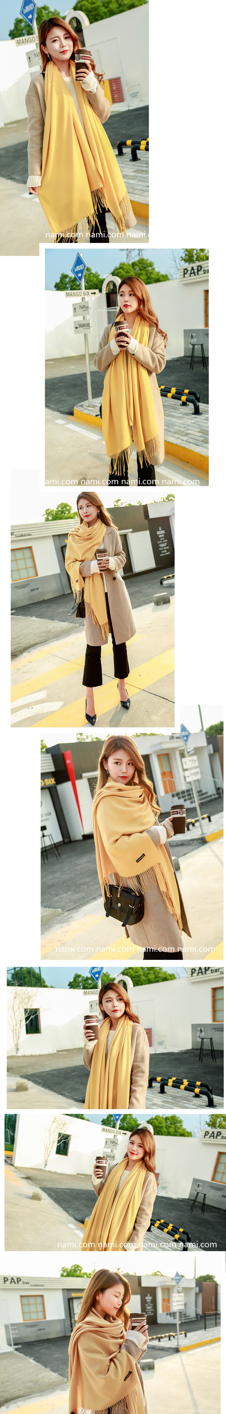 【围巾女】韩版秋冬流苏仿羊绒围巾长款女士保暖纯色流苏围巾百变披肩