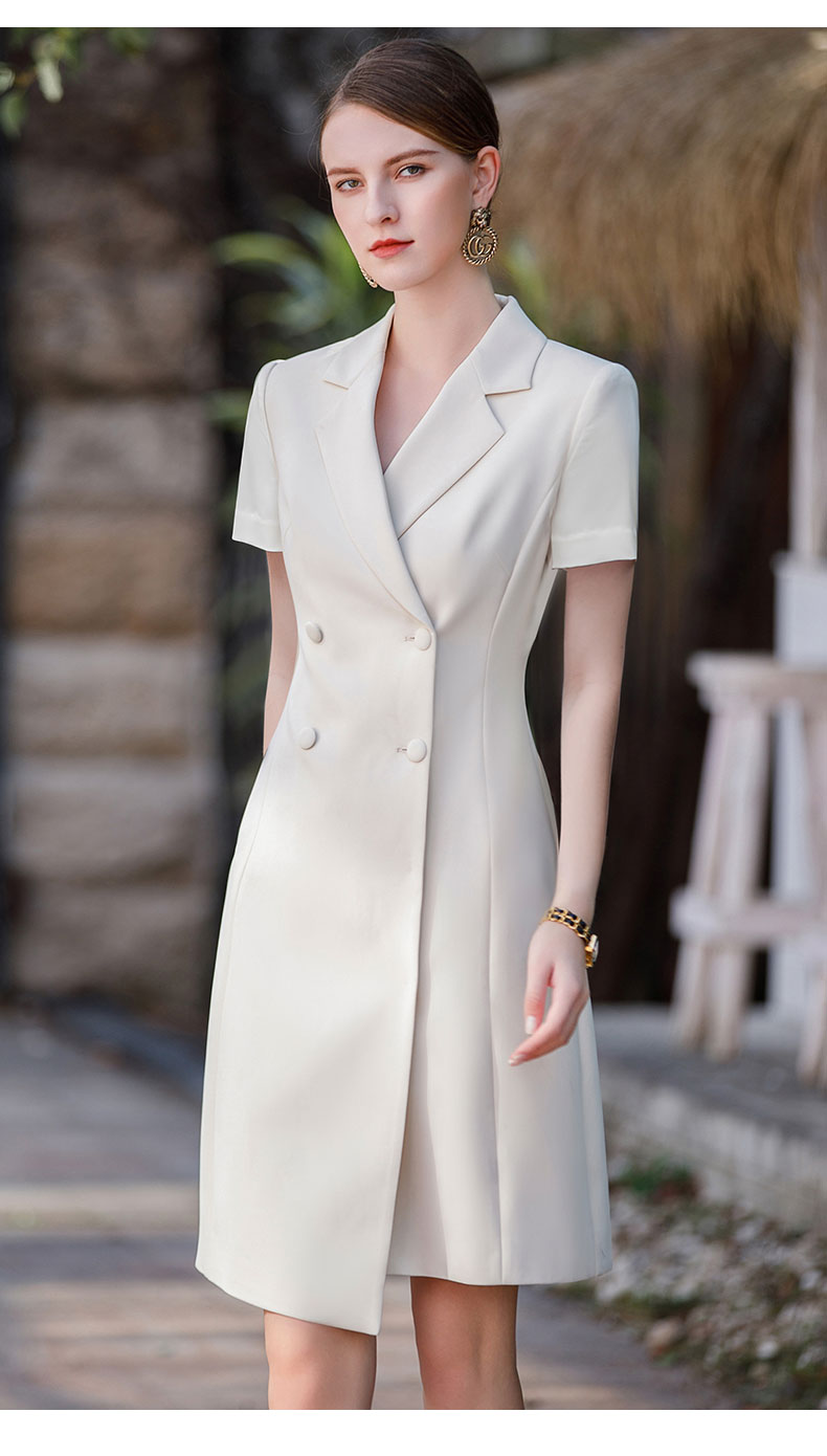 上镜主持人正装连衣裙女高级感不规则西装裙夏季主播浅色职业装送腰带