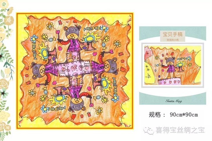 留住童年,给孩子定制一份爱 喜得宝儿童艺术绘画作品丝巾定制