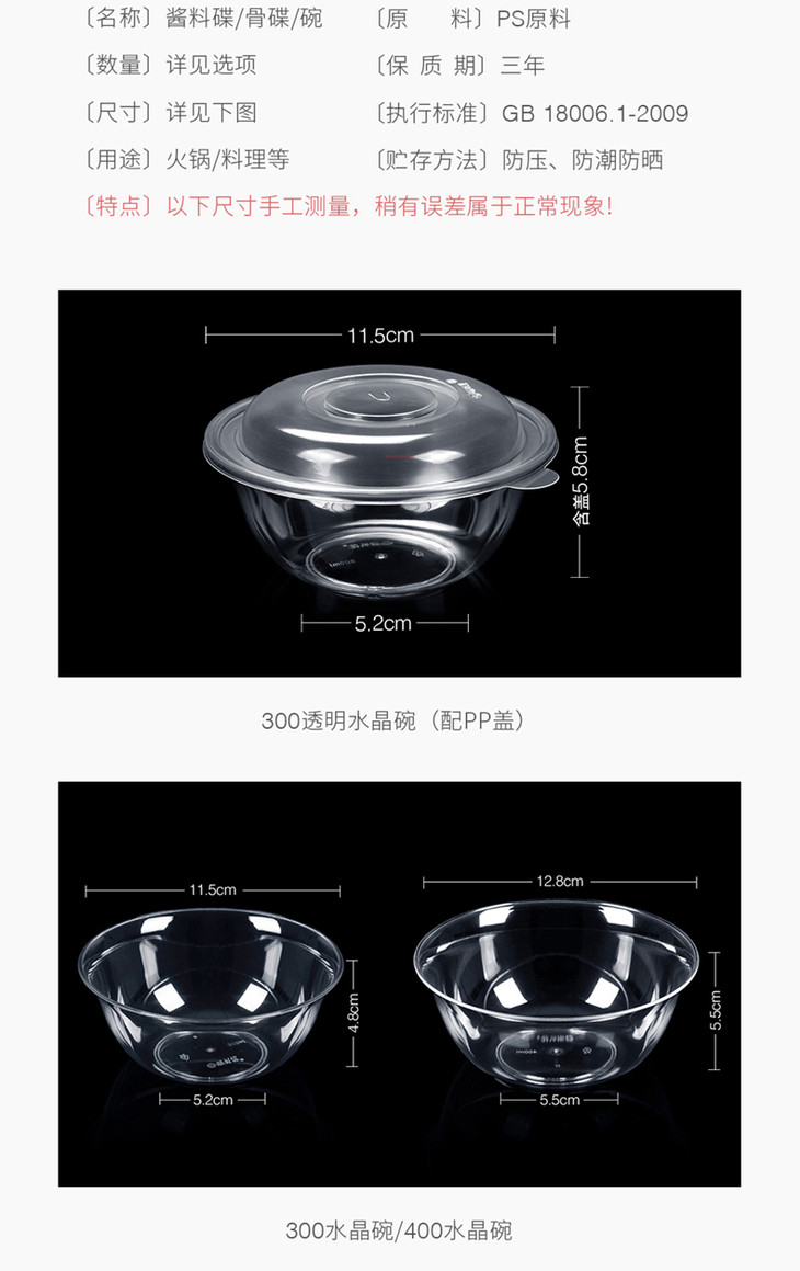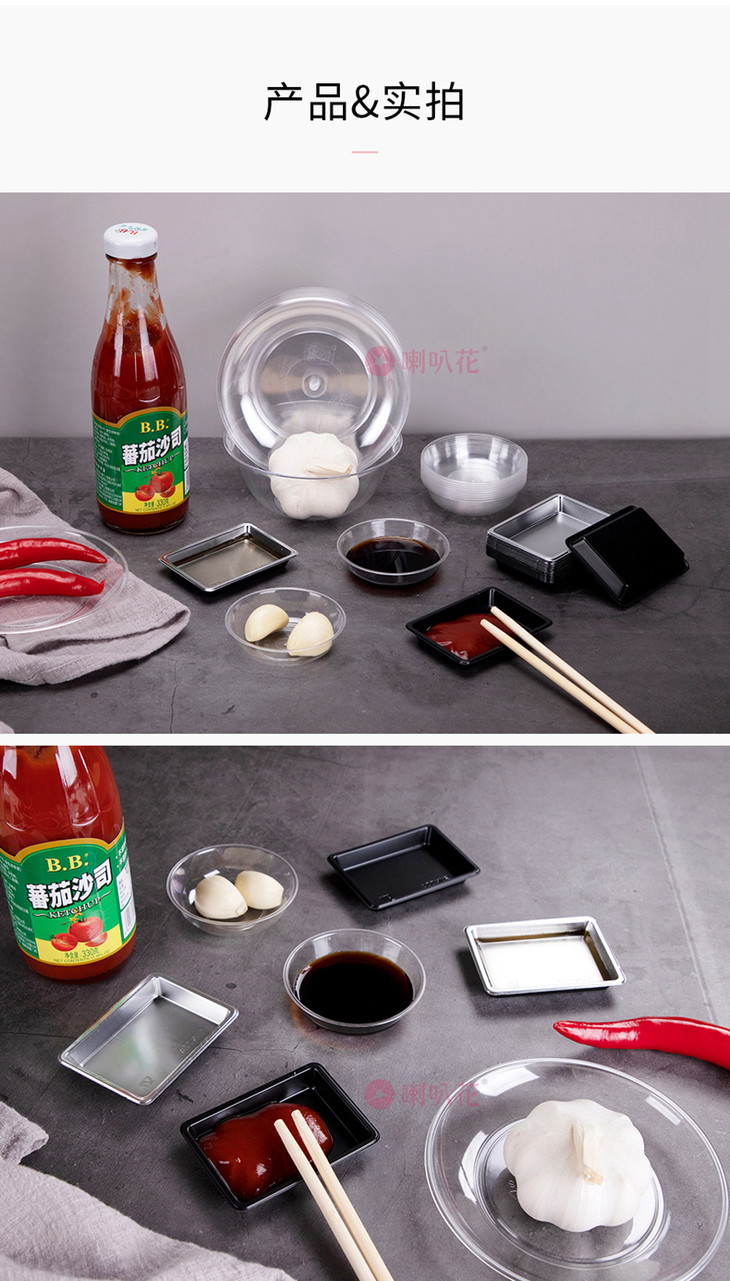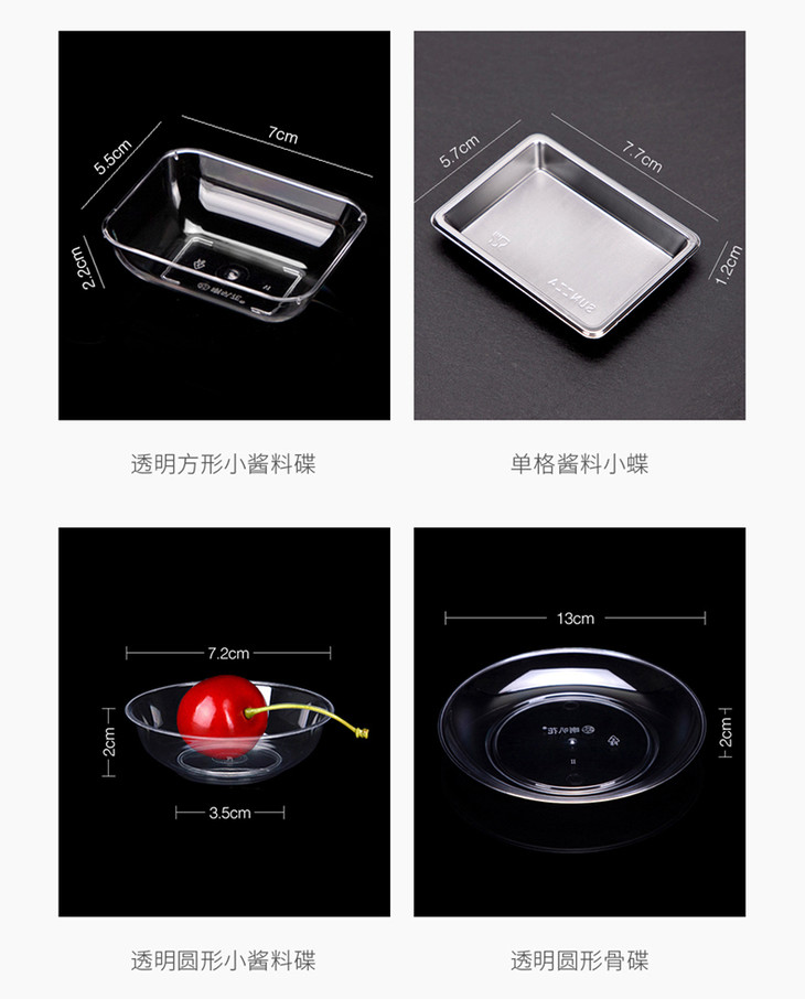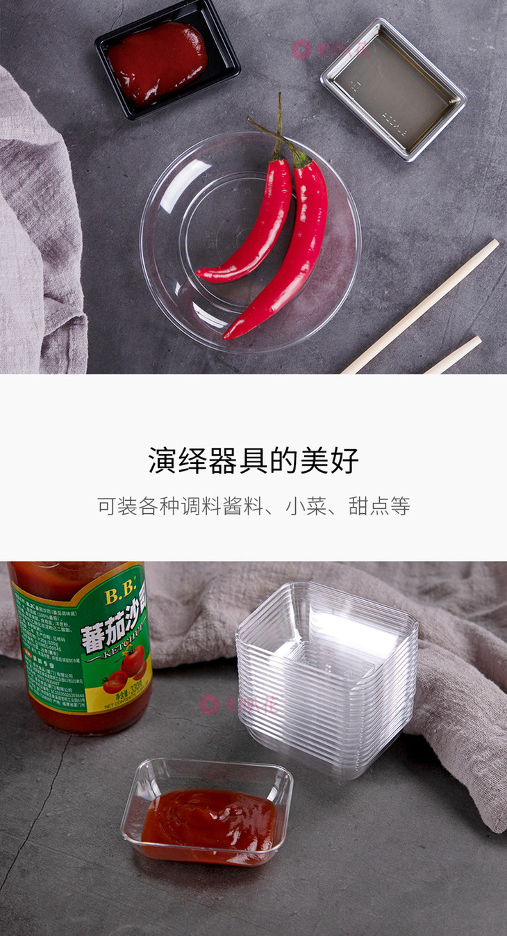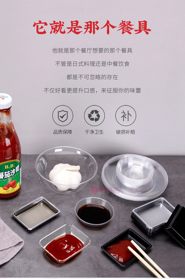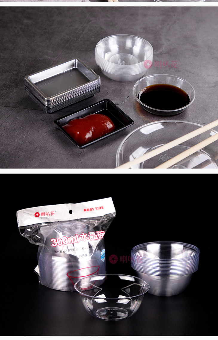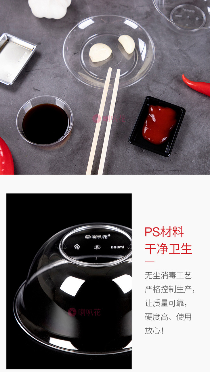 喇叭花一次性ps水晶碗调味碟塑料酱料碟塑料小菜碟醋碟甜品碗碟子500只