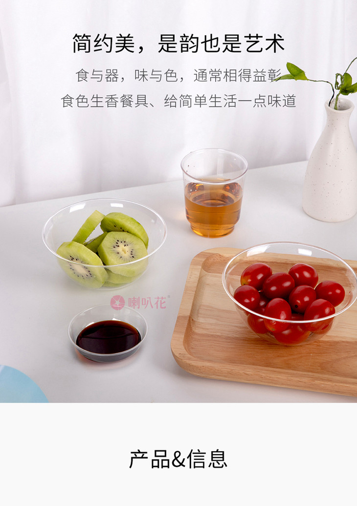 - 喇叭花拥有上千款不同种类和样式的一次性餐具,致力于满足顾客的需求,同时帮助展现客户的品牌、理念及服务。