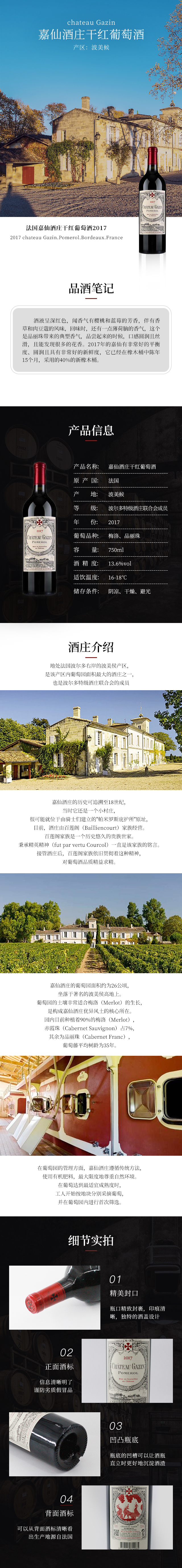 法国嘉仙酒庄干红葡萄酒2017