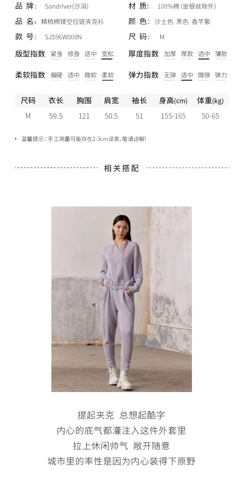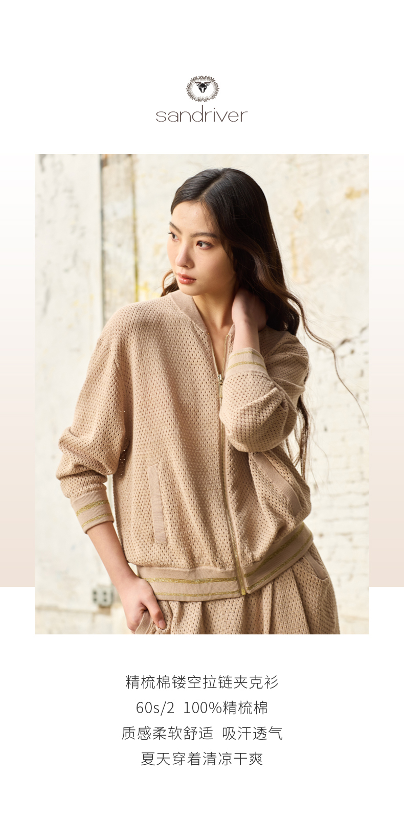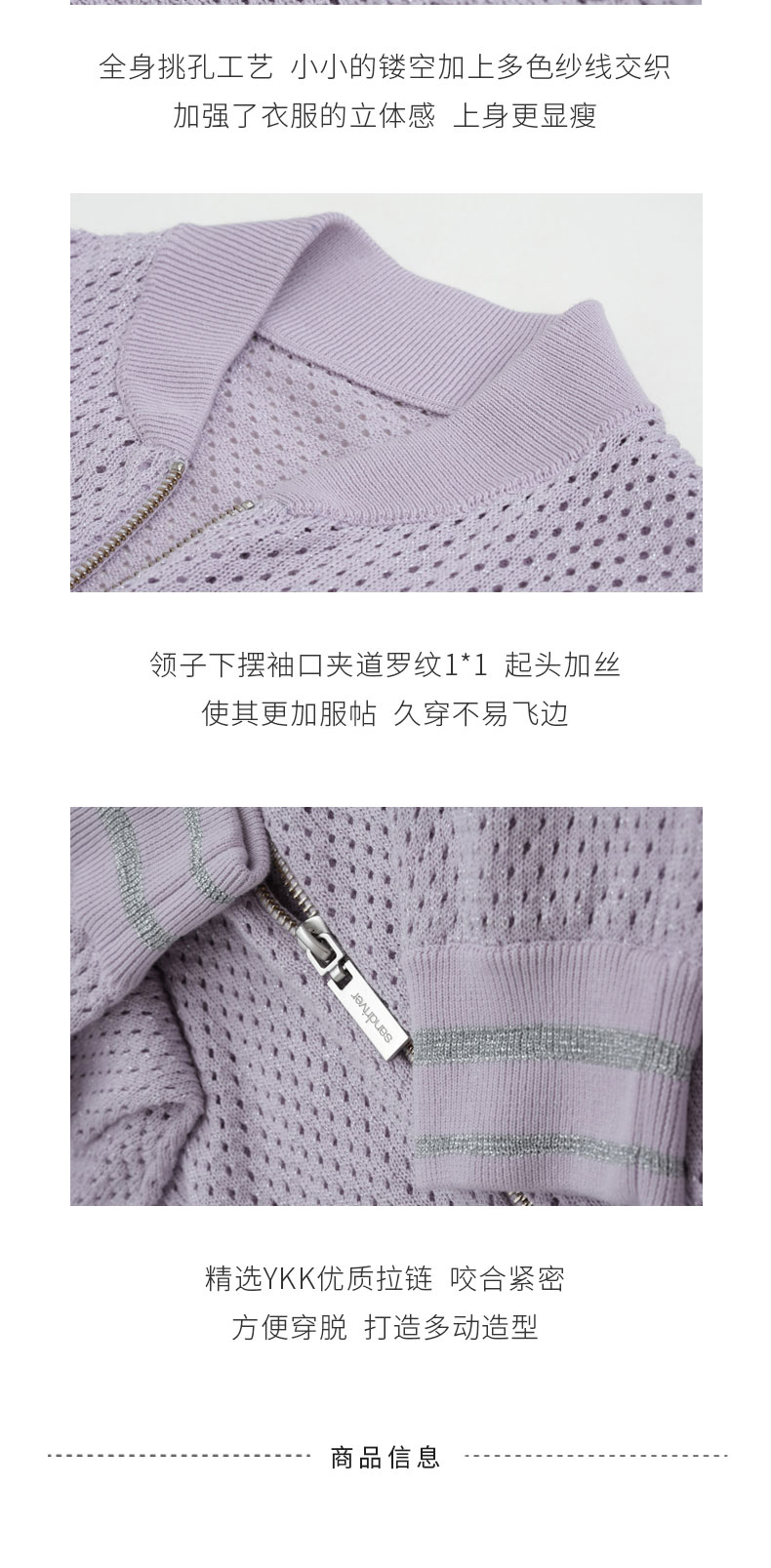 精梳棉镂空拉链夹克衫SJS96W008N
