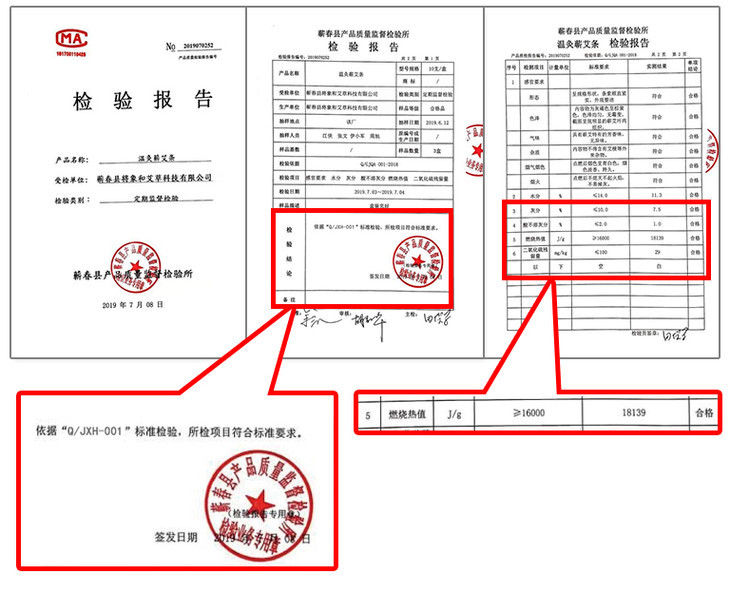 艾条的颜色、气味、艾灰都可以做假,而“燃烧热值”不能做假!