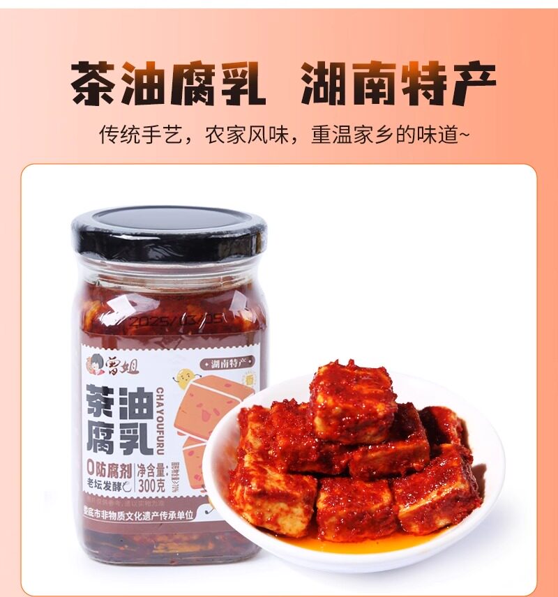 曾姐茶油腐乳湖南特产手工香辣下饭菜火锅蘸料霉豆腐腐乳300g
