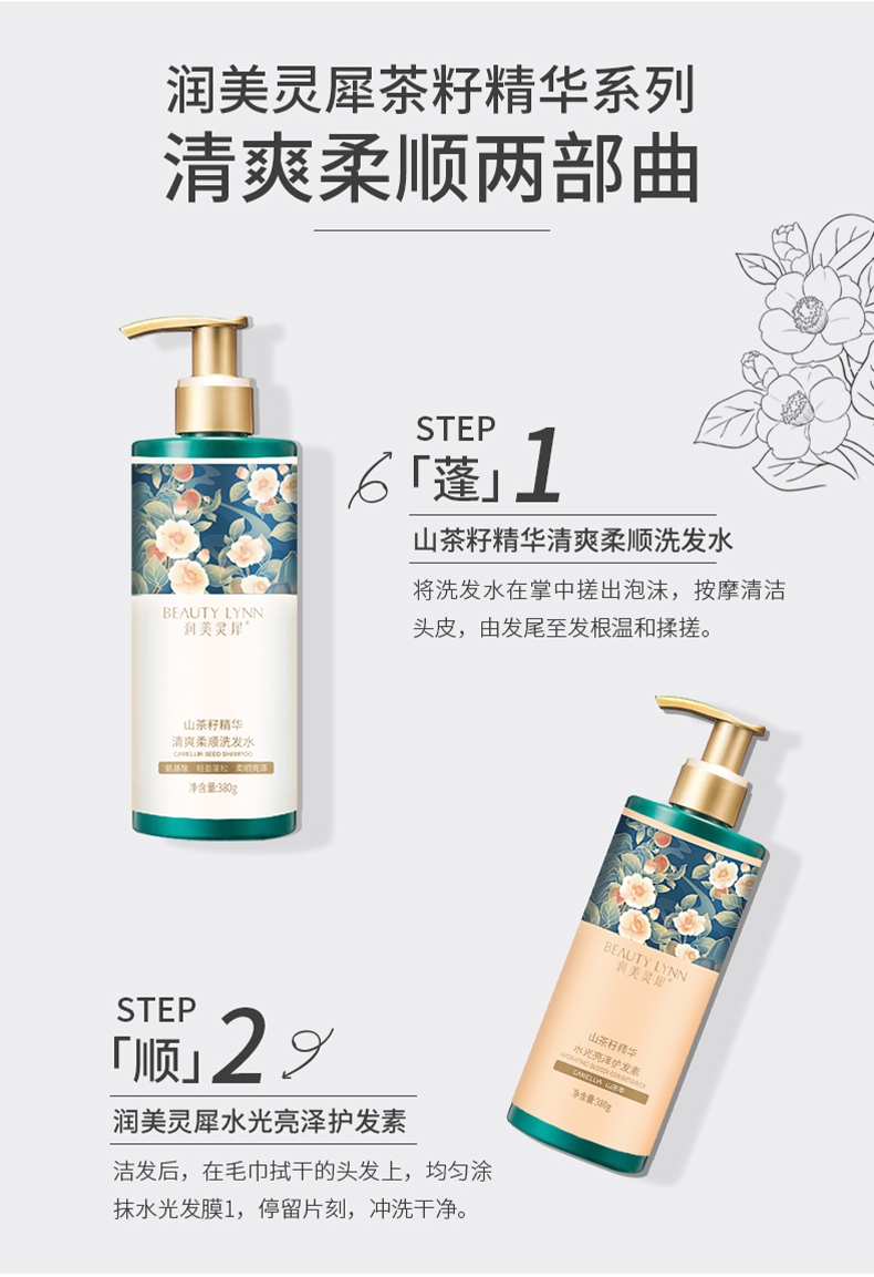润美灵犀山茶籽精华洗护组合(洗发水+沐浴露+护发素)礼盒装