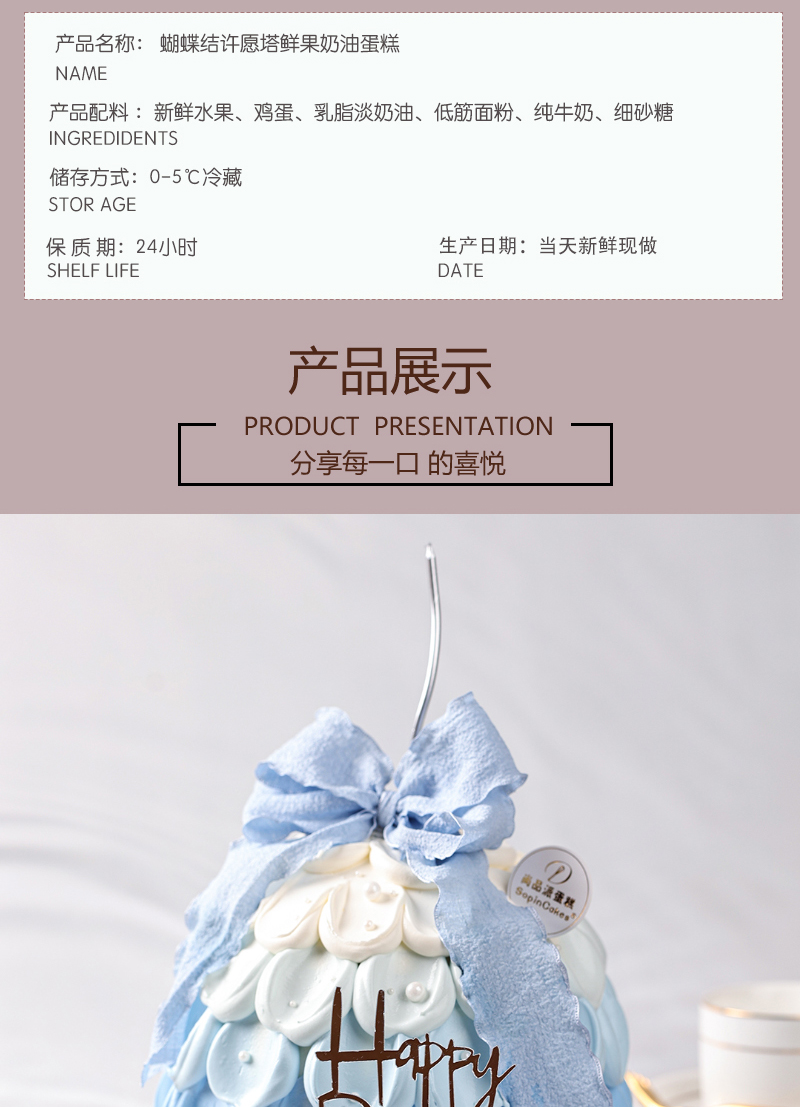 蝴蝶结许愿塔-鲜果奶油蛋糕【惠州】