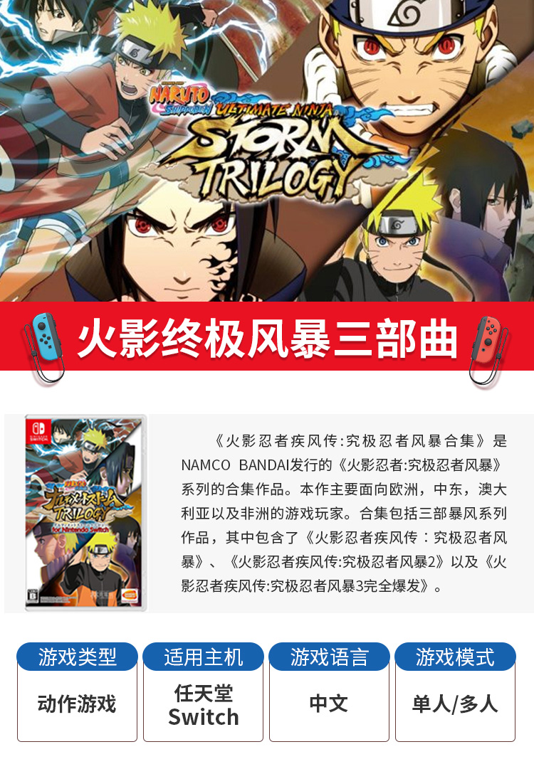 【畅玩卡可租】二手Switch游戏 火影忍者究极风暴三部曲 仅三是中文版