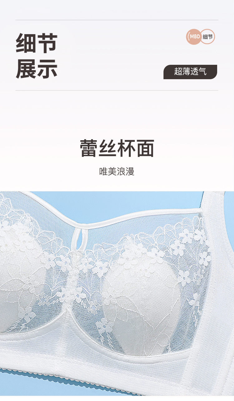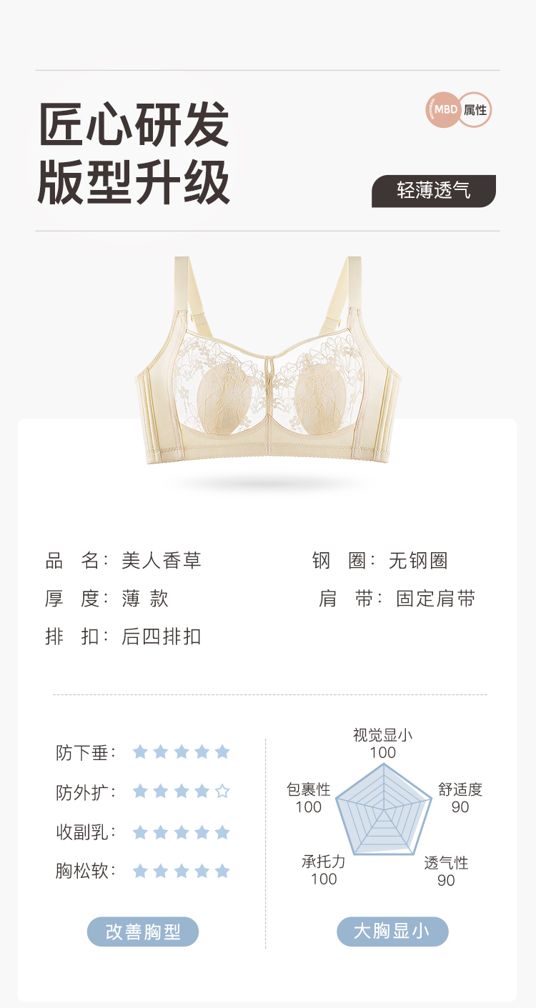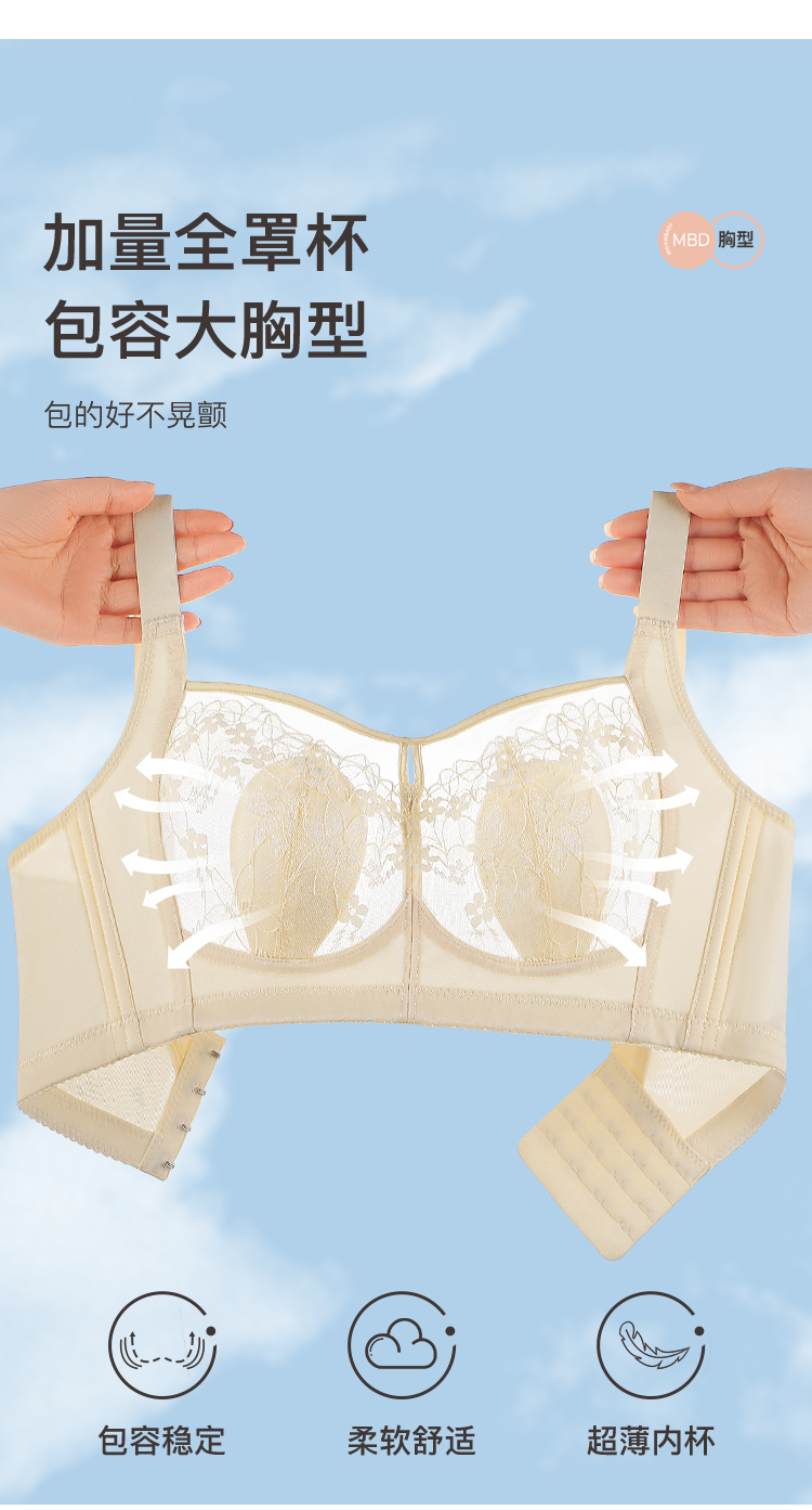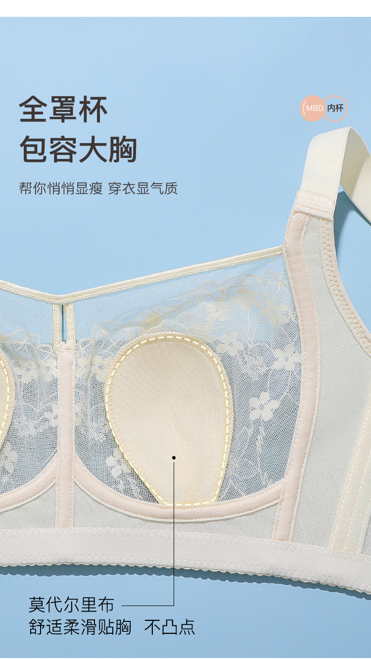 【超薄透气大胸显小】全罩杯夏季薄款调整型内衣收副乳镂空文胸美人香草A