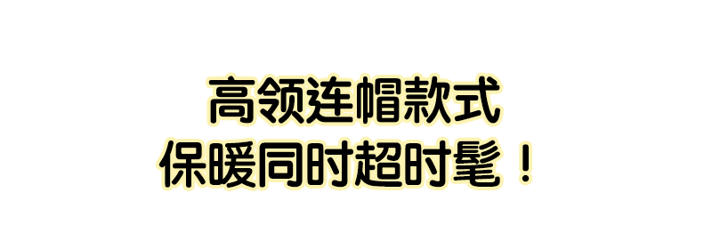 中高领设计,拉上拉链,冷风再也灌不进来,更冷时还能戴上连帽,保暖度加倍。