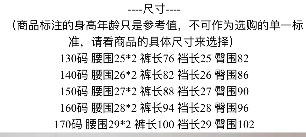 | 裤长 | 73 | 79 | 85 | 91 | 97 | 103 | ||