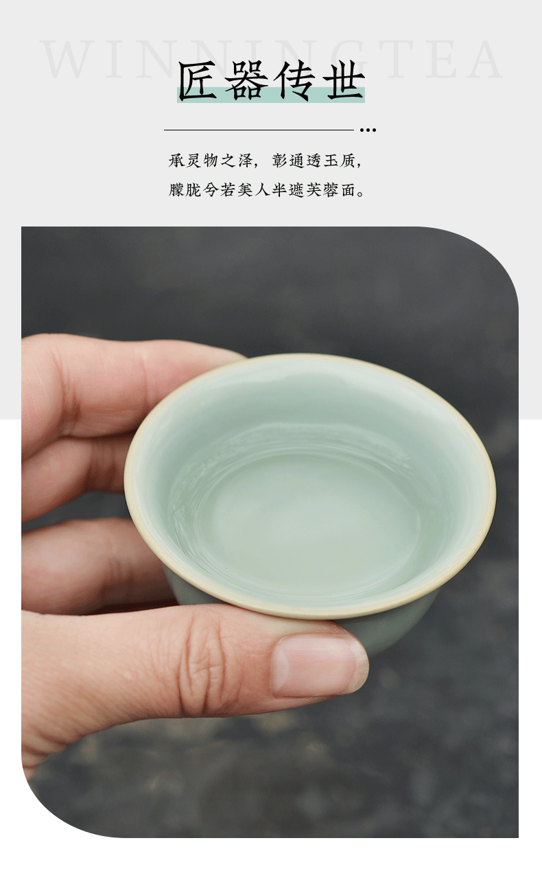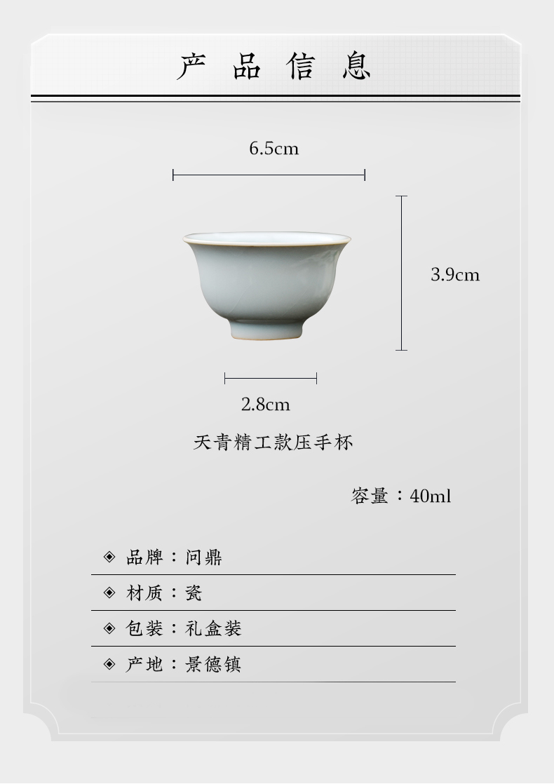 问鼎汝瓷鼎峰系列天青老款精工款压手杯(缺货)