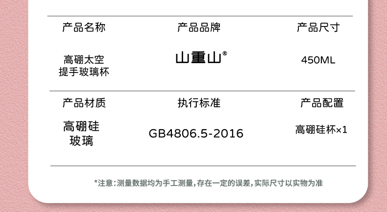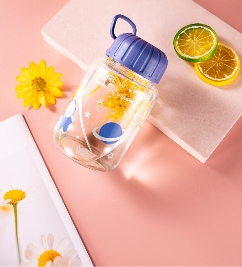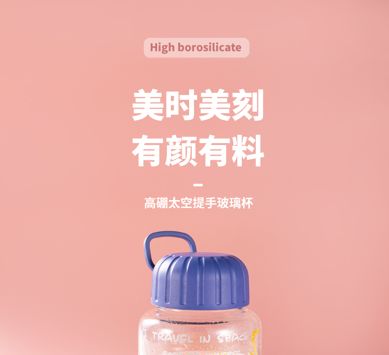 山重山水杯男女玻璃杯ins风高颜值可爱少女心夏季水杯便携女学生网红办公室随手杯 【发圆通】太空提手杯450ml