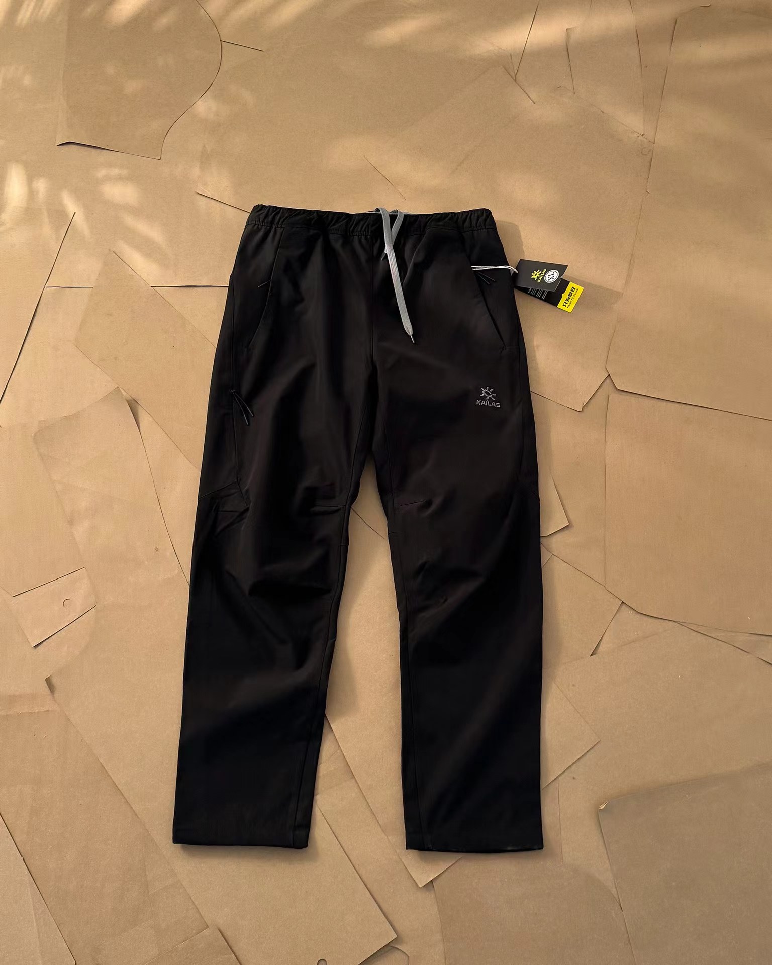 这款面料是属于户外三防加绒面料的,四面弹力,让你感受零感无束缚的户外体验,内里贴近皮肤的一层是特别光滑的,没有扎刺感.口袋下面的刺绣LOGOjing致满满.裤子的拉链和抽绳都有常青树标识,彰显不凡品味