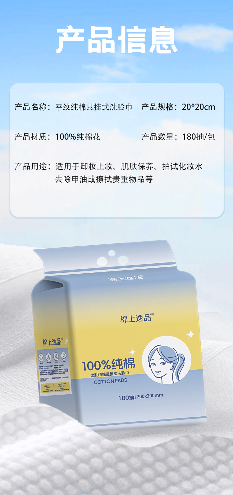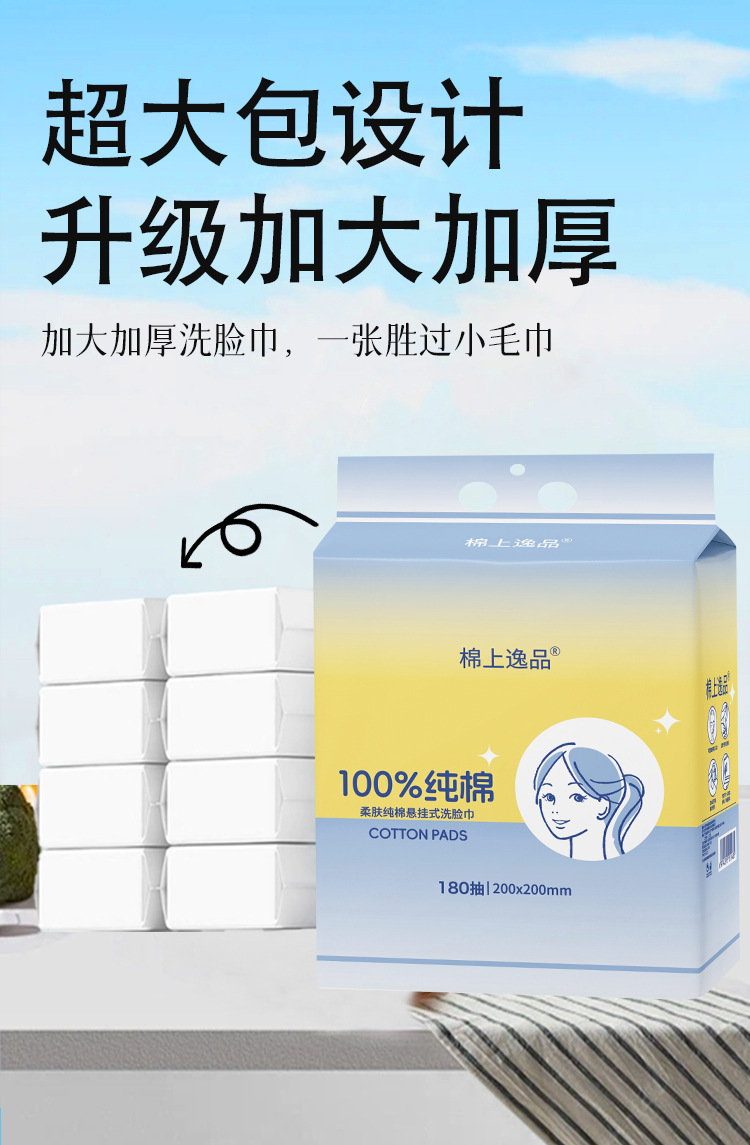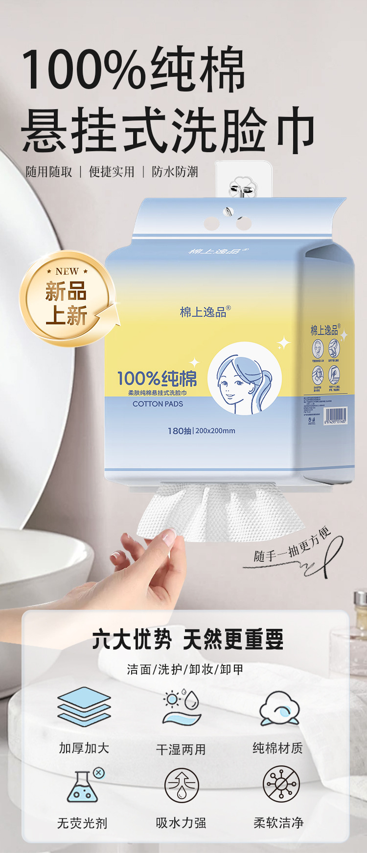 【天生柔软❗️悬挂式洗脸巾】干湿两用遇水更柔,升级加大加厚,超长纤维不掉絮,双面纹路清洁又护肤,一次性纯棉100%棉柔巾母婴可用洁面巾QQ