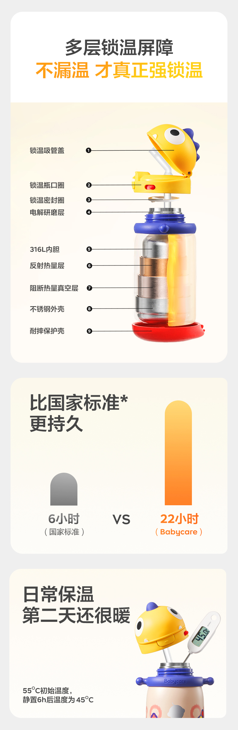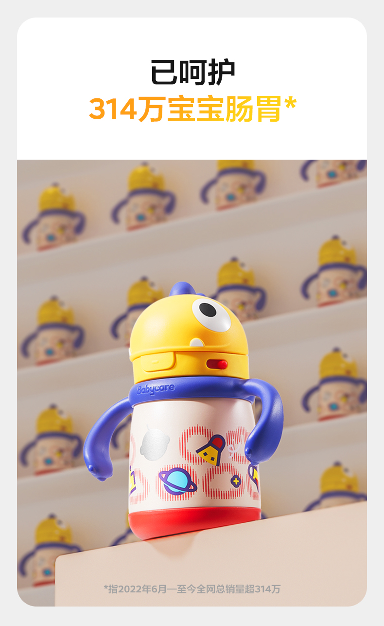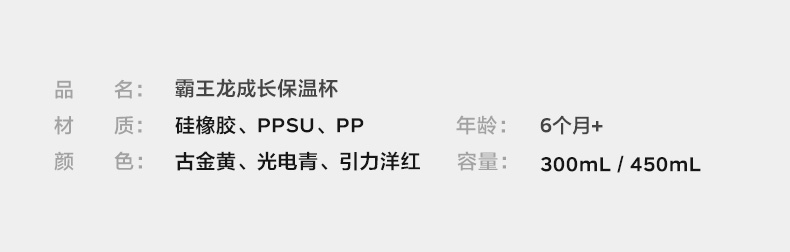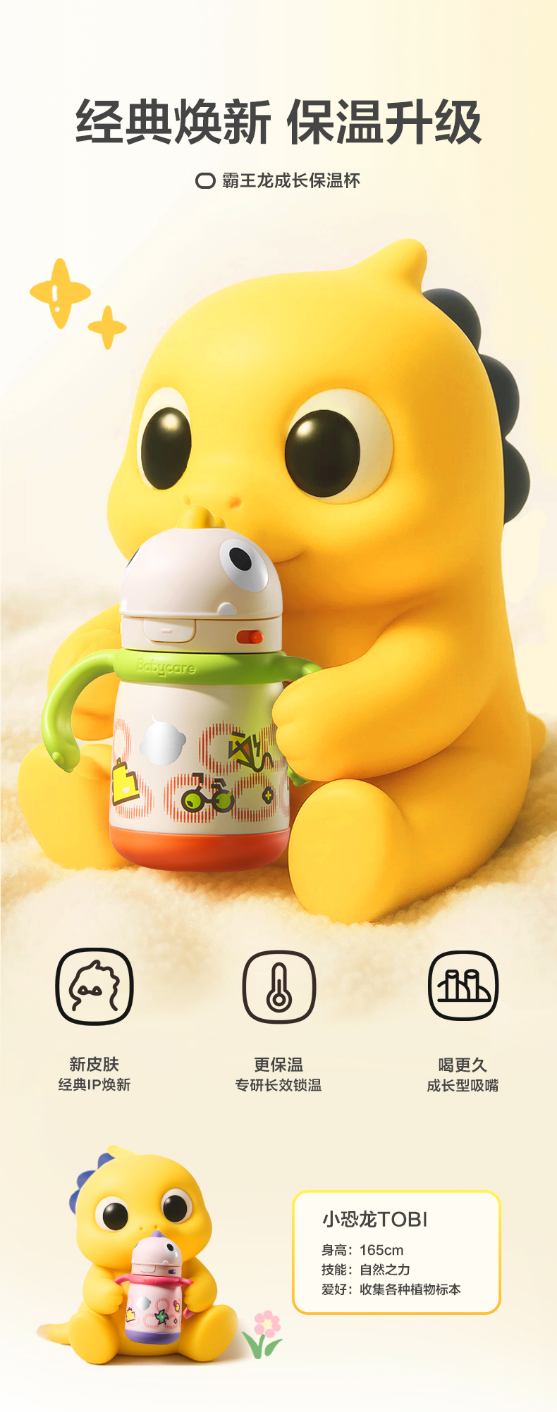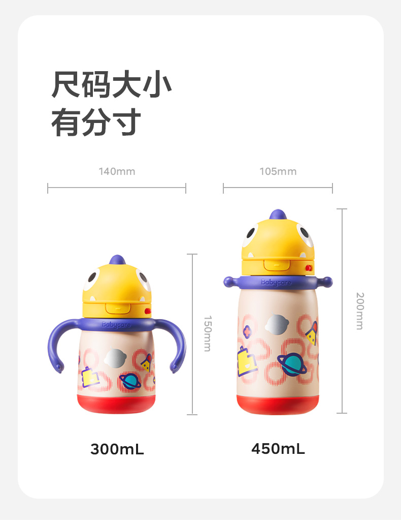 baby care450ml霸王龙成长保温杯背带款BC2408994古金黄/引力洋红