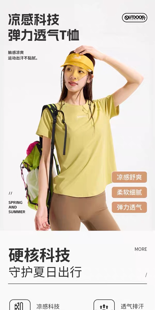 【春上新】【8折】6楼OUTDOOR新款户外休闲吸湿速干插肩时尚透气短袖T恤吊牌价199折后价159