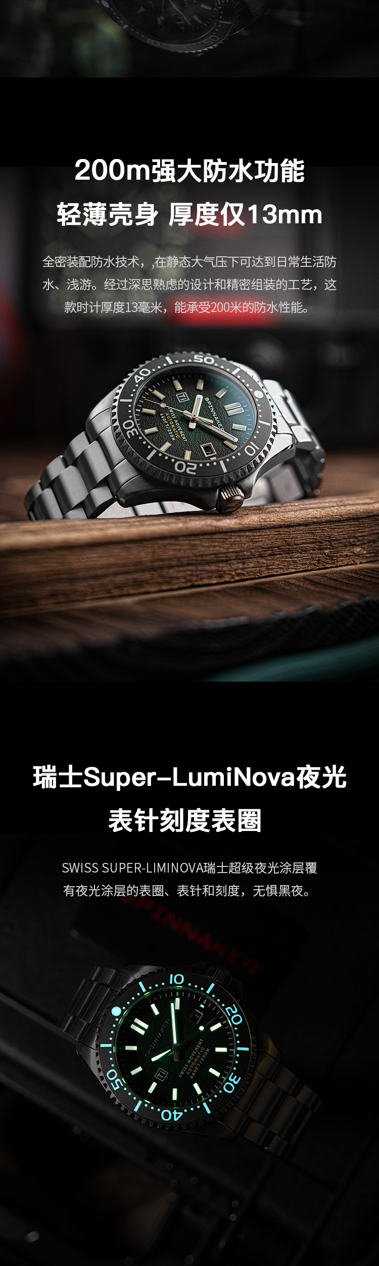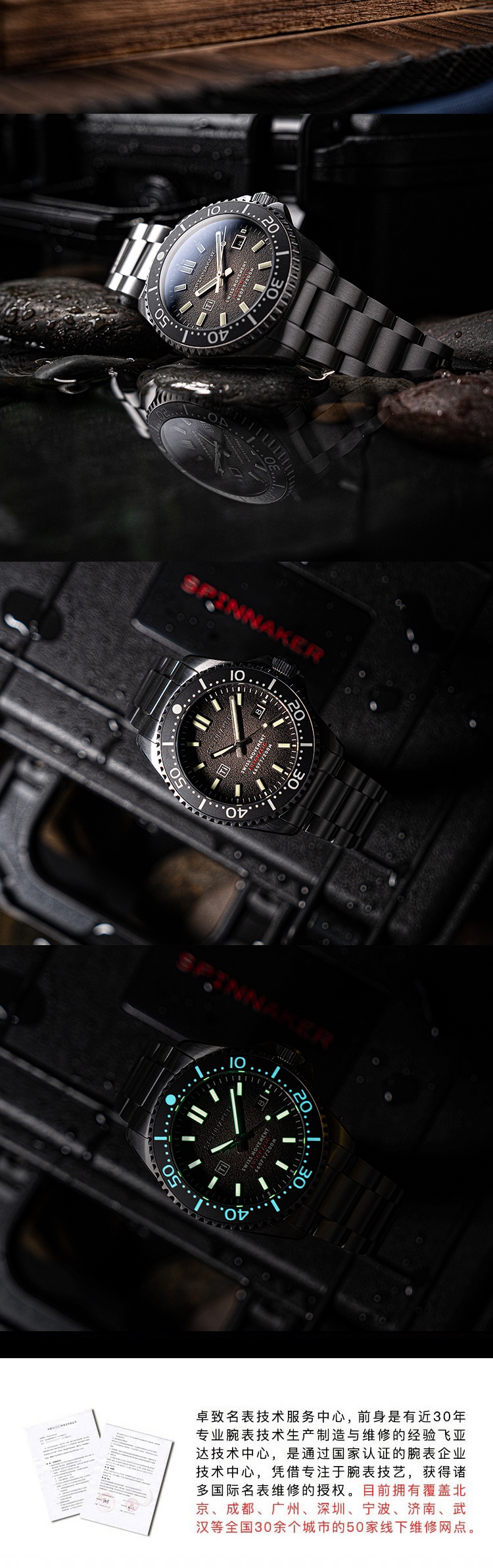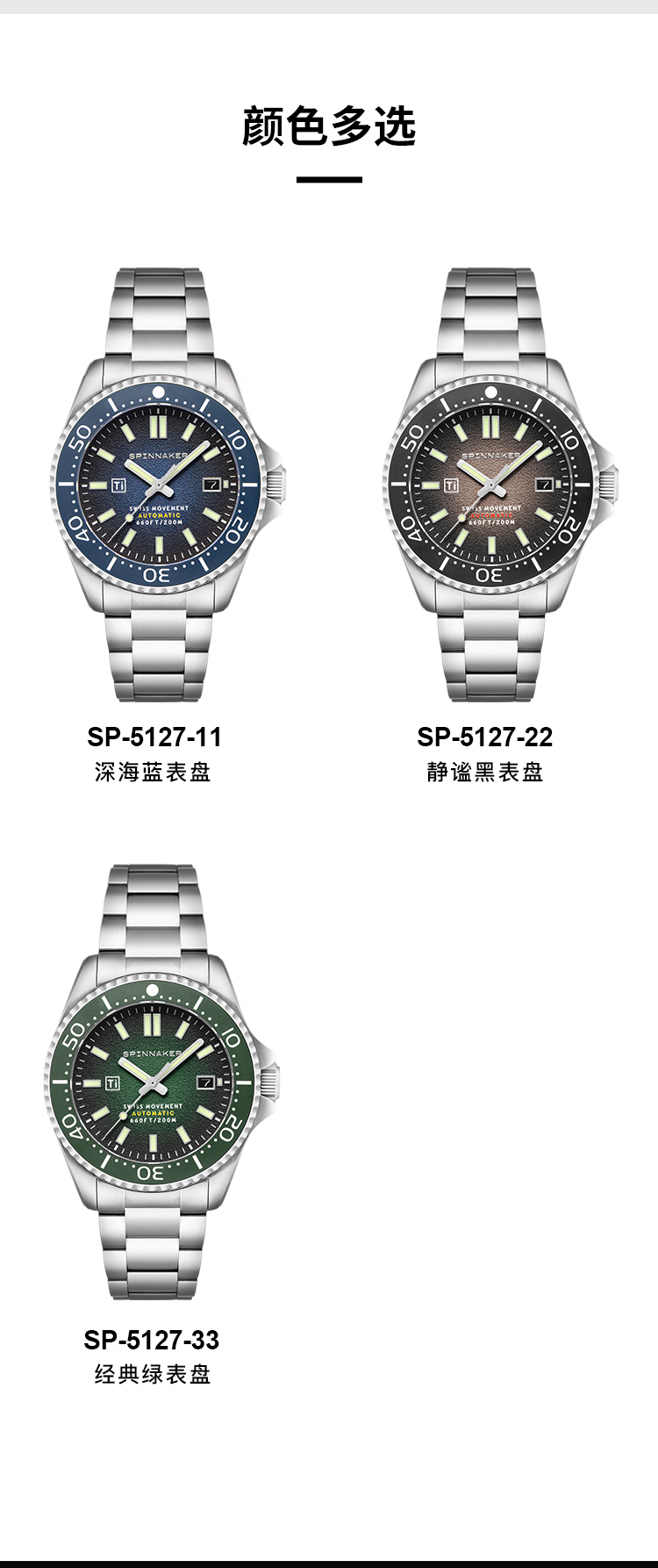 新款SPINNAKER三角帆全钛合金陶瓷圈瑞士芯自动机械手表潜水5127