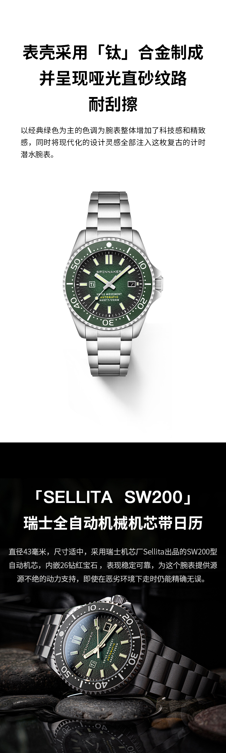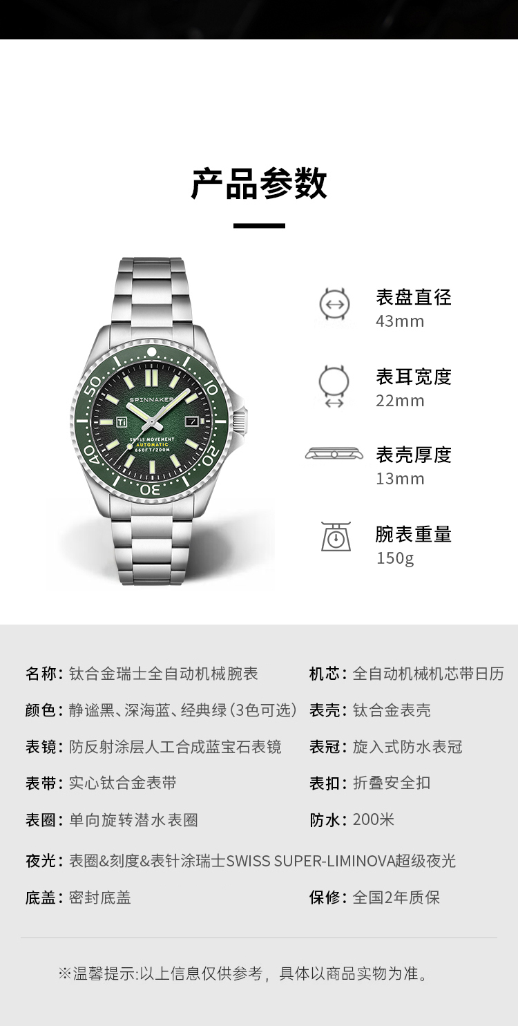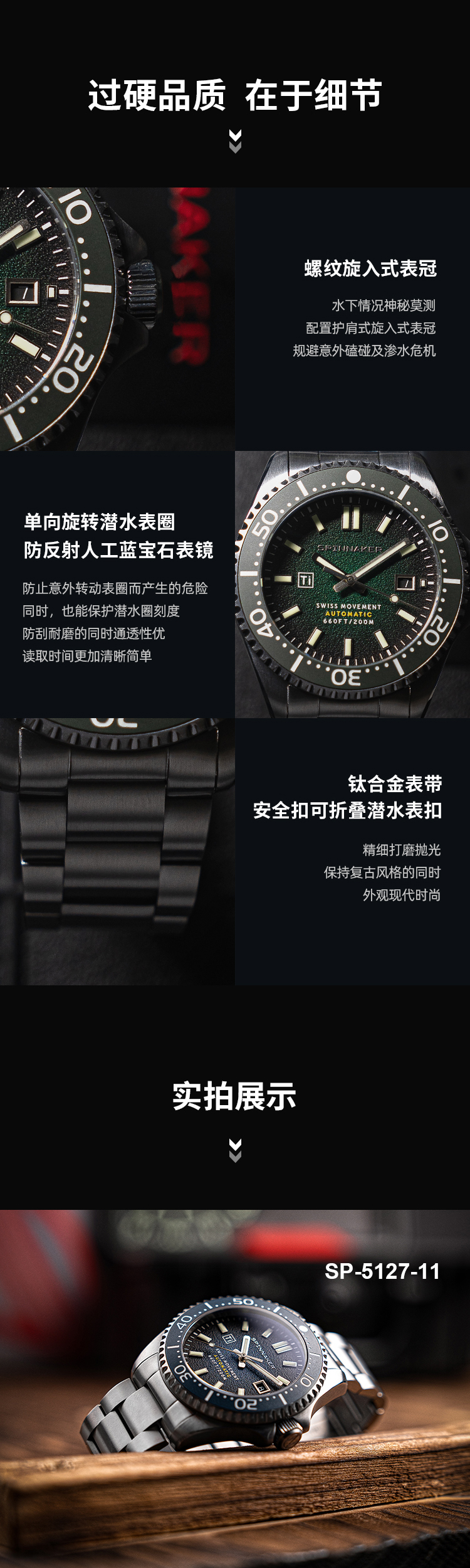 新款SPINNAKER三角帆全钛合金陶瓷圈瑞士芯自动机械手表潜水5127