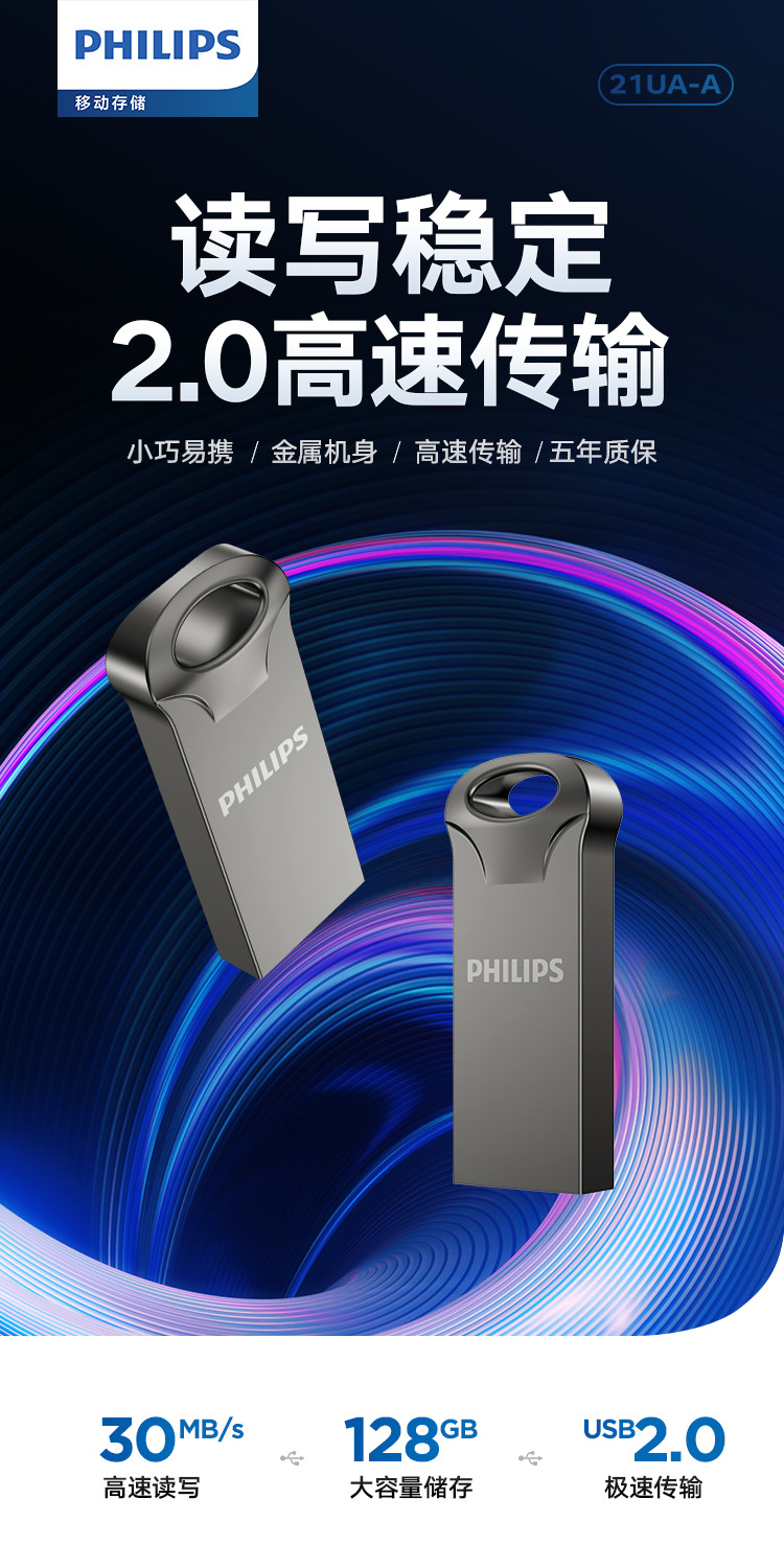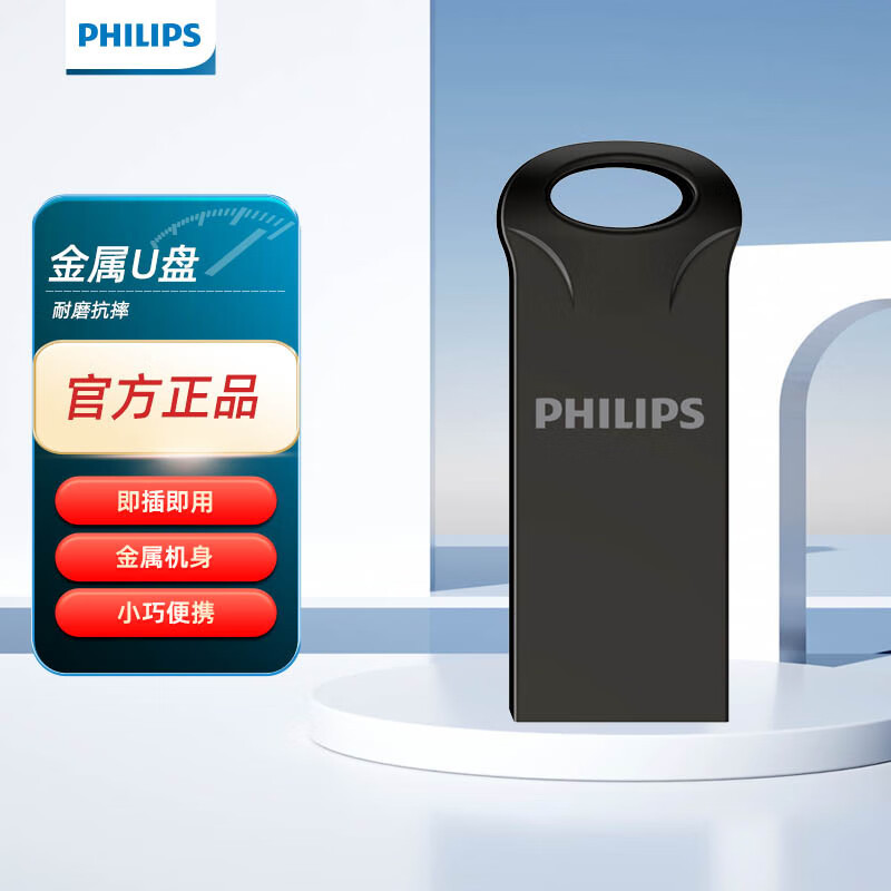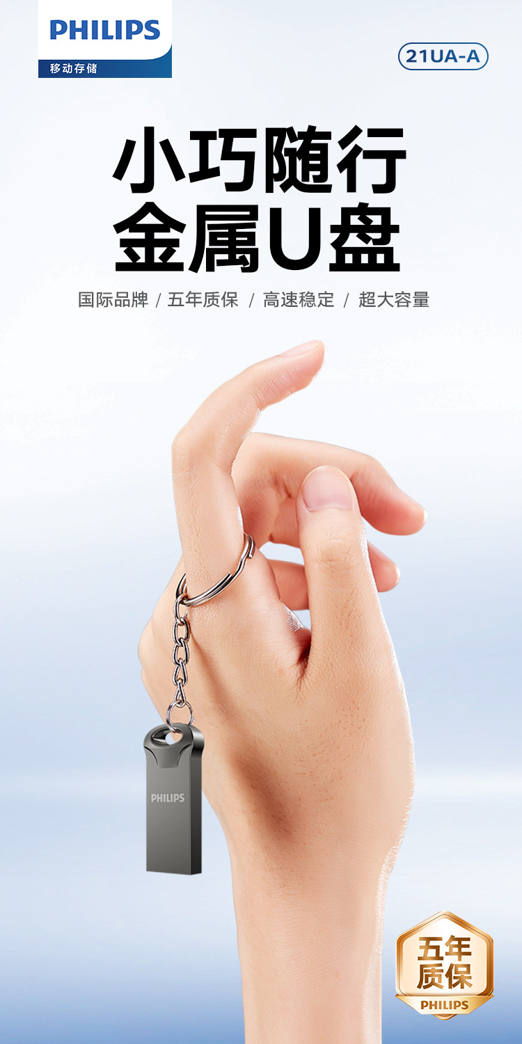 飞利浦21UA金属迷你防水防震8GB U盘高速婚庆优盘钥匙环便携