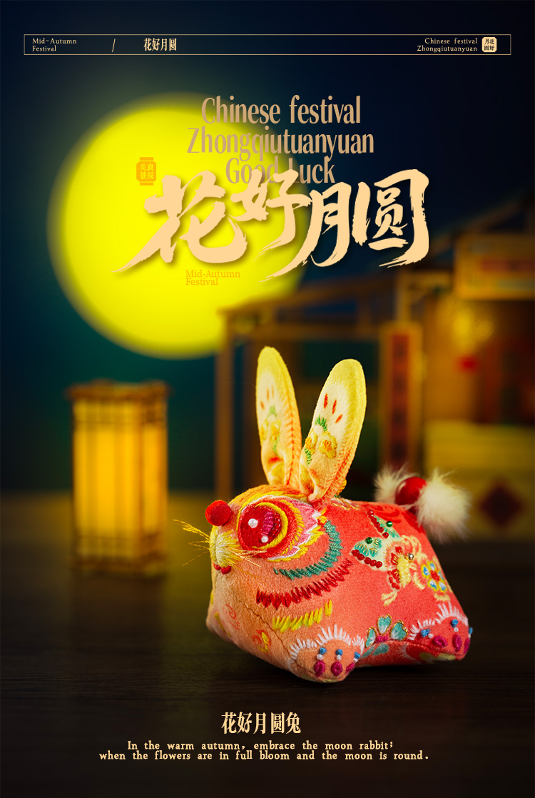 「中秋送礼」兔儿爷系列—大将军小仕女玩偶刺绣材料包