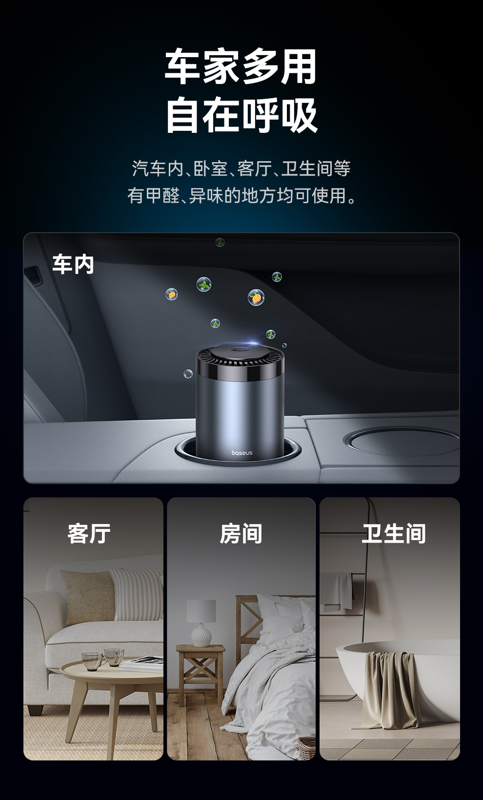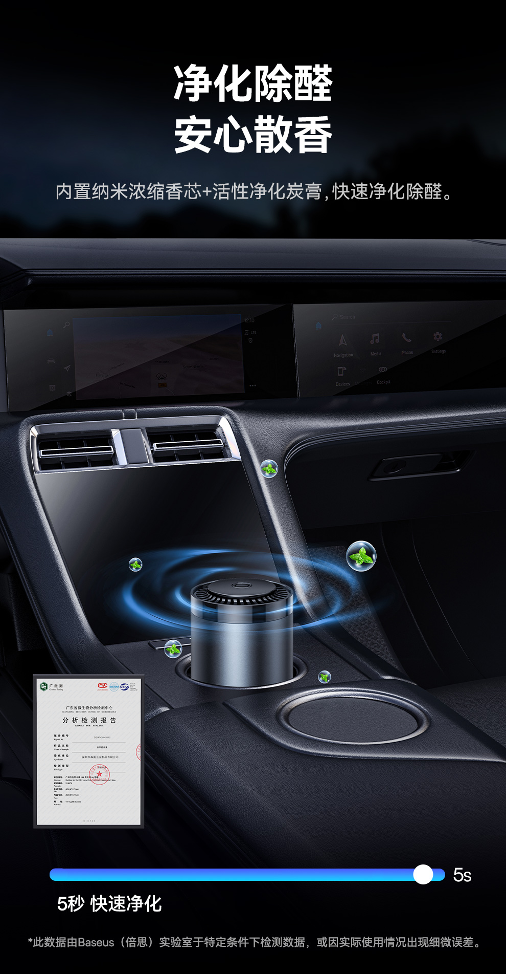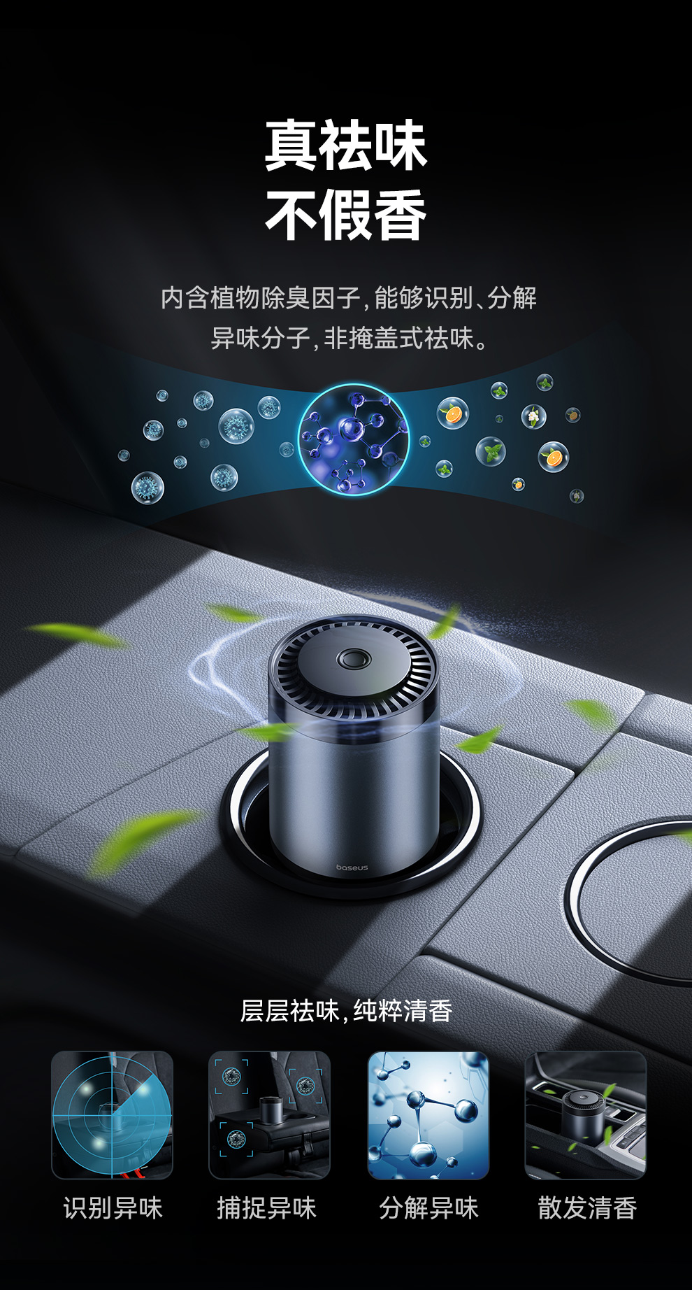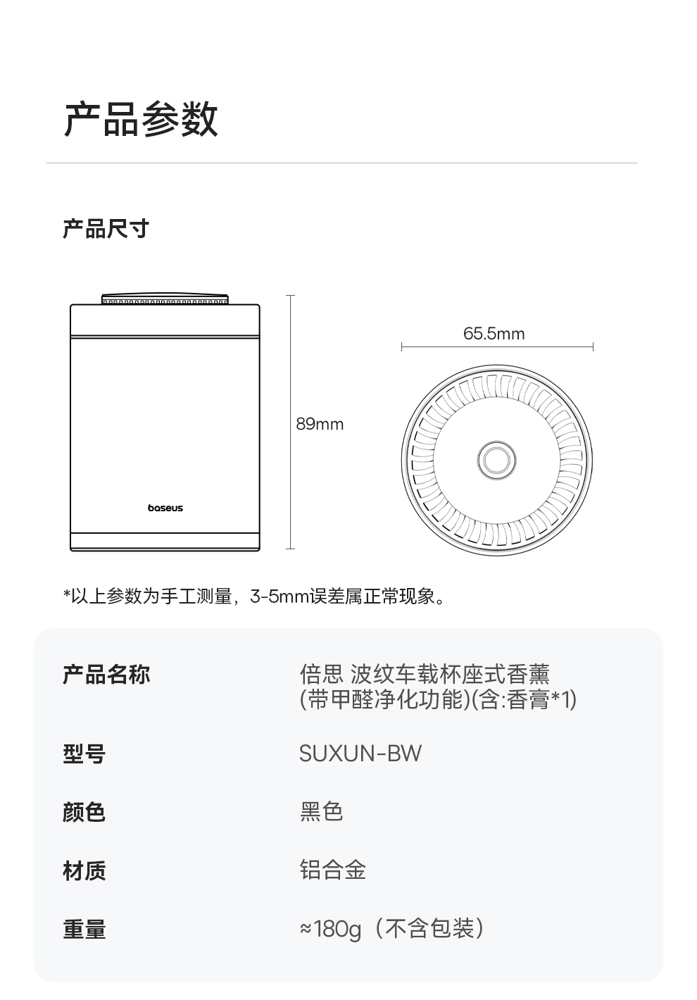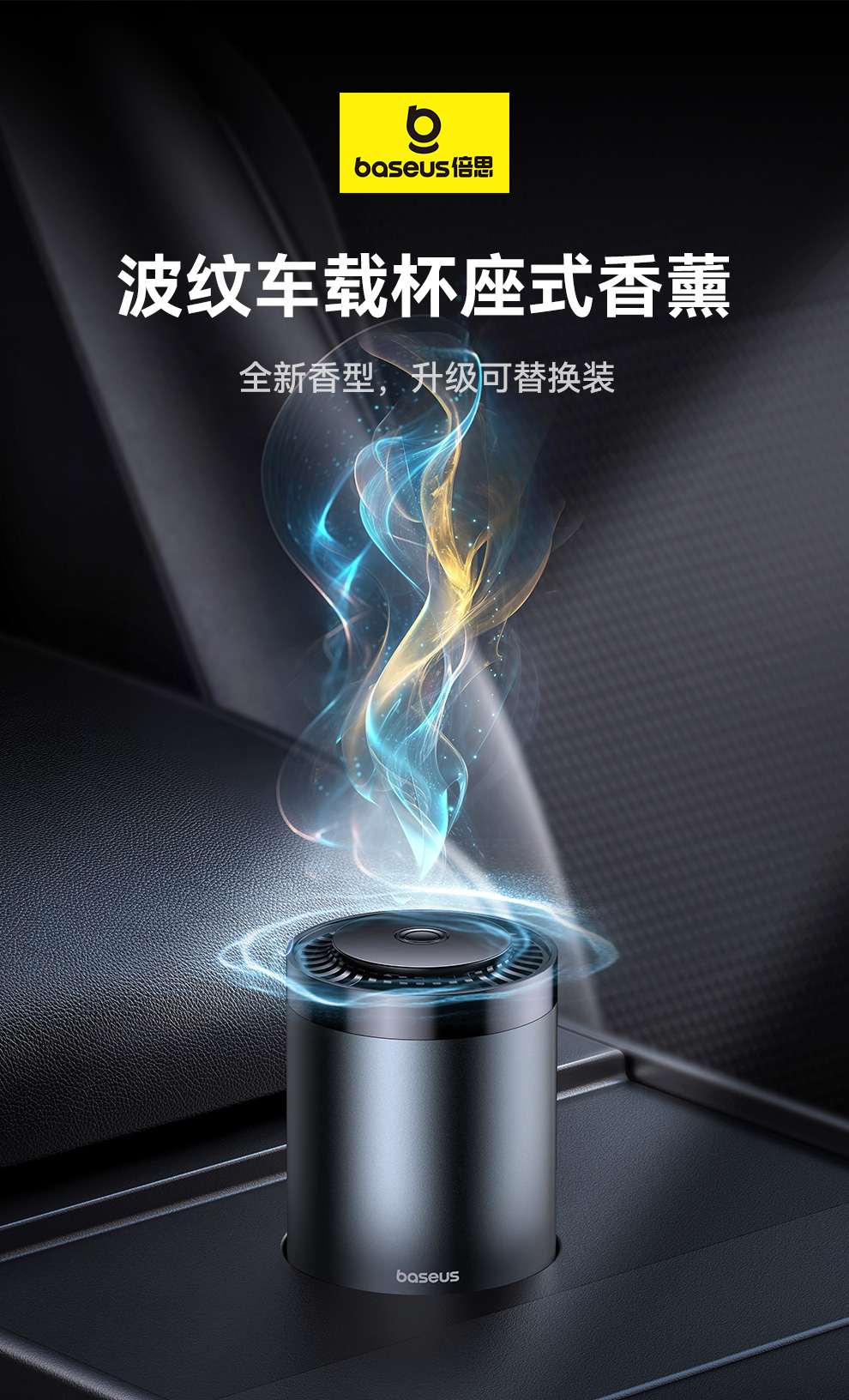 【69元3件】倍思 波纹 车载杯座式香薰 (带甲醛净化功能)