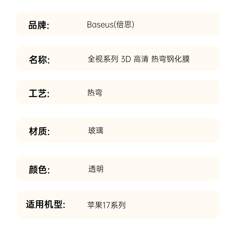 倍思 全视系列 高清 3D热弯 钢化膜 苹果17 iPhone