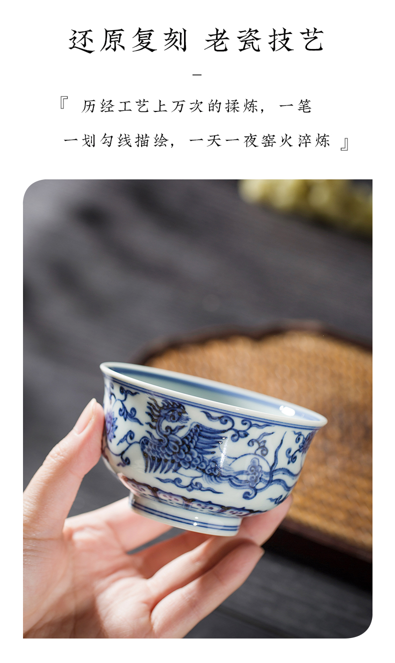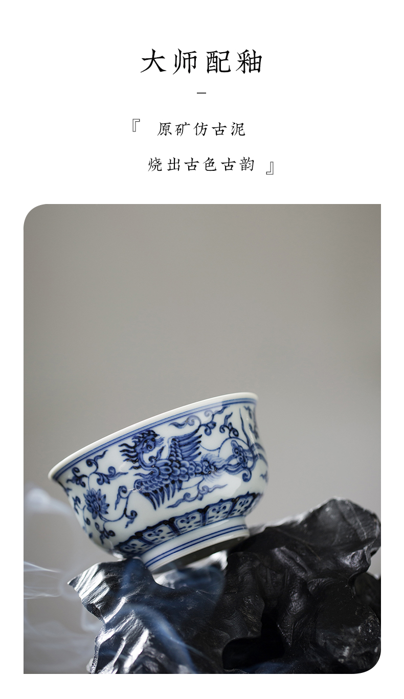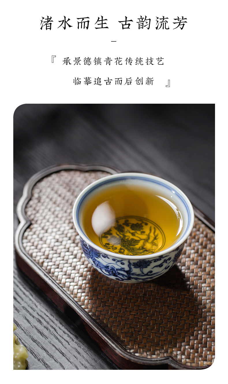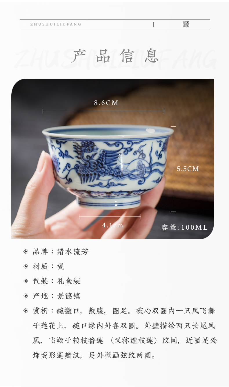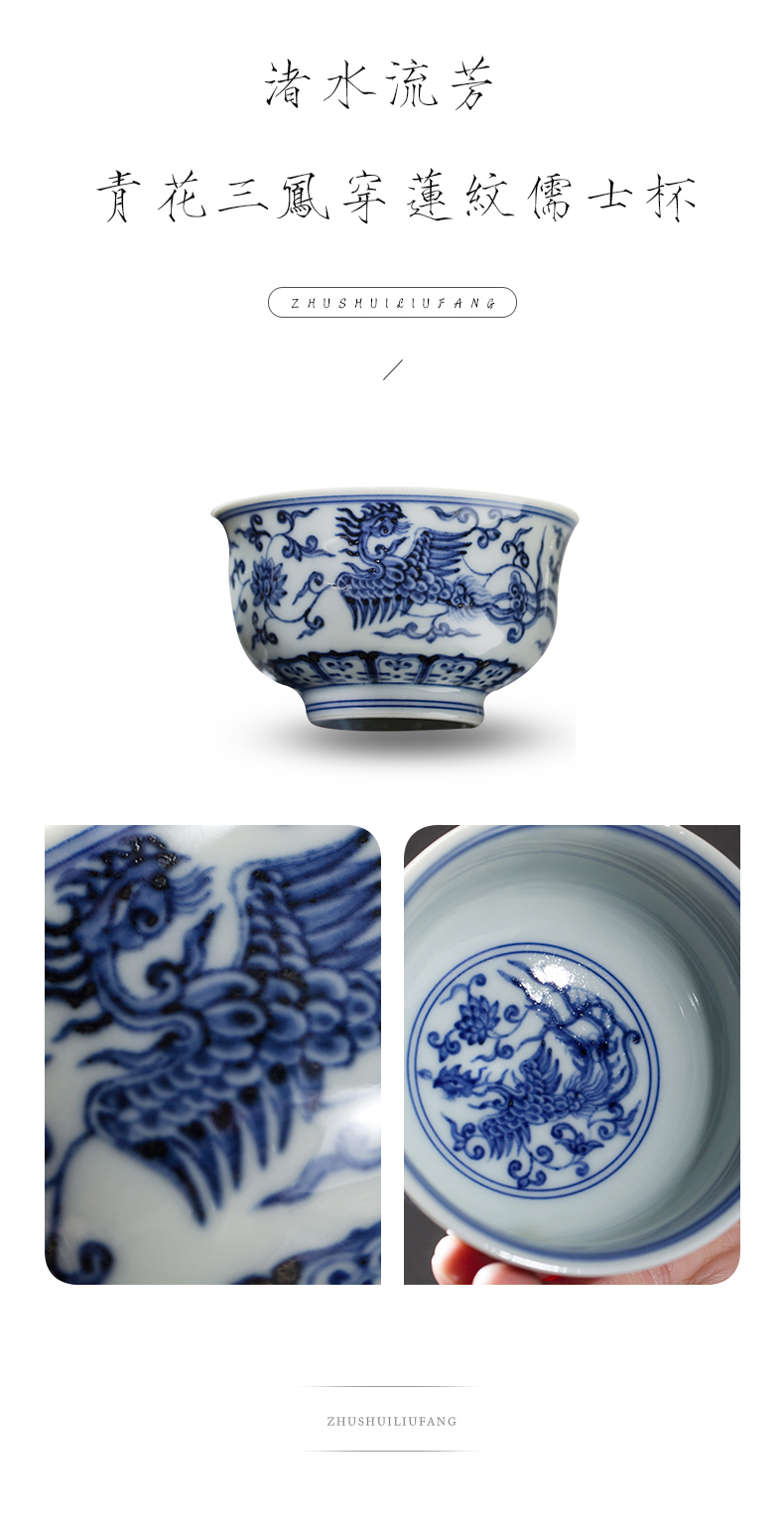 渚水流芳青花三凤穿莲纹儒士杯(缺货)