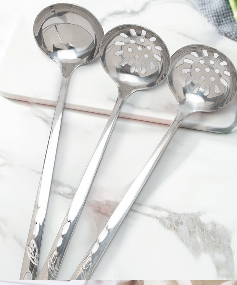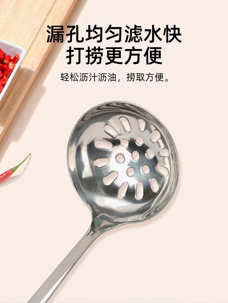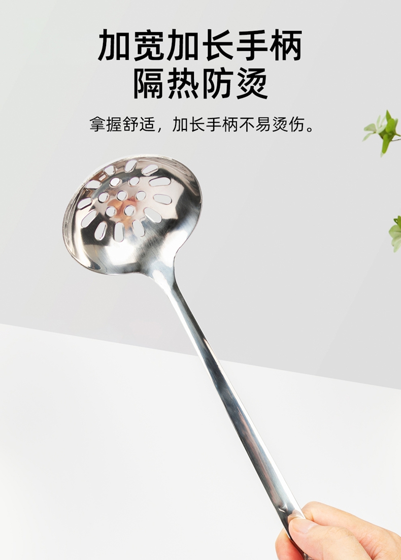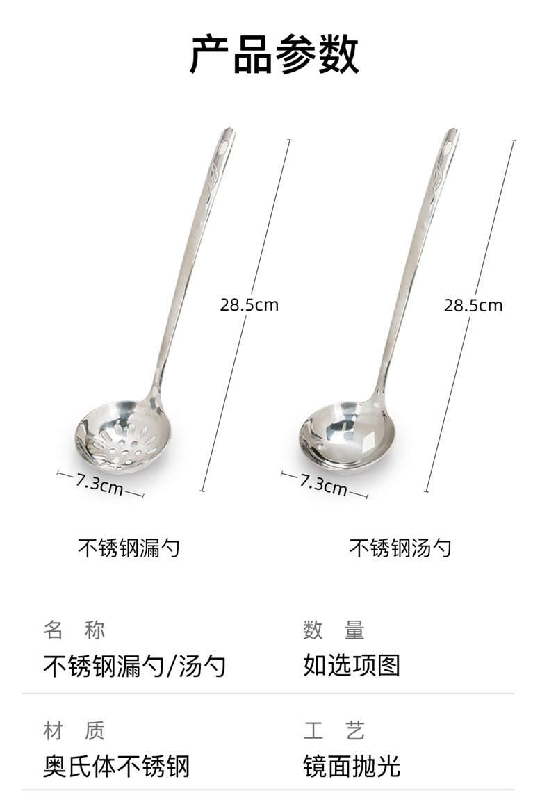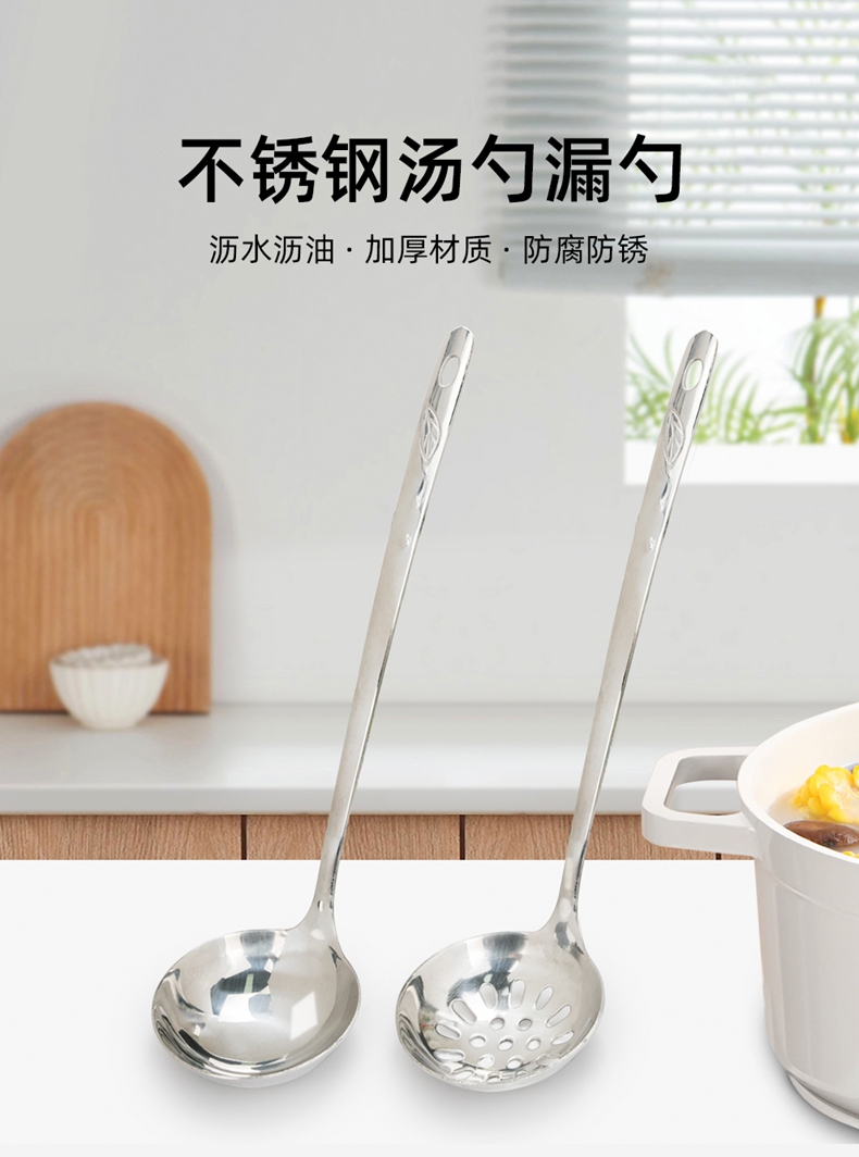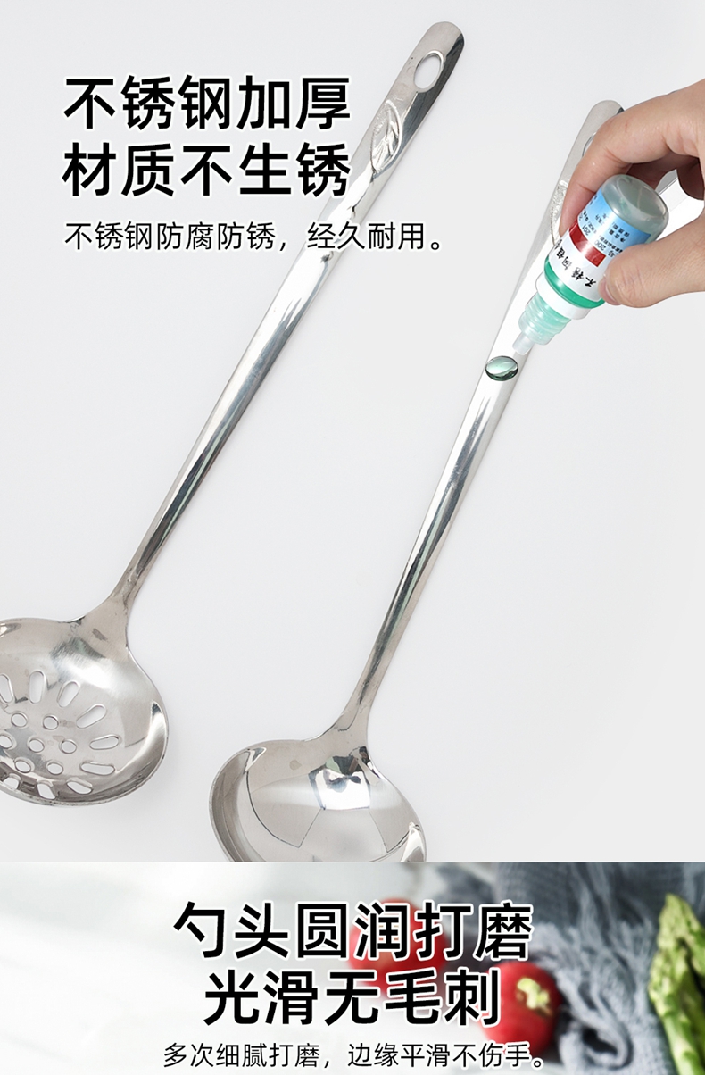 喇叭花加厚不锈钢家用盛汤长柄大号稀饭粥勺子火锅汤勺漏勺套装