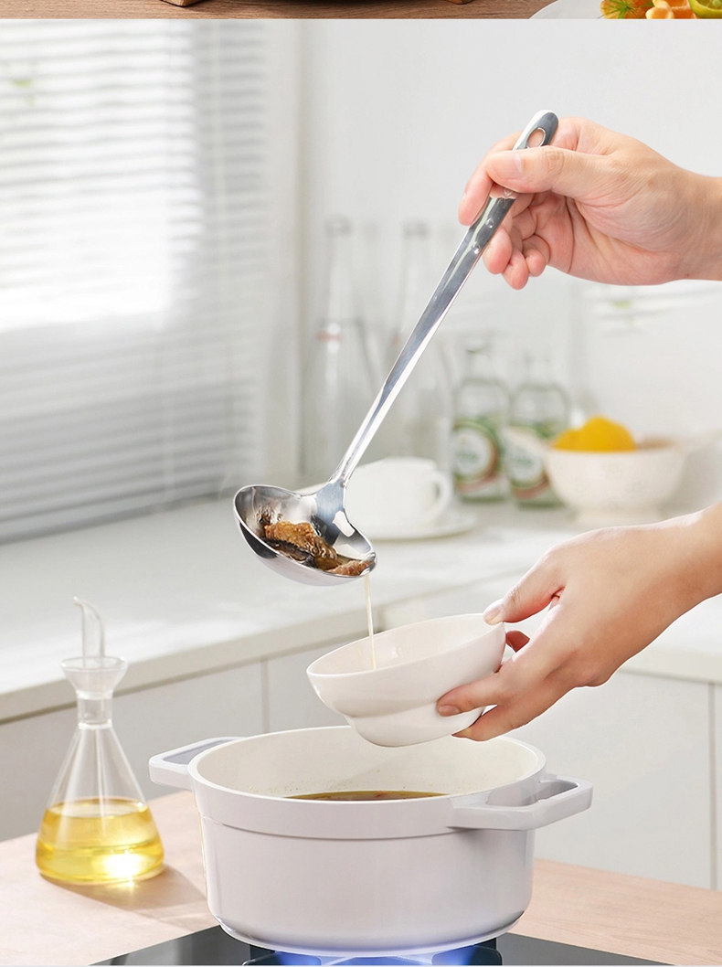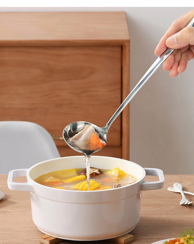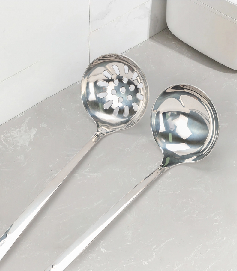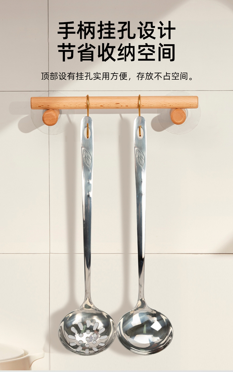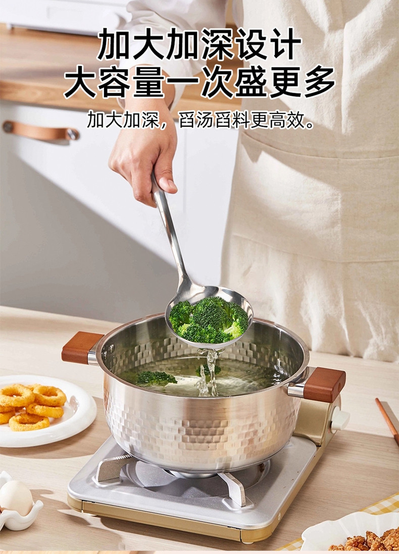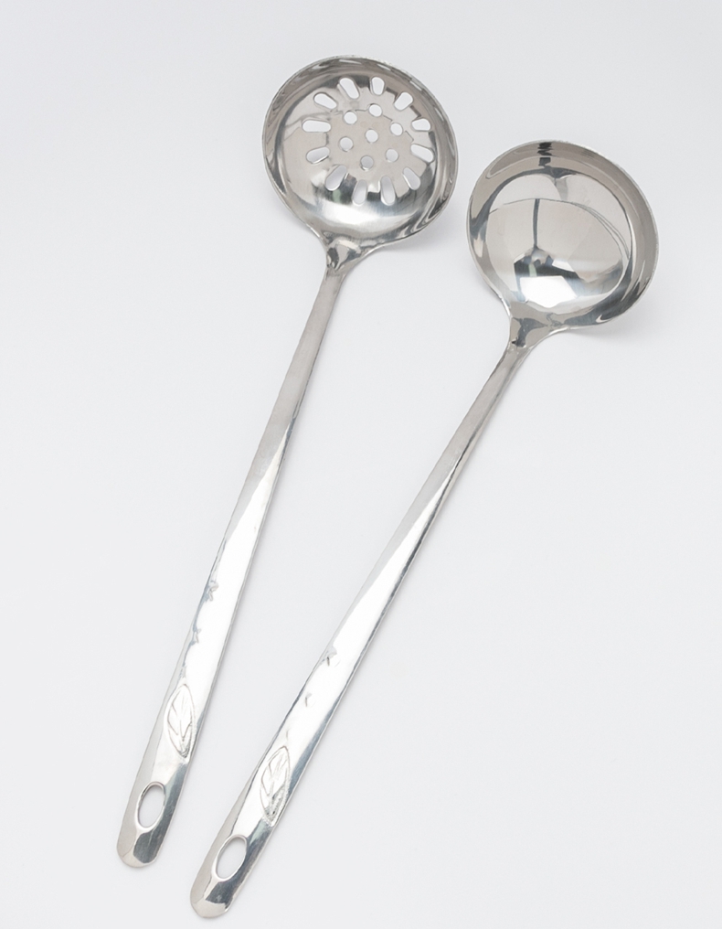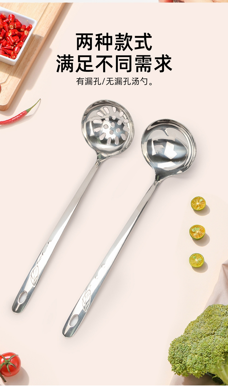 喇叭花加厚不锈钢家用盛汤长柄大号稀饭粥勺子火锅汤勺漏勺套装