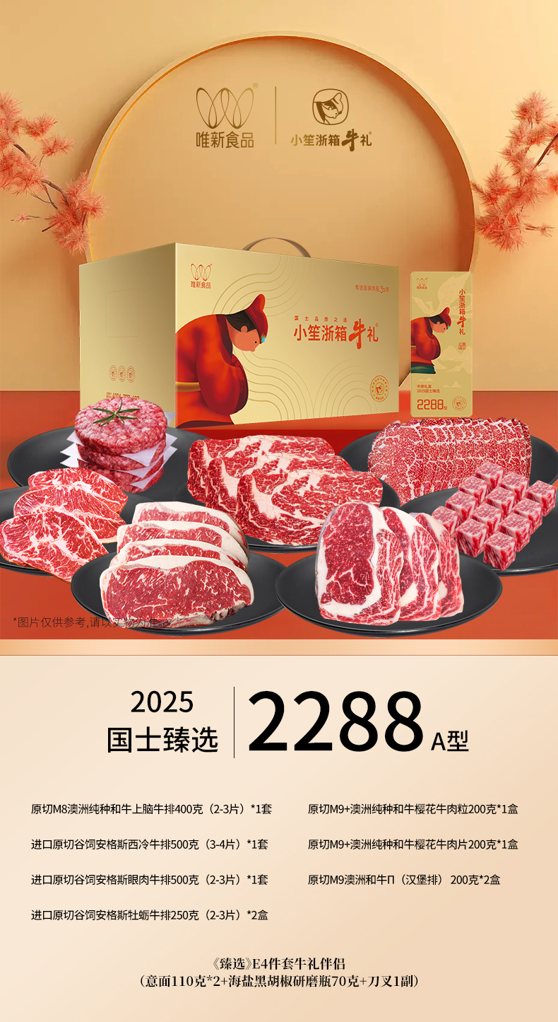 唯新 小笙浙箱牛礼《国士臻选》2288A型牛排套餐礼盒